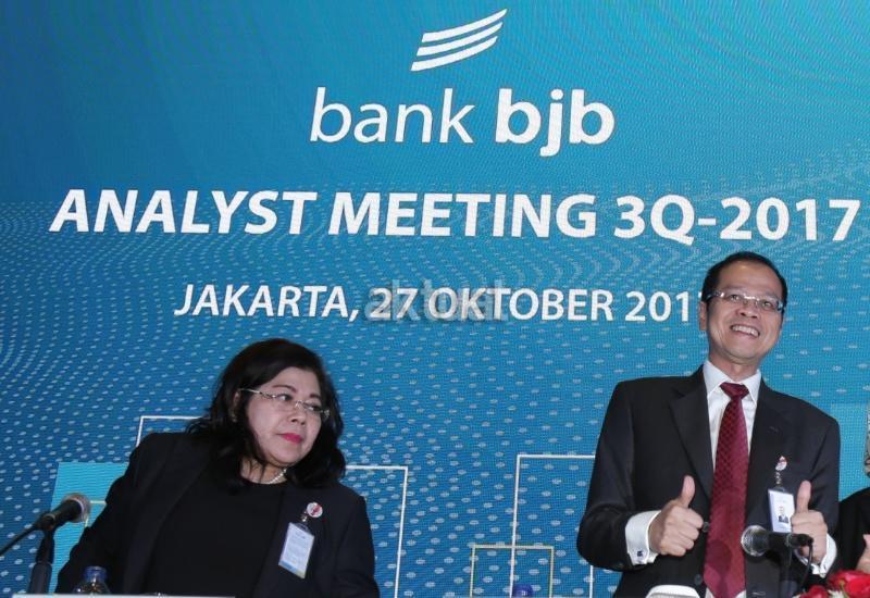 Direktur Utama Bank BJB Ahmad Irfan (kanan) didampingi Direktur Konsumer BJB Fermiyanti usai memaparkan kinerja perusahaan di Jakarta, Jumat (27/10). PT Bank Pembangunan Daerah Jawa Barat dan Banten Tbk. (IDX: BJBR) mencatat total aset sebesar Rp114,2 triliun atau tumbuh 12,5 persen year on year (y-o-y) hingga triwulan III tahun 2017. AKTUAL/Tino Oktaviano