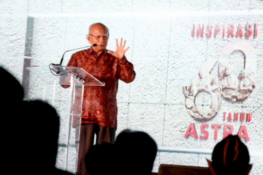 Emil Salim, mewakili dewan juri Semangat Astra Terpadu Untuk Indonesia (SATU Indonesia) Awards 2017 menceritakan pemuda-pemudi teladan, Penerima Apresiasi SATU Indonesia Awards 2017 yang berkarya di lima bidang tanpa pamrih pada acara Apresiasi Untuk Anak Bangsa SATU Indonesia Awards 2017 di Jakarta, Rabu (18/10). “Kita menjadi optimis setelah melihat kiprah pemuda-pemudi ini tanpa pamrih di daerah mereka masing-masing. Mereka perlu diangkat supaya dampak positif yang dilakukan bisa lebih luas. Menurut saya, program ini dapat menjawab tantangan Indonesia untuk memberdayakan pemuda-pemudi kreatif dalam menyongsong Sumpa Pemuda,” ujar Prof. Emil Salim. AKTUAL/Humas Astra