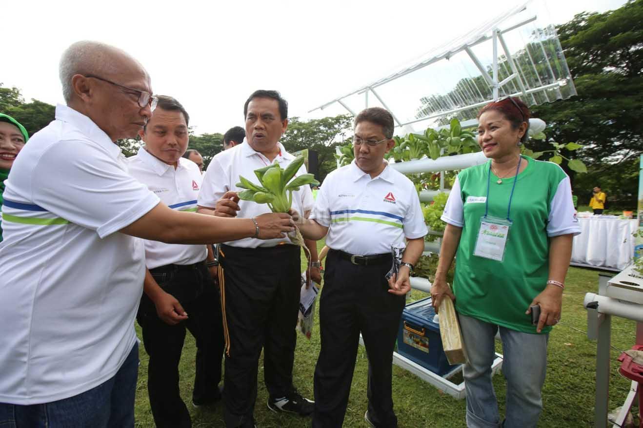 Dirjen Pengendalian Pencemaran & Kerusakan Lingkungan Hidup dan Kehutanan Kementerian Lingkungan Hidup & Kehutanan RI Karliansyah (kedua kanan) bersama Sekda DKI Jakarta Saefullah (tengah), Walikota Jakarta Utara Wahyu Haryadi (kedua kiri) dan Chief of Corporate Communications, Social Responsibility & Security PT Astra International Tbk Pongki Pamungkas (kiri) menyimak penjelasan mengenai teknik bercocok tanam hidroponik pada acara Astra Green Run (AGR) Jakarta 2016 (16/10).