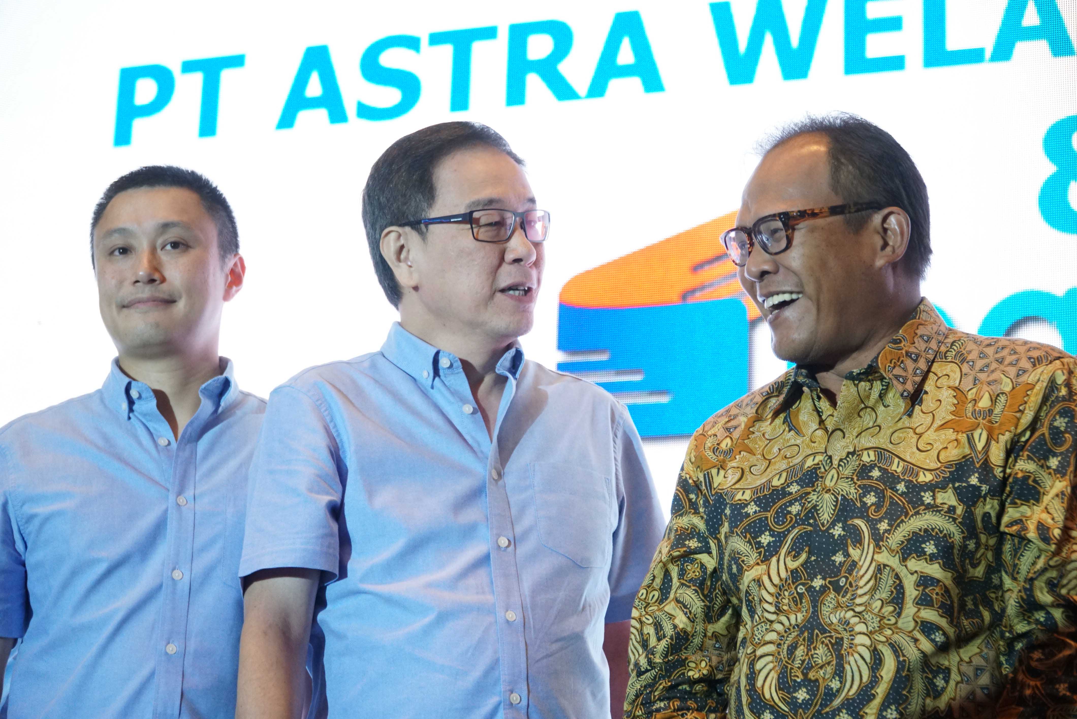 (dari kiri ke kanan) Founder And CEO Of WeLab, Simon Loong, Presiden Direktur Astra International Tbk, Prijono Sugiarto, Kepala Departemen Industri Keuangan Non Bank OJK,Bambang W Budiawan saat hadir dalam pengumuman pembentukan perusahaan pada bidang fintech,PT Astra WeLab Digital Arta (AWDA) di Jakarta, Rabu (5/9). AWDA bertujuan menyediakan produk dan solusi finansial melalui pengembangan teknologi big-data terkini guna membantu konsumen yang belum memiliki akses terhadap pinjaman untuk mencapai kebebasan finansial melalui akses yang lebih baik dan effisien terhadap pinjaman.AWDA akan menawarkan produk pinjaman yang dapat diakses melalui aplikasi mobile kepada konsumen titel dan juga menyediakan solusi finansial berbasis teknologi kepada konsumen korporasi. AKTUAL/Eko S Hilman