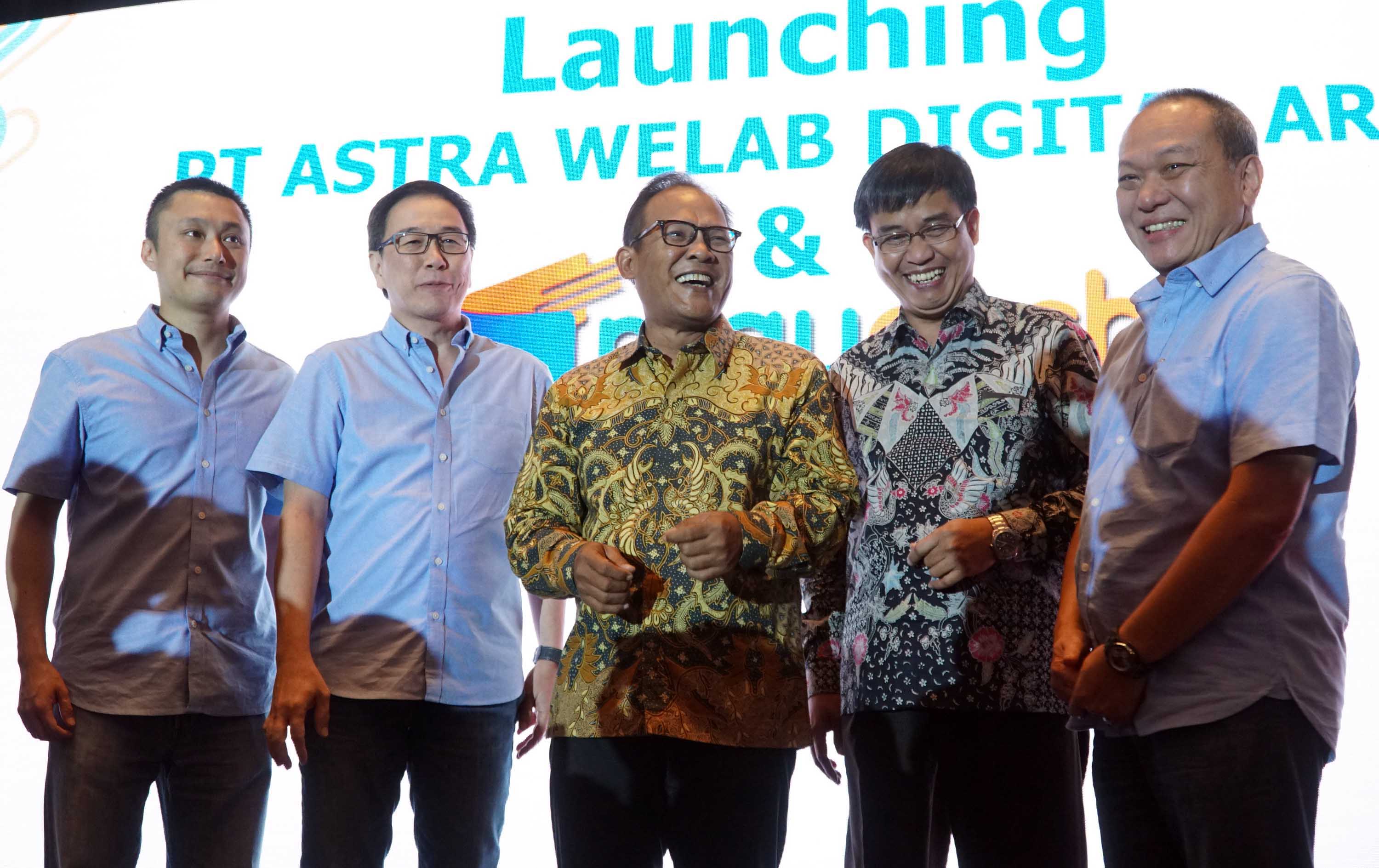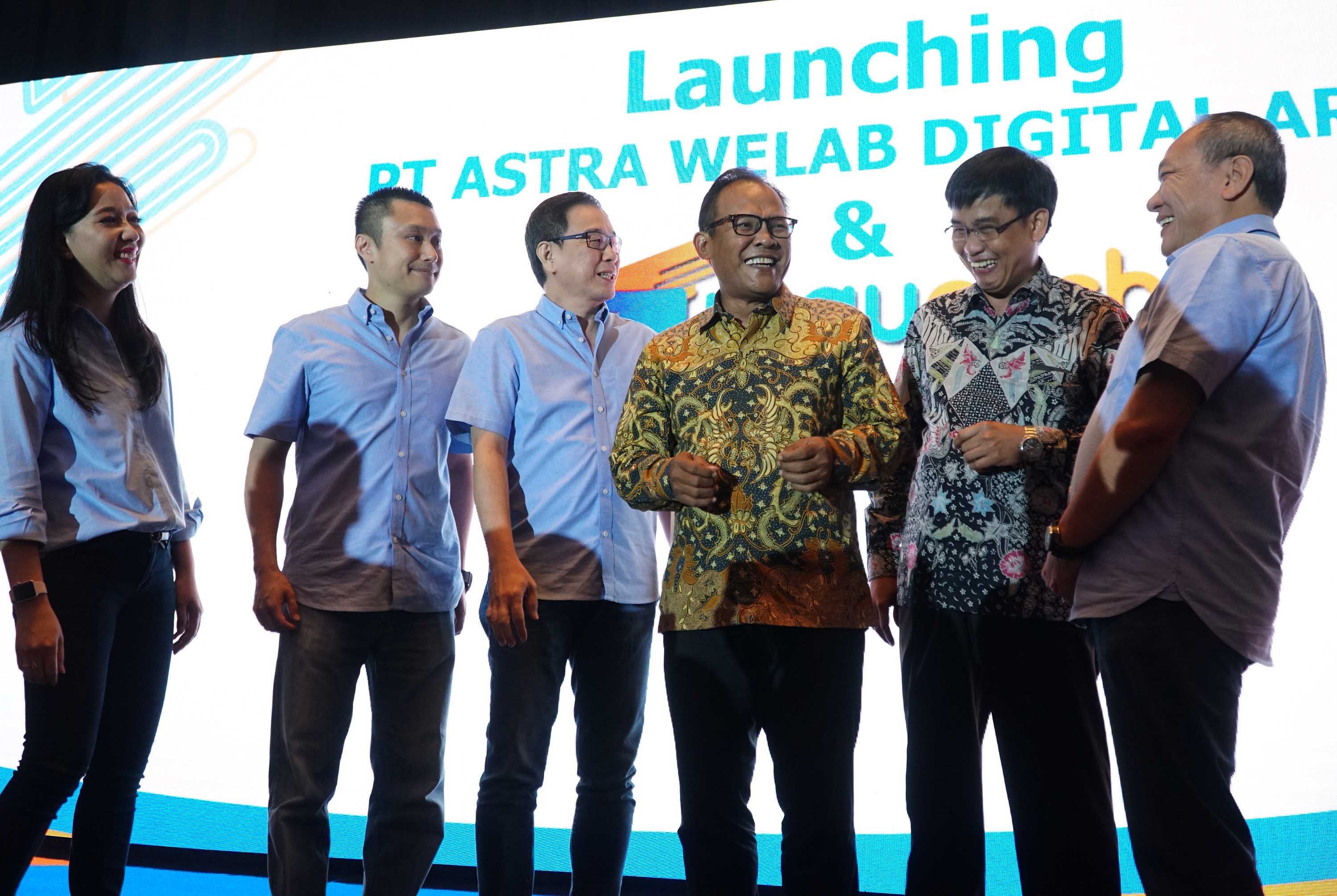 (dari kiri ke kanan) Presiden Direktur PT Astra Welab Digital Arta (AWDA), Rina Aprianan, Founder And CEO Of WeLab, Simon Loong, Presiden Direktur Astra International Tbk, Prijono Sugiarto , Kepala Departemen Industri Keuangan Non Bank OJK,Bambang W Budiawan, Direktur Pengaturan, Perizinan,Pengawasan Fintech OJK, Hendrikus Passagi serta Direktur PT Astra International Tbk, Suparno Djasmin saat hadir dalam pengumuman pembentukan perusahaan pada bidang fintech,PT Astra WeLab Digital Arta (AWDA) di Jakarta, Rabu (5/9). AWDA bertujuan menyediakan produk dan solusi finansial melalui pengembangan teknologi big-data terkini guna membantu konsumen yang belum memiliki akses terhadap pinjaman untuk mencapai kebebasan finansial melalui akses yang lebih baik dan effisien terhadap pinjaman.AWDA akan menawarkan produk pinjaman yang dapat diakses melalui aplikasi mobile kepada konsumen titel dan juga menyediakan solusi finansial berbasis teknologi kepada konsumen korporasi. AKTUAL/Eko S Hilman