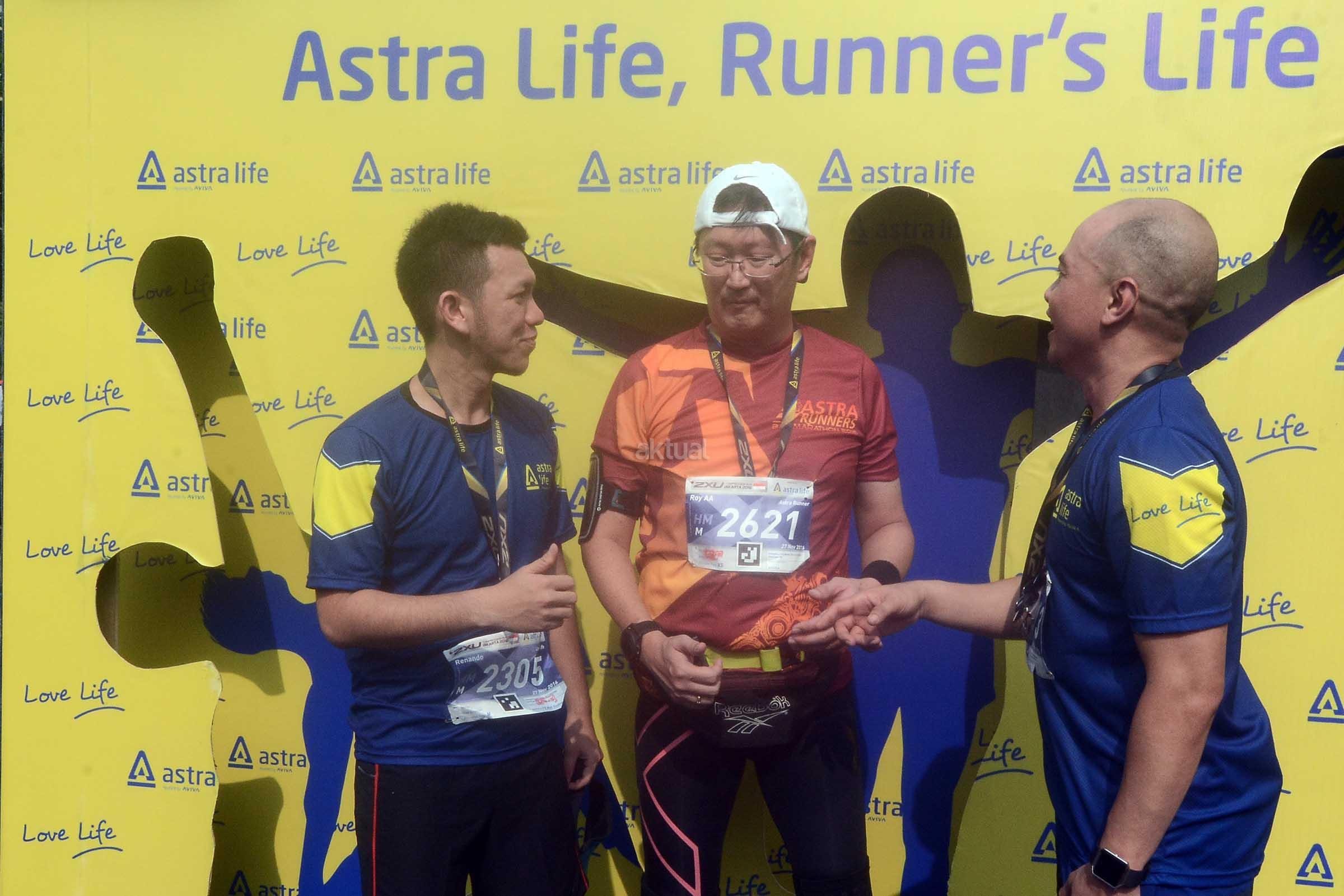 Presiden Direktur PT PermataBank, Roy Armand (tengah) berbincang dengan Direktur PT Astra Aviva Life, Luky Suardi (kanan) serta Human Resources Development PT ASTRA AVIVA (Astra Life), Renando Meiko Putra seusai mengikuti 2XU Compression Run Jakarta 2016 .Minggu (27/11) di Mal Alam Sutera BSD Tangerang.Astra Life mendukung 5000 pelari peserta kompetisi ini untuk bisa bahagia menikmati hidup dengan menyalurkan hobi olahraga yang menyehatkan dan eksis mengikuti perkembangan trend life style sambil menantang diri mereka memecahkan rekor pribadi,PT ASTRA AVIVA LIFE (Astra Life), perusahaan asuransi jiwa bertagline ‘Love Life’ yang hadir untuk membantu orang Indonesia mencintai hidup, untuk kedua kalinya menjadi partner resmi asuransi jiwa bagi acara kompetisi 2XU Compression Run Jakarta 2016 dan hadir bagi para pencinta olah raga lari untuk mendukung perilaku Healthy Life (pola hidup sehat) sebagai bagian dari kampanye gerakan mencintai hidup yang bisa diwujudkan melalui tiga cara yang dikenal dengan 3H: Healthy Lifestyle – Happy Lifestyle – Healthy Financial, bahwa kesehatan jiwa dan raga harus diimbangi juga dengan kesehatan finansial. AKTUAL/Eko S Hilman