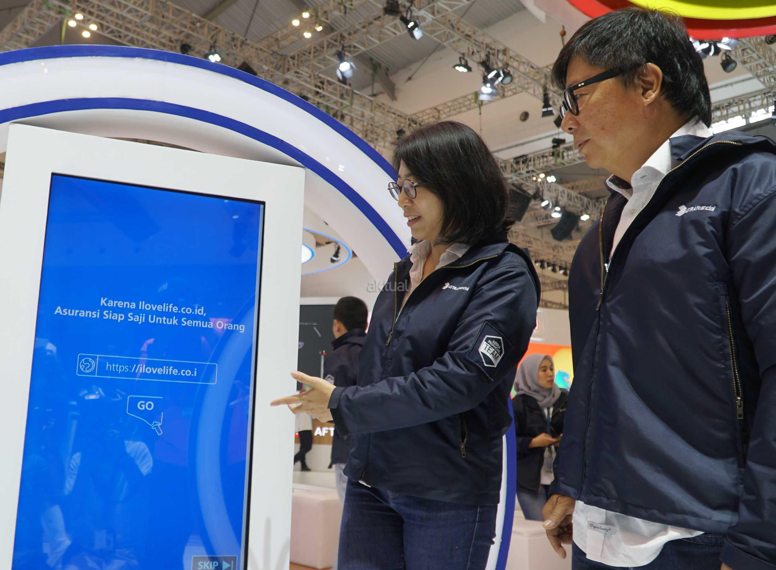 Presiden Direktur PT ASTRA AVIVA LIFE, Auddie A.Wiranata (kanan) bersama Head of Marketing and Branding PT Astra Aviva Life, Windy Riswantyo berbincang mengenai produk iSport, asuransi olahraga pertama di Indonesia yang dapat dibeli di ilovelife.co.id di booth Astra Financial di GIIAS ke 26 2018, Serpong, Tangerang , Banten, Selasa (7/8). Asuransi Olahraga yang diperkenalkan PT Astra Aviva Life ini merupakan asuransi pertama olahraga yang hadir di Indonesia dan masyarakat dapat membelinya di ilovelife.co.id. AKTUAL/Eko S Hilman