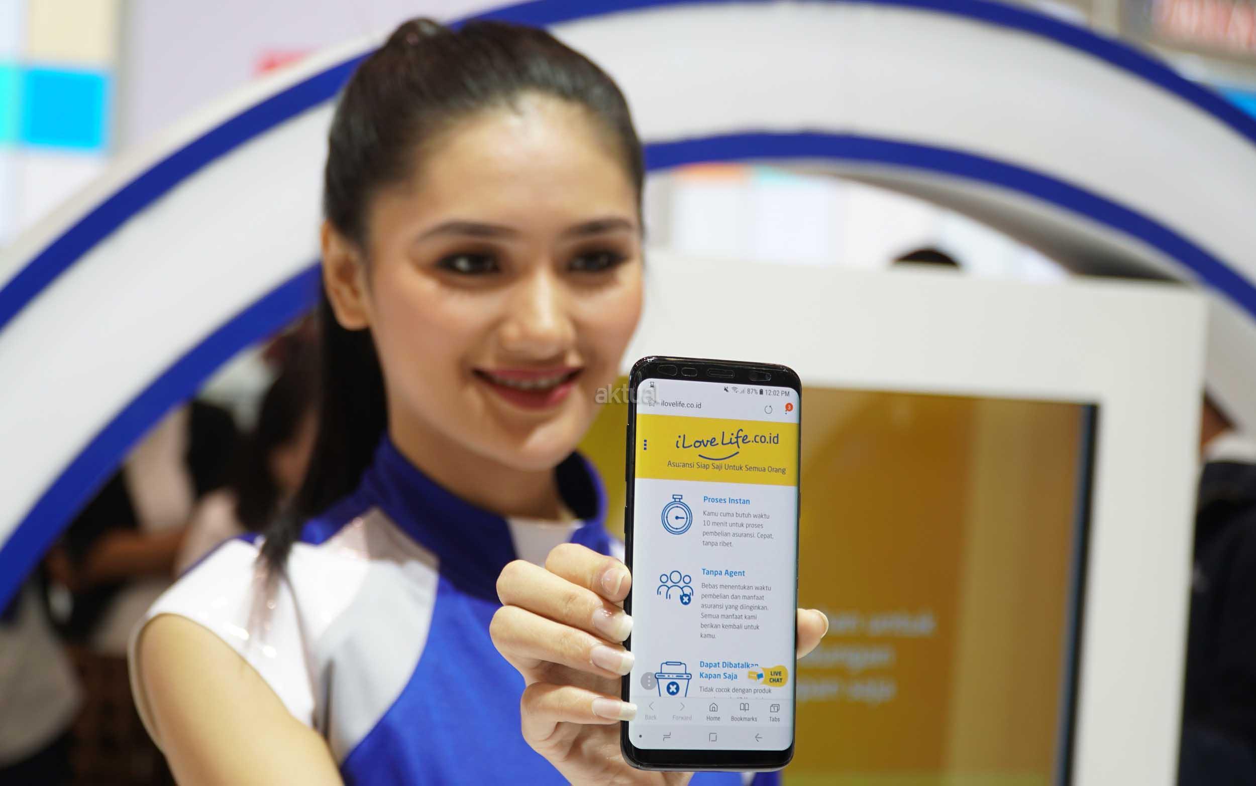 Seorang model memperlihatkan mengenai produk iSport, asuransi olahraga pertama di Indonesia yang dapat dibeli di ilovelife.co.id di booth Astra Financial di GIIAS ke 26 2018, Serpong, Tangerang , Banten, Selasa (7/8). Asuransi Olahraga yang diperkenalkan PT Astra Aviva Life ini merupakan asuransi pertama olahraga yang hadir di Indonesia dan masyarakat dapat membelinya di ilovelife.co.id. AKTUAL/Eko S Hilman