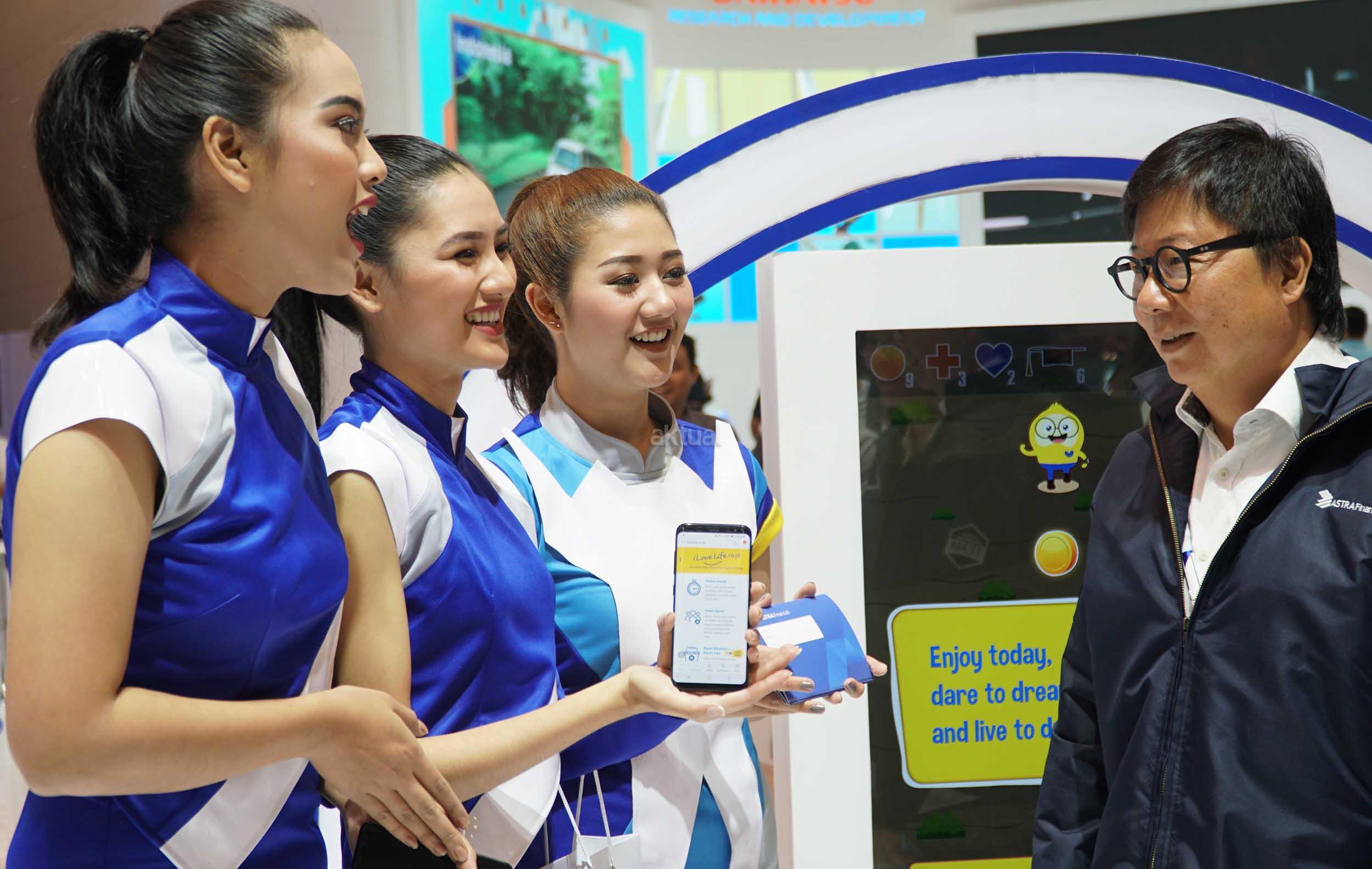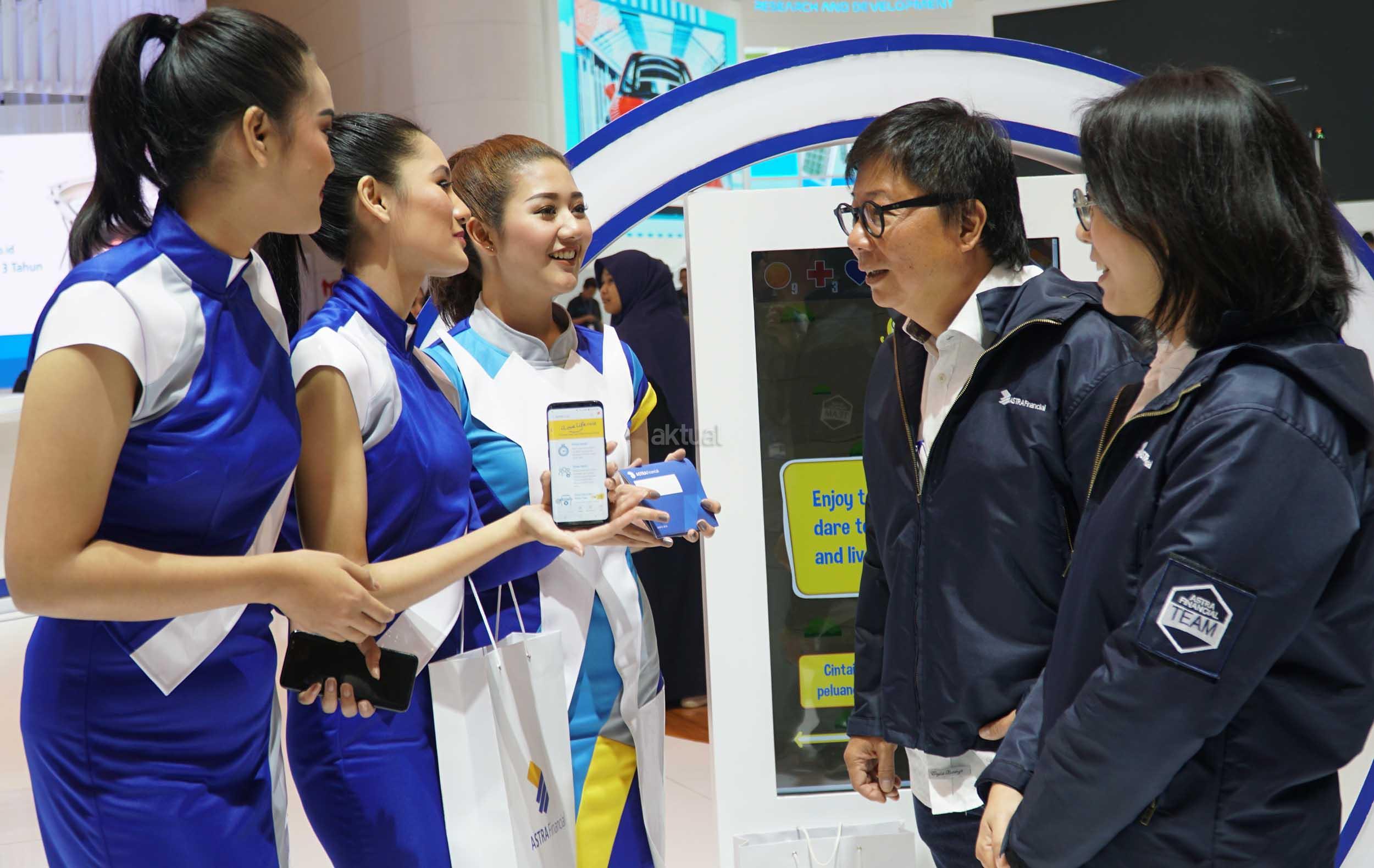 Presiden Direktur PT ASTRA AVIVA LIFE, Auddie A.Wiranata (kedua kanan) berbincang mengenai produk iSport, asuransi olahraga pertama di Indonesia yang dapat dibeli di ilovelife.co.id di booth Astra Financial di GIIAS ke 26 2018, Serpong, Tangerang , Banten, Selasa (7/8). Asuransi Olahraga yang diperkenalkan PT Astra Aviva Life ini merupakan asuransi pertama olahraga yang hadir di Indonesia dan masyarakat dapat membelinya di ilovelife.co.id. AKTUAL/Eko S Hilman
