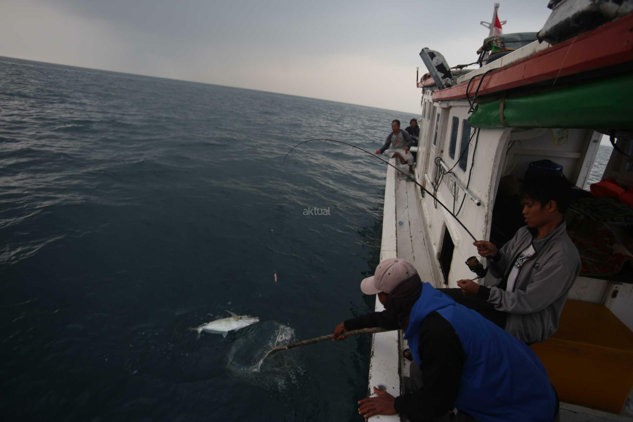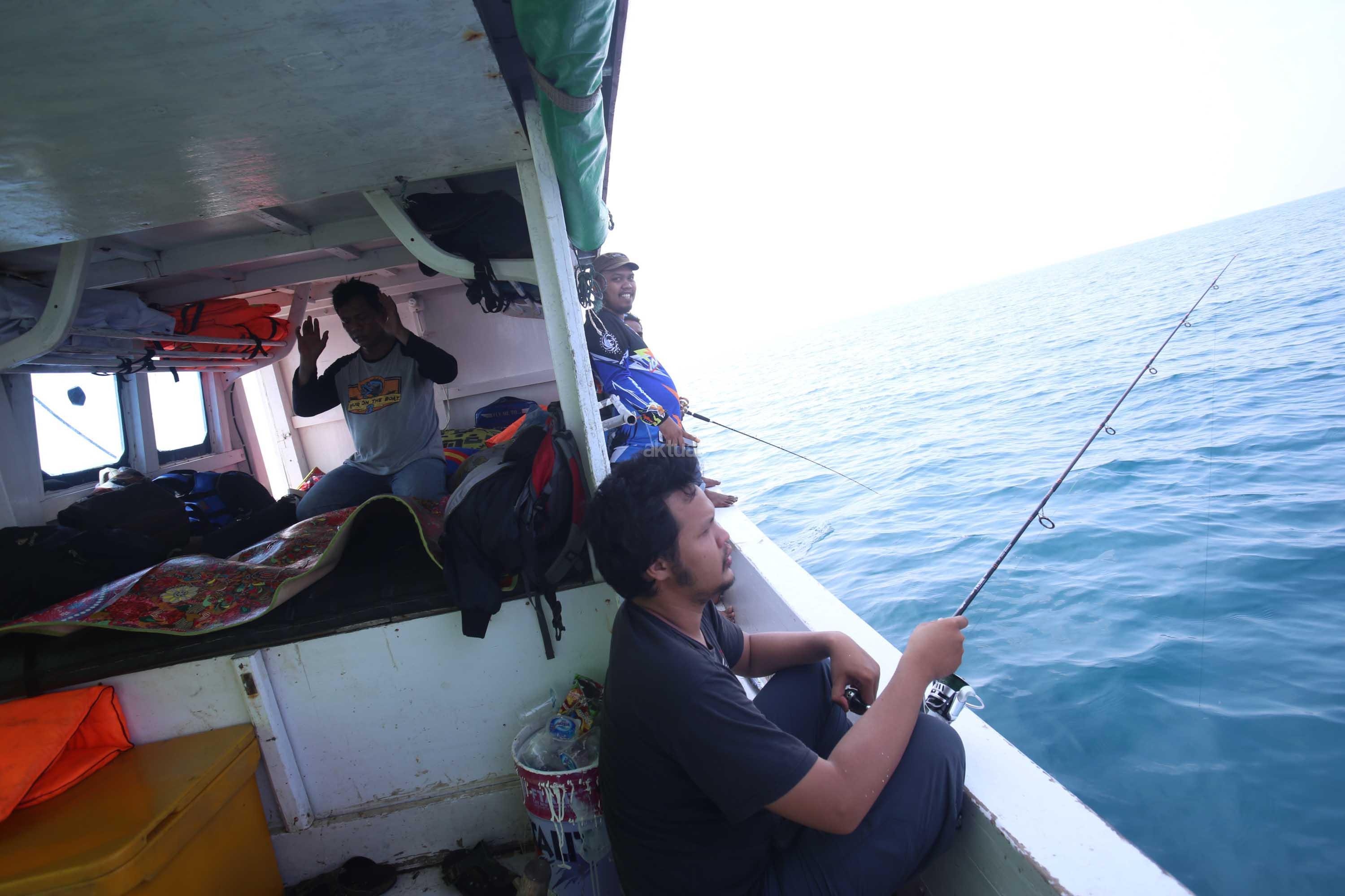 Anggota Jurnalis Joran Indonesia (jojoners) memancing dalam kegiatan Sahur on The Boat ke-4 di kawasan perairan Karang Antu, Banten, Minggu (4/6). Kegiatan ini digelar oleh komunitas Jojoners yang diisi berbagai kegiatan. (Foto dok. Jojoners)