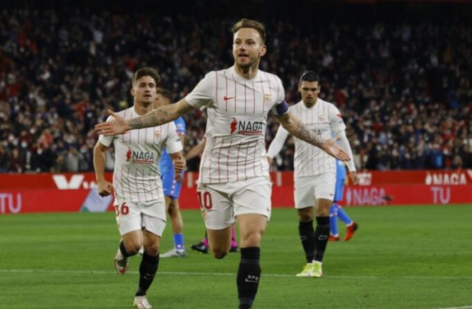 Selebrasi Ivan Rakitic usai mencetak gol pertama Sevilla dalam pertandingan Liga Spanyol lawan Atletico Madrid pada 19 Desember 2021. ANTARA/REUTERS/MARCELO DEL POZO