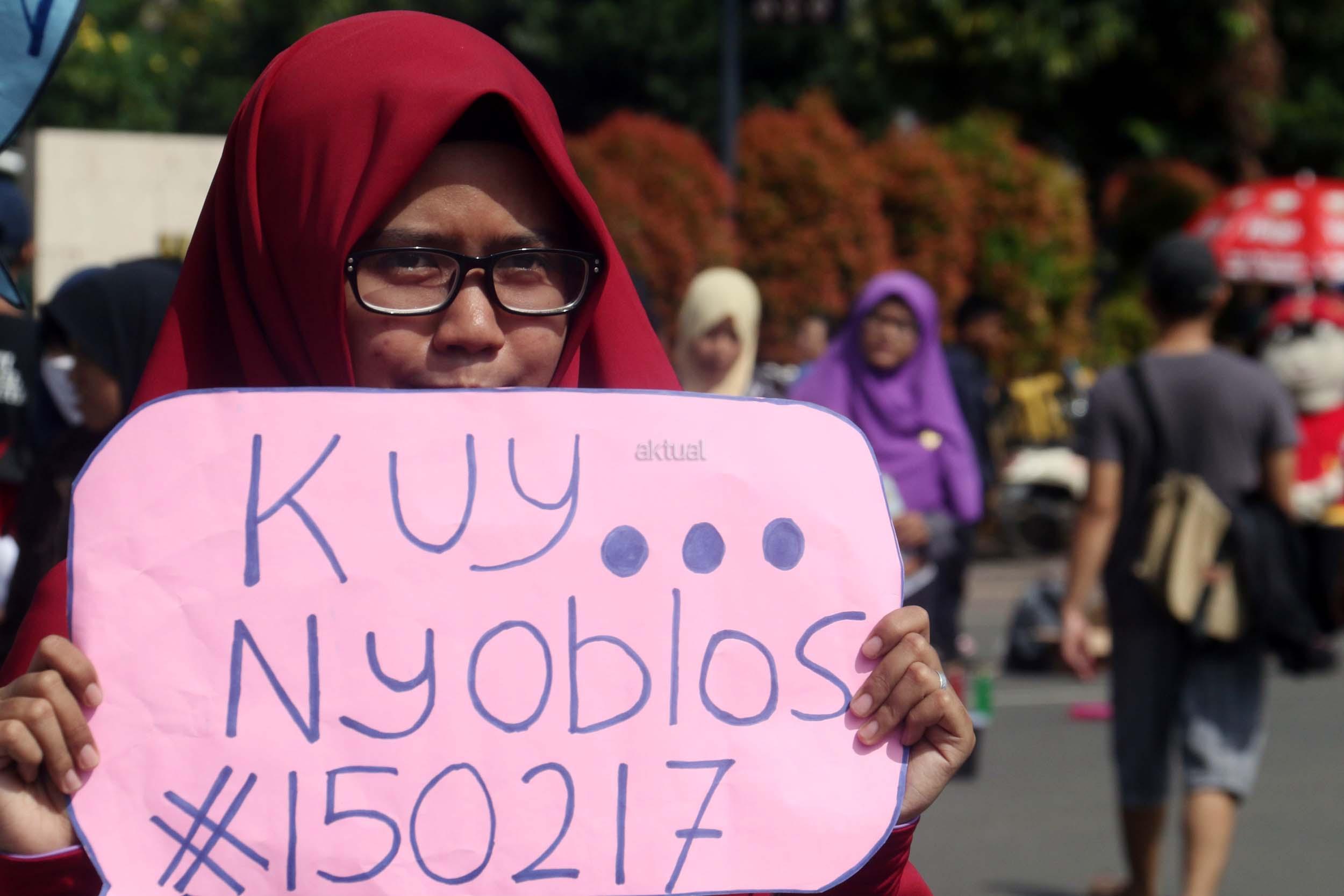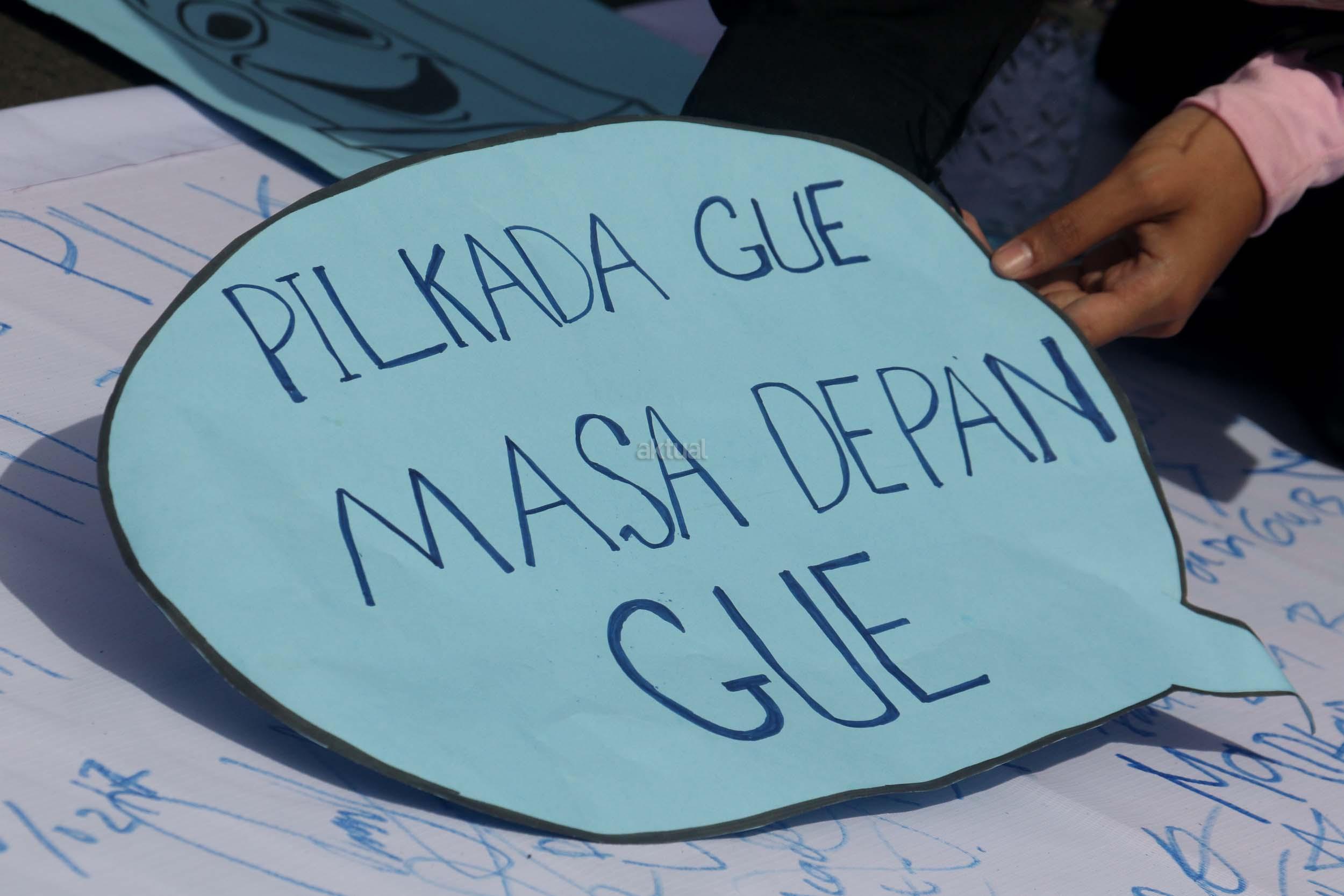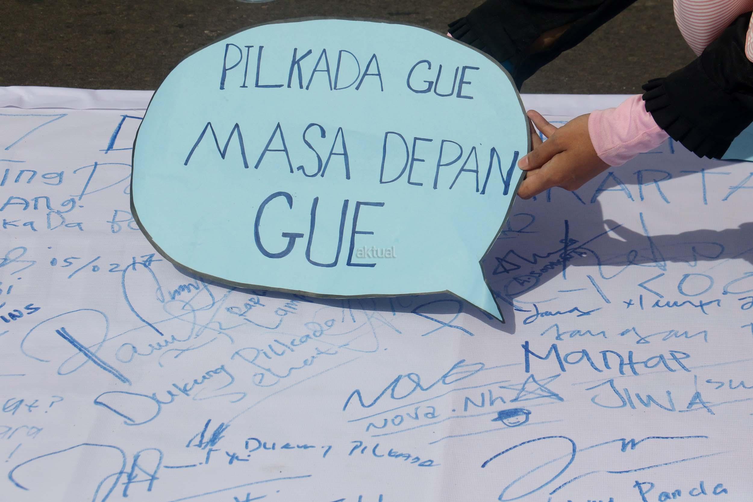 Sejumlah mahasiswa yang tergabung dalam Kesatuan Mahasiswa Muslim Indonesia (KAMMI) melakukan aksi kawal Pilkada DKI 2017 di Jakarta, Minggu (5/2/2017). Dalam aksi tersebut mereka mengajak masyarakat DKI mengawal Pilkada DKI. AKTUAL/Munzir