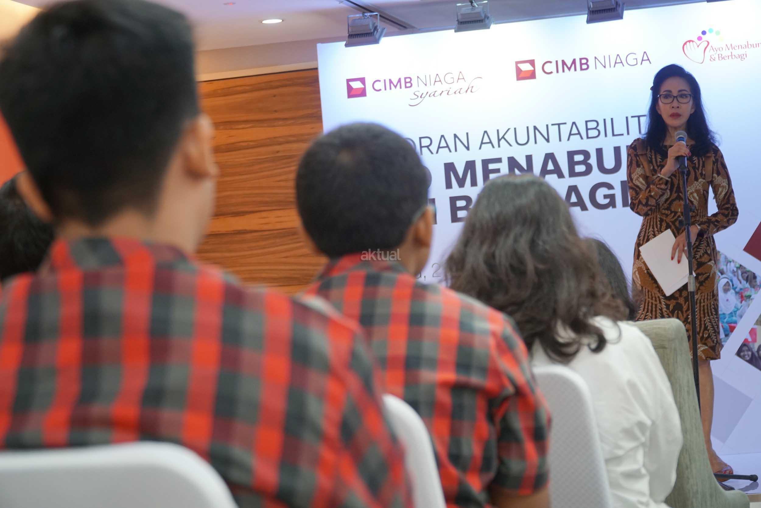 Direktur Compliance,Corporate Secretary and Legal CIMB Niaga, Fransiska Oei saat memberikan sambutan di Jakarta, Jumat (2/2). CIMB Niaga terus meningkatkan literasi keuangan masyarakat, khususnya bagi para siswa melalui Program Ayo Menabung dan Berbagi (AMDB).Dalam Akuntabilitas Program AMDB 2017, dilaporkan program ini telah memberikan edukasi perbankan kepada 5.630 siswa di 40 sekolah yang tersebar di 10 kota dan berhasil menghimpun dana Rp 361 Juta. Dana tersebut selanjutnya disalurkan melalui Indonesia Heritage Foundation dan Yayasan Cinta Anak Bangsa (YCAB) untuk meningkatkan kualitas pendidikan anak Indonesia. AKTUAL/Eko S Hilman