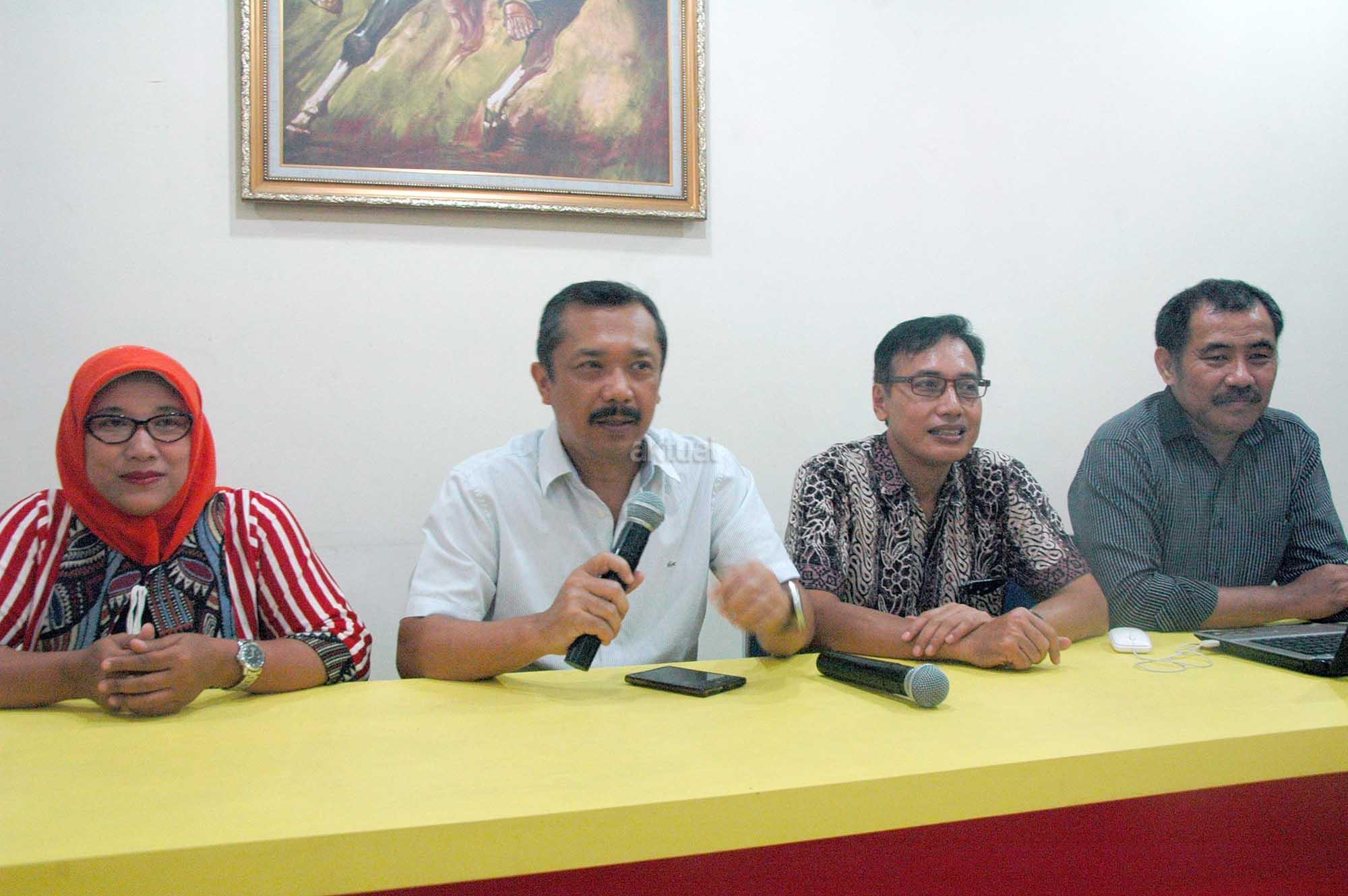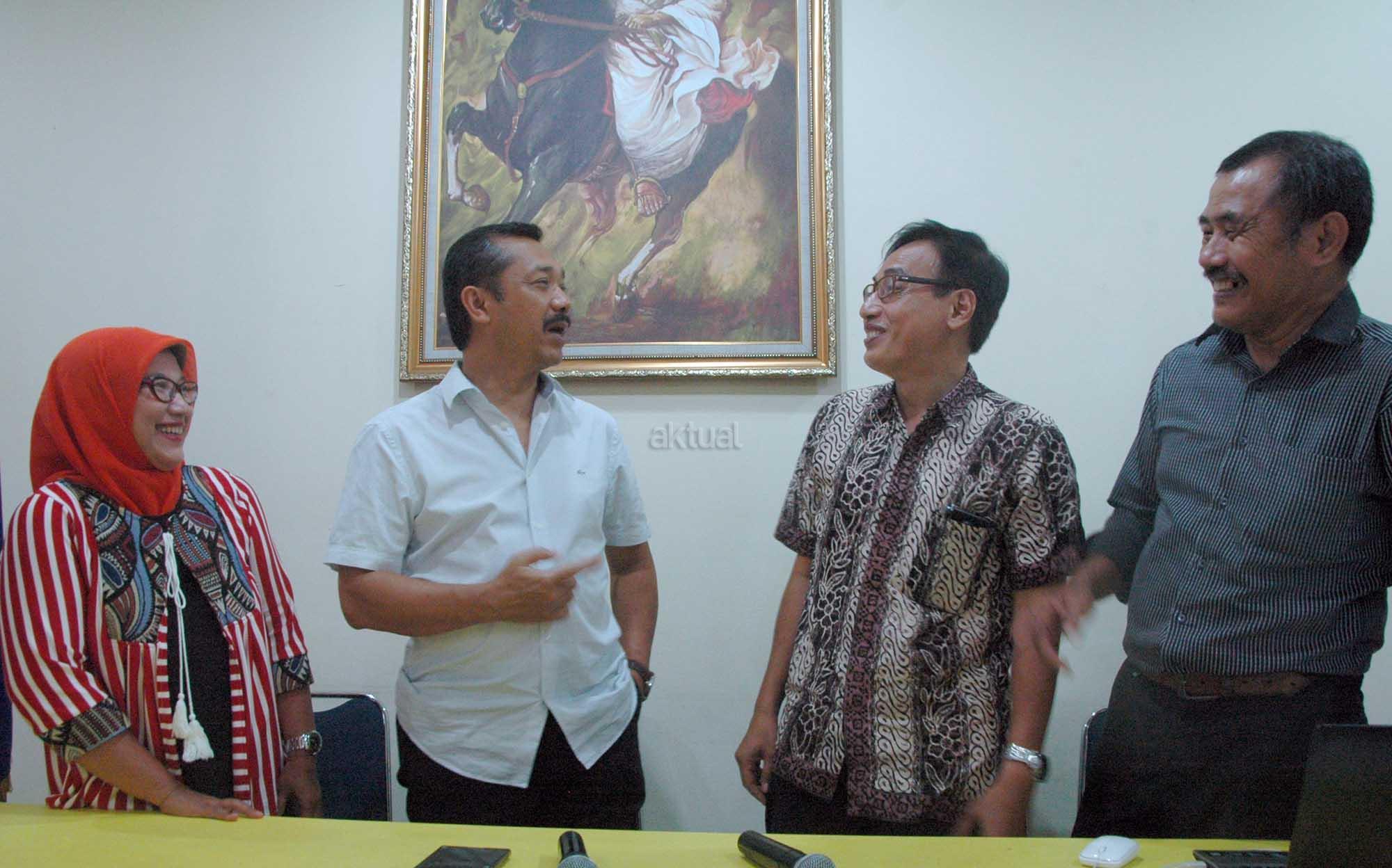 (dari kiri ke kanan) , Anggota Panitia Reuni Akbar Universitas Diponegoro (UNDIP) 2016 Fitriani, Ketua Panitia yang juga Ketua DPD IKA UNDIP Y. Joko Setiyanto, Anggota Panitia Firman Parmudianto dan Anggota Panitia Agustinus Natalaksono saat jumpa pers persiapan Reuni Akbar IKA UNDIP 2016 di Jakarta, Jumat (25/11). Reuni Akbar ini digelar dalam rangka menyambut HUT Undip yang ke 59. Tujuan utamanya adalah menghimpun dan menyatukan para alumni UNDIP agar bisa bersama menyatukan visi , pemikiran dan keahlian untuk membangun negara Republik Indonesia. Rangkaian kegiatannya sendiri dijadwalkan akan dilaksanakan mulai dari tanggal 27 November hingga 3 Desember 2016 di Jakarta. AKTUAL/Eko S Hilman
