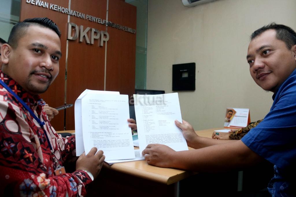Ketua Badan Hukum (Bahu) Partai Nasdem Taufik Basari (kanan) menunjukan bukti pelanggaran etik Bawaslu di kantor Dewan Kehormatan Penyelenggara Pemilu (DKPP), Jakarta, Selasa (10/10/2017). Badan Hukum (Bahu) Partai Nasdem bersama tim kuasa hukum pasangan calon Bupati dan Wakil Bupati Mathius-Giri Pilkada Jayapura mengadukan Bawaslu RI ke DKPP terkait Rekomendasi Bawaslu RI yang mendiskualifikasi Calon Bupati Mathius Awoitauw. AKTUAL/Munzir