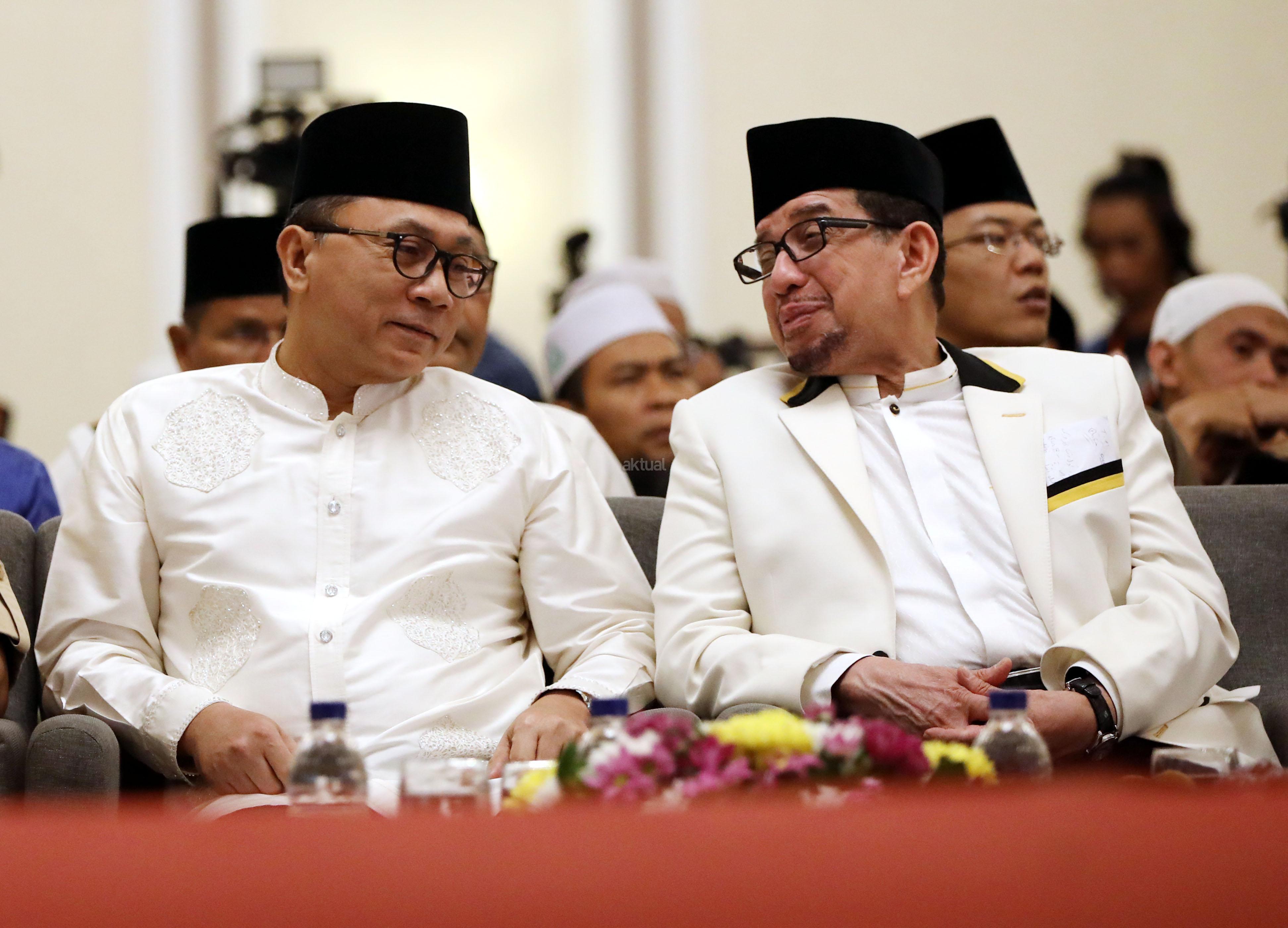 Ketua Majelis Syuro Partai Keadilan Sejahtera (PKS) Salim Segaf Al Jufri berbincang dengan Ketua Umum Partai Amanat Nasional (PAN) Zulkifli Hasan saat melakukan pertemuan Hotel Paninsula, Jakarta, Jumat (27/7/2018) malam. Partai Gerindra terus menjajaki komunikasi intensif dengan sejumlah partai untuk membicarakan masalah pemilihan Presiden 2019. Pertemuan tersebut membahasa mengenai pasangan Capres serta cawapres yang akan diusung. AKTUAL/Tino Oktaviano