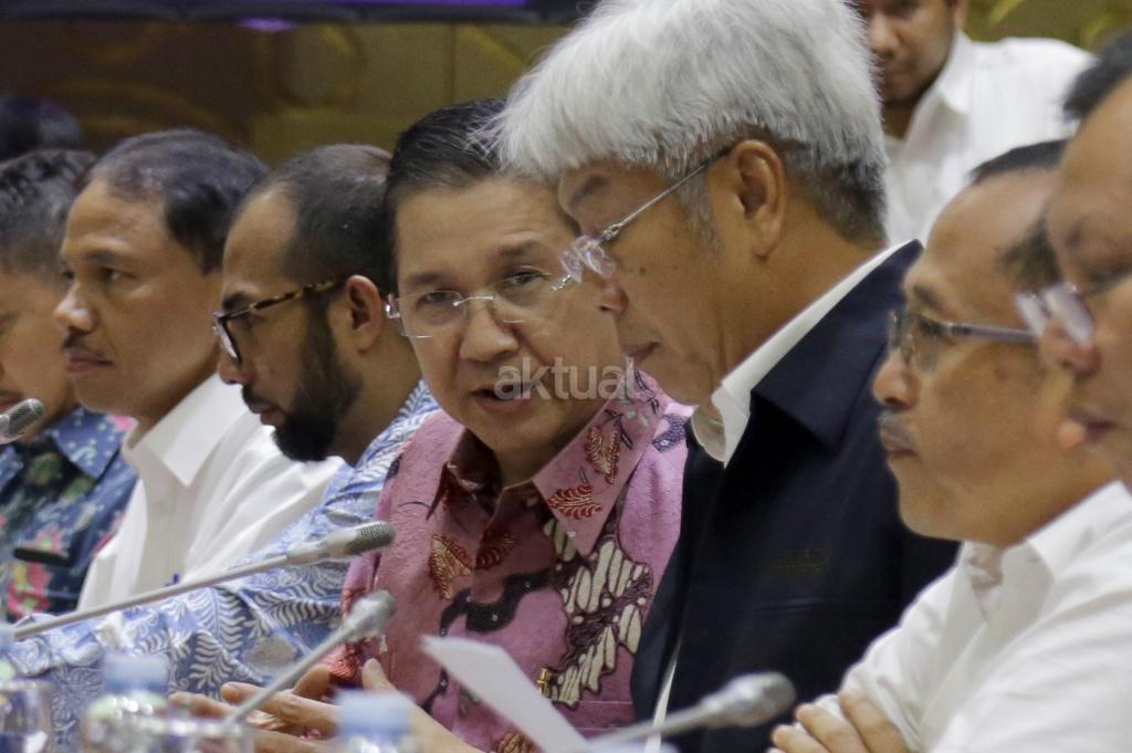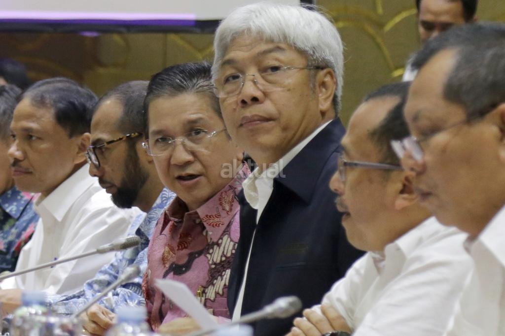 Presdir PT Freeport Indonesia Tony Wenas dan Dirjen Minerba Kementerian ESDM Bambang Gatot saat Rapat Panitia Kerja dengan Komisi VII di gedung Parlemen, Senayan, Jakarta, Senin (27/11/2017). Panja DPR dengan Freeport ini membahas soal divestasi dan progres pembangunan smelter. AKTUAL/Tino Oktaviano