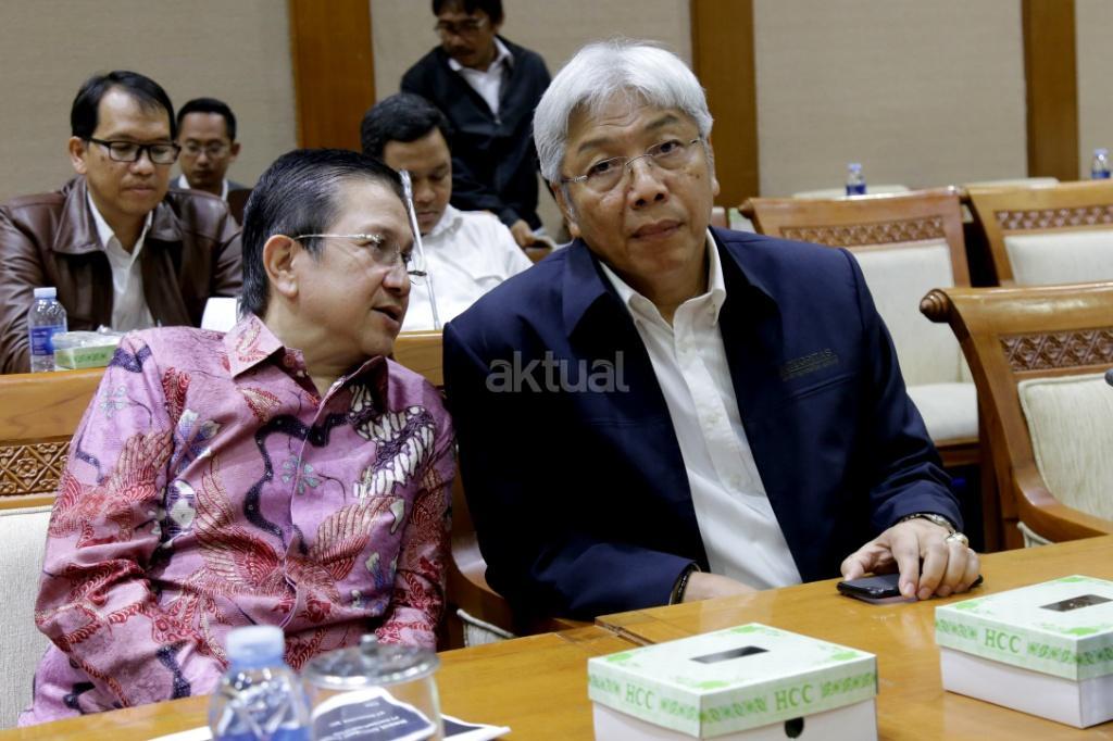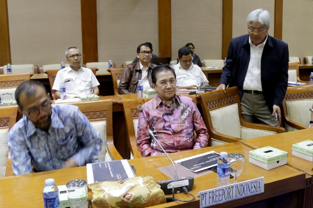 Presdir PT Freeport Indonesia Tony Wenas (kiri) dan Dirjen Minerba Kementerian ESDM Bambang Gatot (kanan) saat Rapat Panitia Kerja dengan Komisi VII di gedung Parlemen, Senayan, Jakarta, Senin (27/11/2017). Panja DPR dengan Freeport ini membahas soal divestasi dan progres pembangunan smelter. AKTUAL/Tino Oktaviano