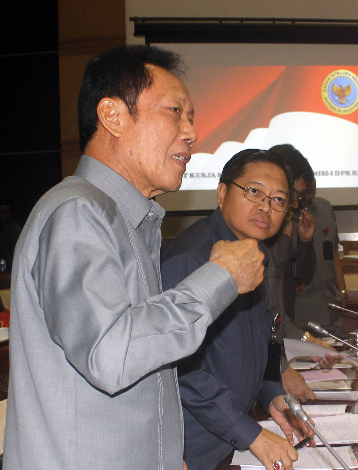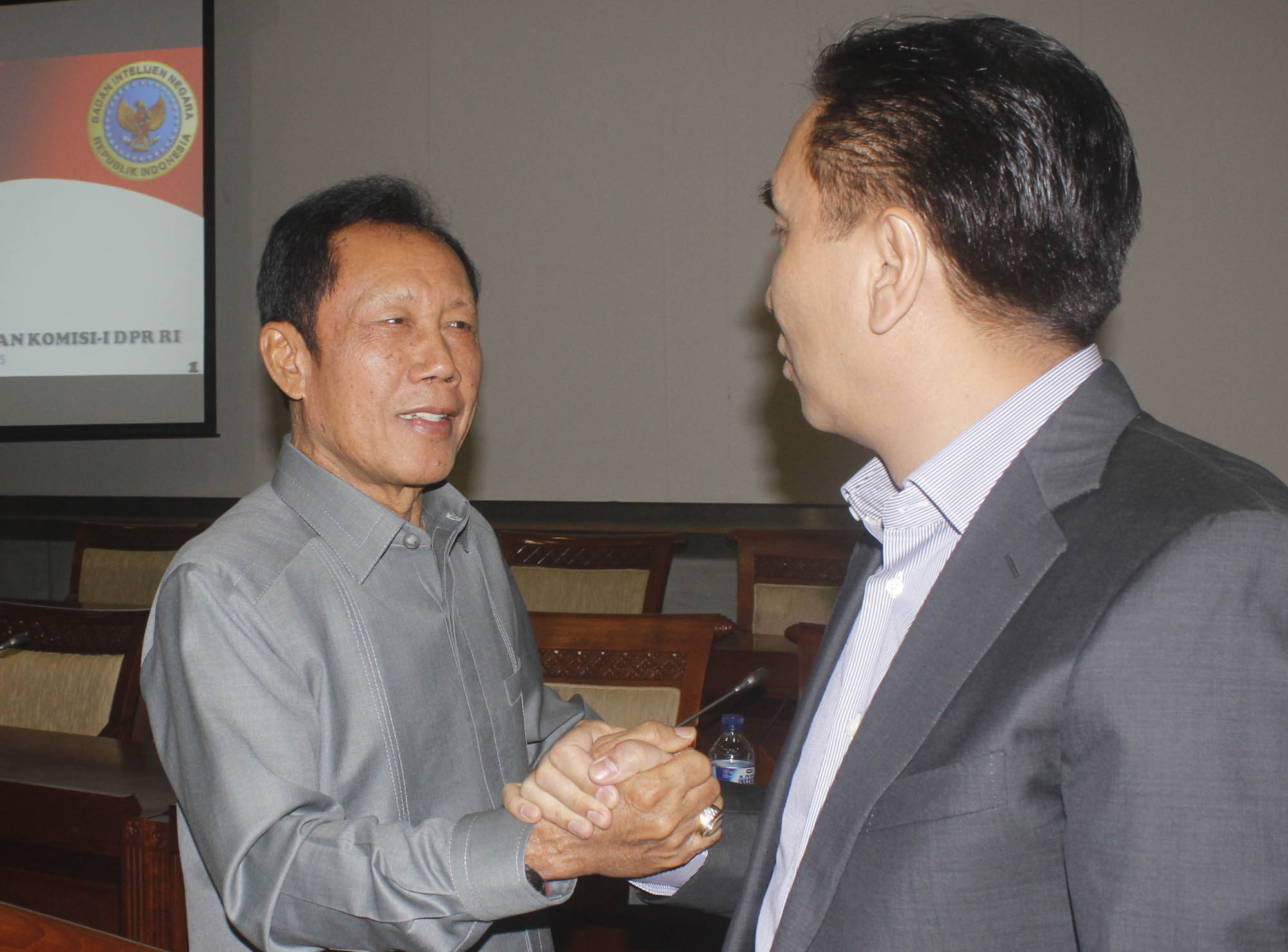 Kepala Badan Intelejen Nasional (BIN) Sutiyoso bersiap mengikuti rapat kerja dengan Komisi I DPR di Kompleks Parlemen, Senayan, Jakarta, Kamis (10/9/2015). Rapat itu membahas anggaran BIN serta isu-isu teraktual yang berhubungan dengan intelejen Indonesia.