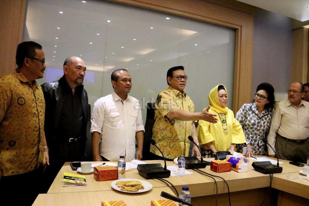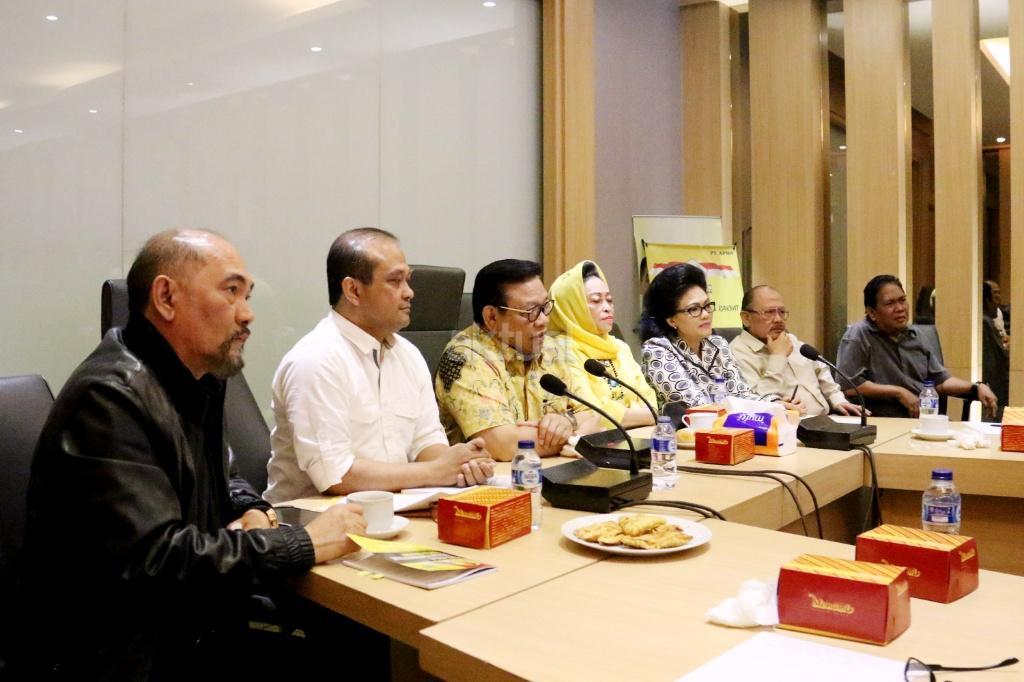 Ketua Dewan Pakar DPP Partai Golkar Agung Laksono (kedua kiri) didampingi Sekretaris Ganjar Razuni (kiri), Anggota Watty Amir (kedua kanan) dan Farida Syamsi (kanan) berbincang di sela-sela rapat dewan pakar di Kantor DPP Partai Golkar, Jakarta, Senin (20/11/2017). Rapat Dewan Pakar Partai Golkat tersebut membahas kelanjutan kepemimpinan dan penetapan pelaksana tugas paska penahanan Ketua Umum Partai Golkar Setya Novanto oleh KPK. AKTUAL/Munzir