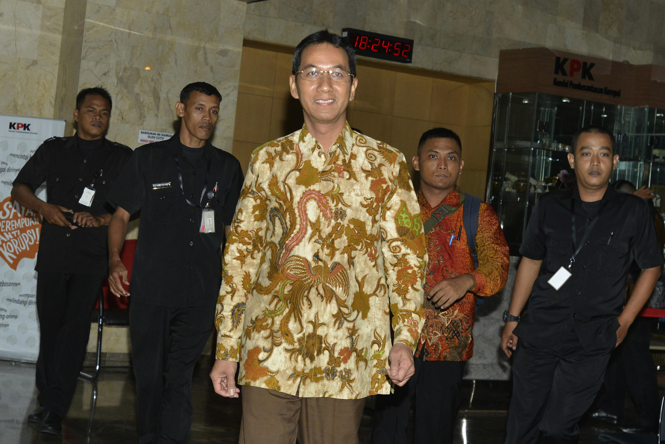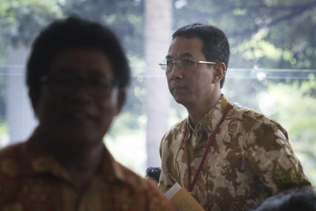 Kepala Badan Pengelola Keuangan dan Aset Daerah (BPKAD) DKI Jakarta Heru Budi Hartono berjalan saat memenuhi panggilan KPK, di gedung KPK, Jakarta, Kamis (14/6). Bakal Cawagub DKI Jakarta yang akan dipasangkan dengan Ahok itu diperiksa sebagai saksi terkait kasus pembahasan raperda tentang rencana zonasi wilayah pesisir dan pulau-pulau kecil provinsi DKI Jakarta tahun 2015-2035 dan raperda tentang rencana tata ruang kawasan strategis Pantai Utara Jakarta. ANTARA FOTO/Rosa Panggabean/foc/16.