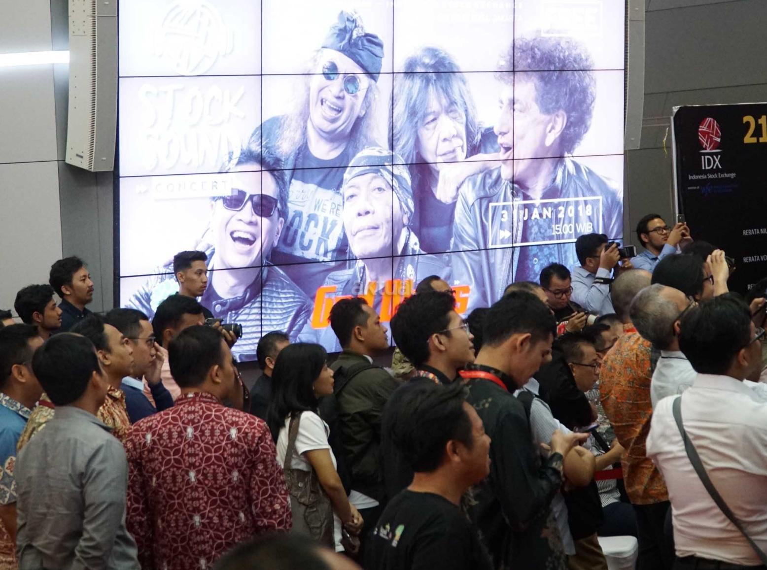 Konser God Bless yang dikemas dalam Stock Sound Concert dimulai usai melakukan penutupan perdagangan sesi II. Sebagai informasi, God Bless adalah grup musik rock yang telah menjadi legenda di Indonesia. Dasawarsa 1970-an bisa dianggap sebagai tahun-tahun kejayaan mereka. AKTUAL/Eko S Hilman