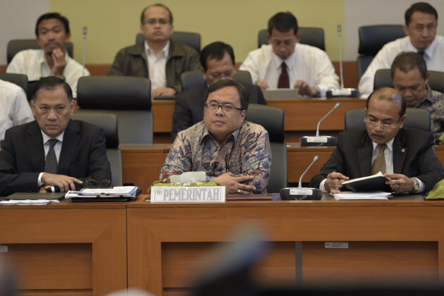 Menkeu Bambang Brodjonegoro (tengah), Menteri PPN/Bappenas Andrinof Chaniago (kanan) dan Gubernur Bank Indonesia Agus Martowardojo (kiri) mengikuti rapat kerja dengan Badan Anggaran (Banggar) DPR di Kompleks Parlemen, Senayan, Jakarta, Senin (6/7). Dalam rapat tersebut Banggar DPR menyepakati laporan dan memberikan pengesahan hasil panitia kerja (panja) dalam rangka pembahasan pembicaraan pendahuluan penyusunan RAPBN 2016. ANTARA FOTO/Sigid Kurniawan/nz/15.