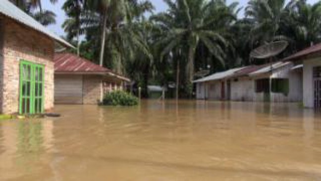 Medan, Aktual.co — Hujan yang mengguyur sejak dua hari terakhir di Kabupaten Labuhan Batu Selatan, Sumatera Utara, menyebabkan sungai Barumun meluap. Akibatnya, 600-an rumah di empat Desa Kecamatan Sei Kanan, terendam banjir.