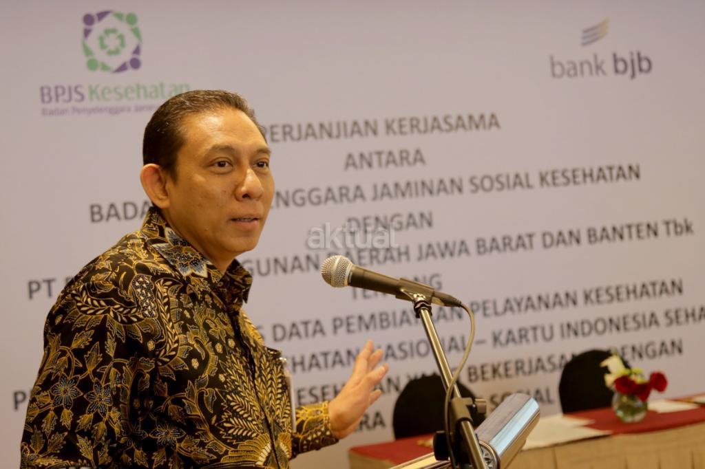Direktur Keuangan dan Investasi BPJS Kesehatan Kemal Imam Santoso menyampaikan sambutan saat acara kerjasama dua perusahaan Bank BJB dan BPJS Kesehatan di Jakarta, Rabu (22/11/2017). Kerjasama ini dalam rangka pemberian konfirmasi fasilitas kesehatan oleh BPJS Kesehatan kepada Bank BJB dalam rangka memperlancar pembiayaan pelayanan kesehatan perserta BPJS Kesehatan. Selain itu melakukan pembiayaan kepada fasilitas kesehatan melalui produk Open Account Financing (OAF) Bank BJB. AKTUAL/Tino Oktaviano