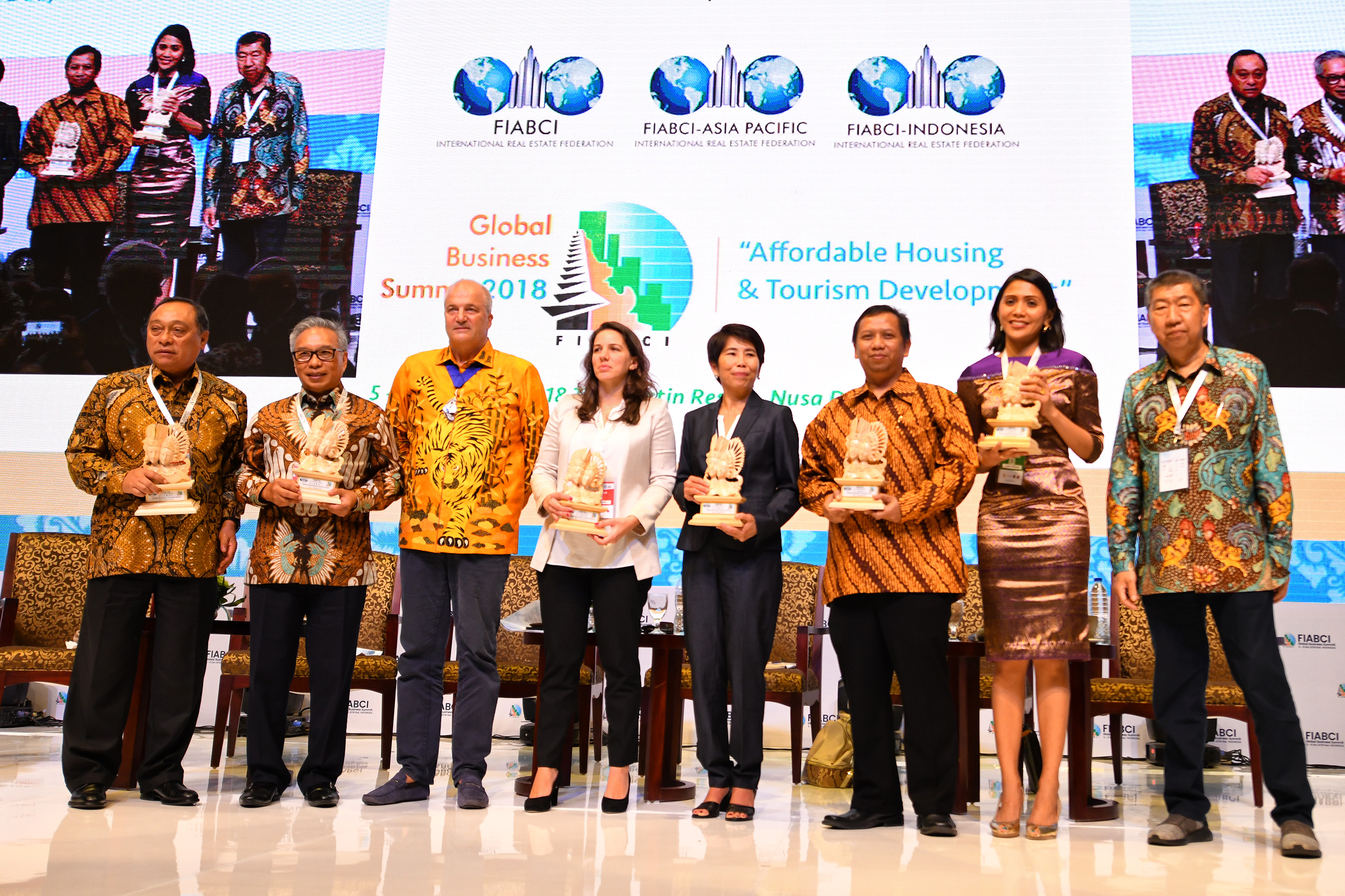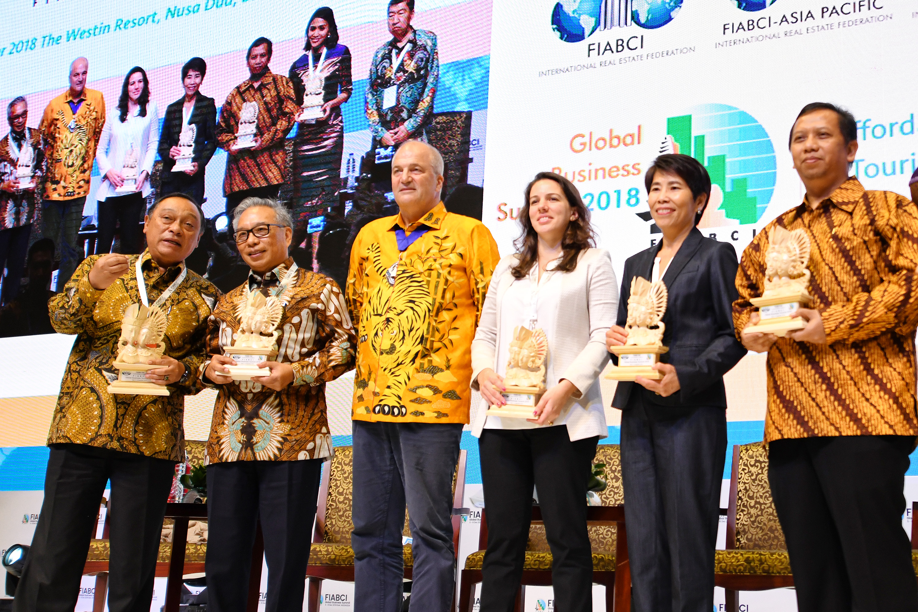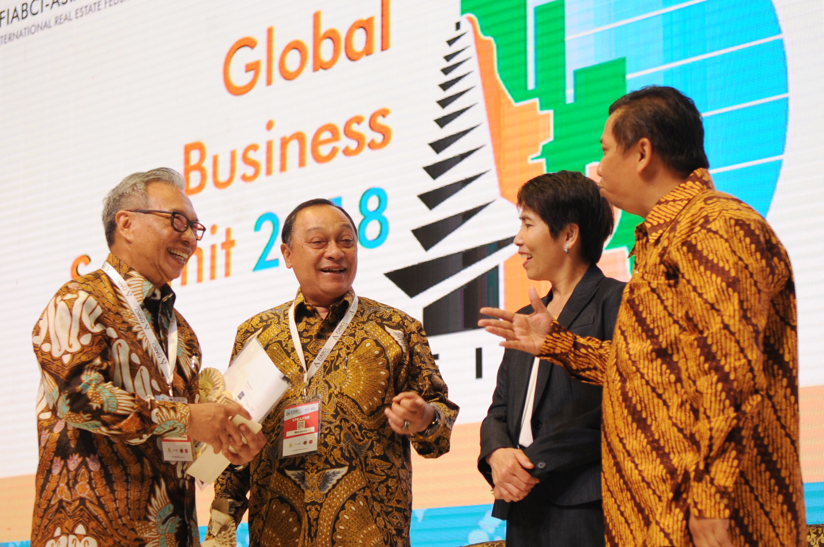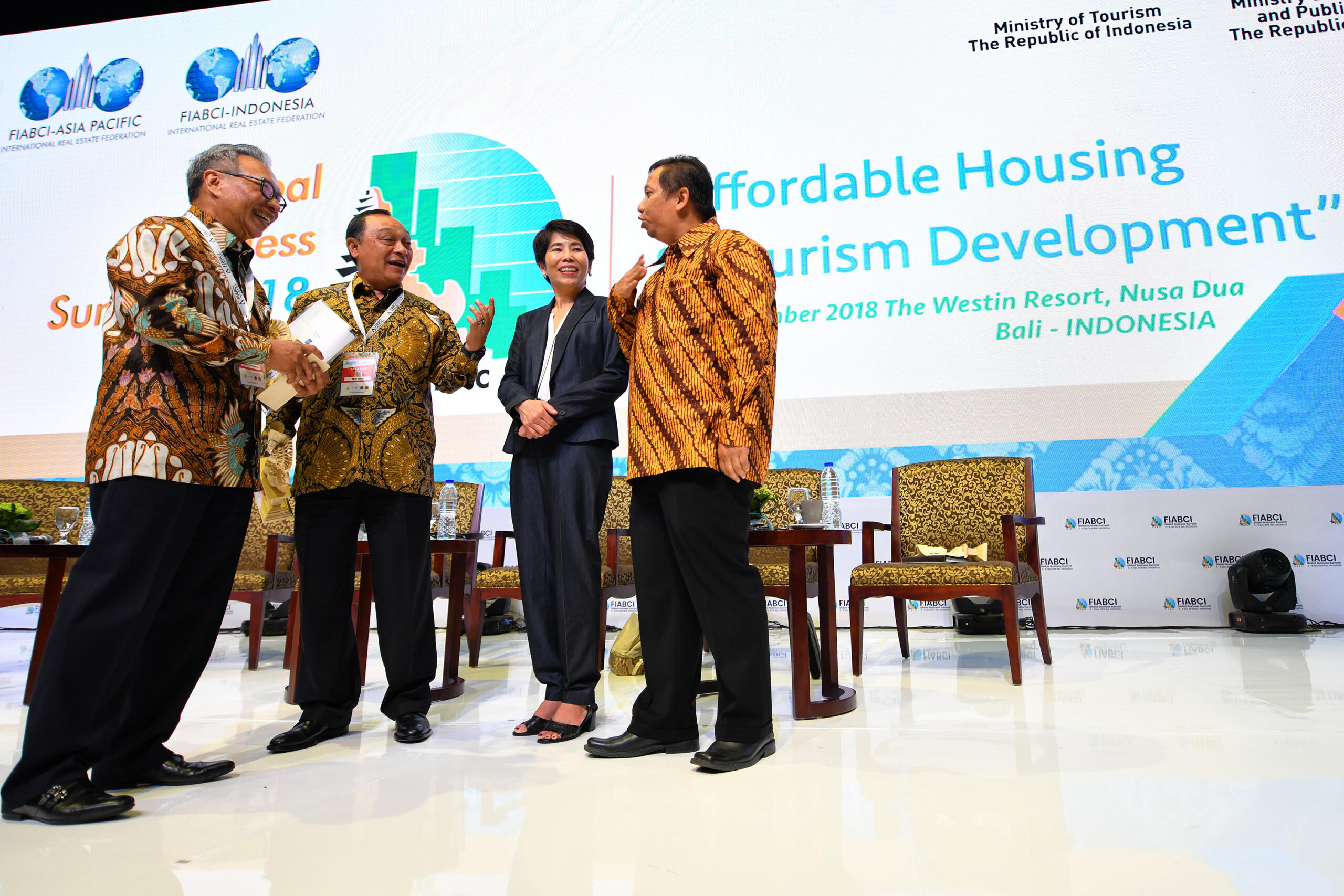 Presiden Direktur Ciputra Residence Budiarsa Sastrawinata, Direktur Utama PT Bank Tabungan Negara (Persero) Tbk. Maryono, Senior Housing Spesialist World Bank Dao Harisson dan Direktur Rumah Umum dan Komersial Moch. Yusuf Hariagung berbincang usai menjadi pembicara dalam kongres yang berlangsung di Denpasar, Bali (6/12). PT Bank Tabungan Negara (Persero) Tbk menyatakan kesiapannya untuk menjadi integrator di dalam menggerakkan sektor riil melalui pembiayaan perumahan bagi masyarakat berpenghasilan rendah (MBR) di Indonesia. Berbekal pengalaman menyalurkan KPR sejak 1976 dan sukses dalam mendukung program satu juta rumah, BTN optimis akan dapat meningkatkan perannya sebagai pendamping pemerintah dalam penyediaan rumah bagi MBR tersebut. Pernyataan BTN itu disampaikan oleh Direktur Utama BTN Maryono dalam kongres Fiabci, Global Business Summit 2018 yang mengambil tema Affordable Housing in Indonesia. AKTUAL/Dok BTN