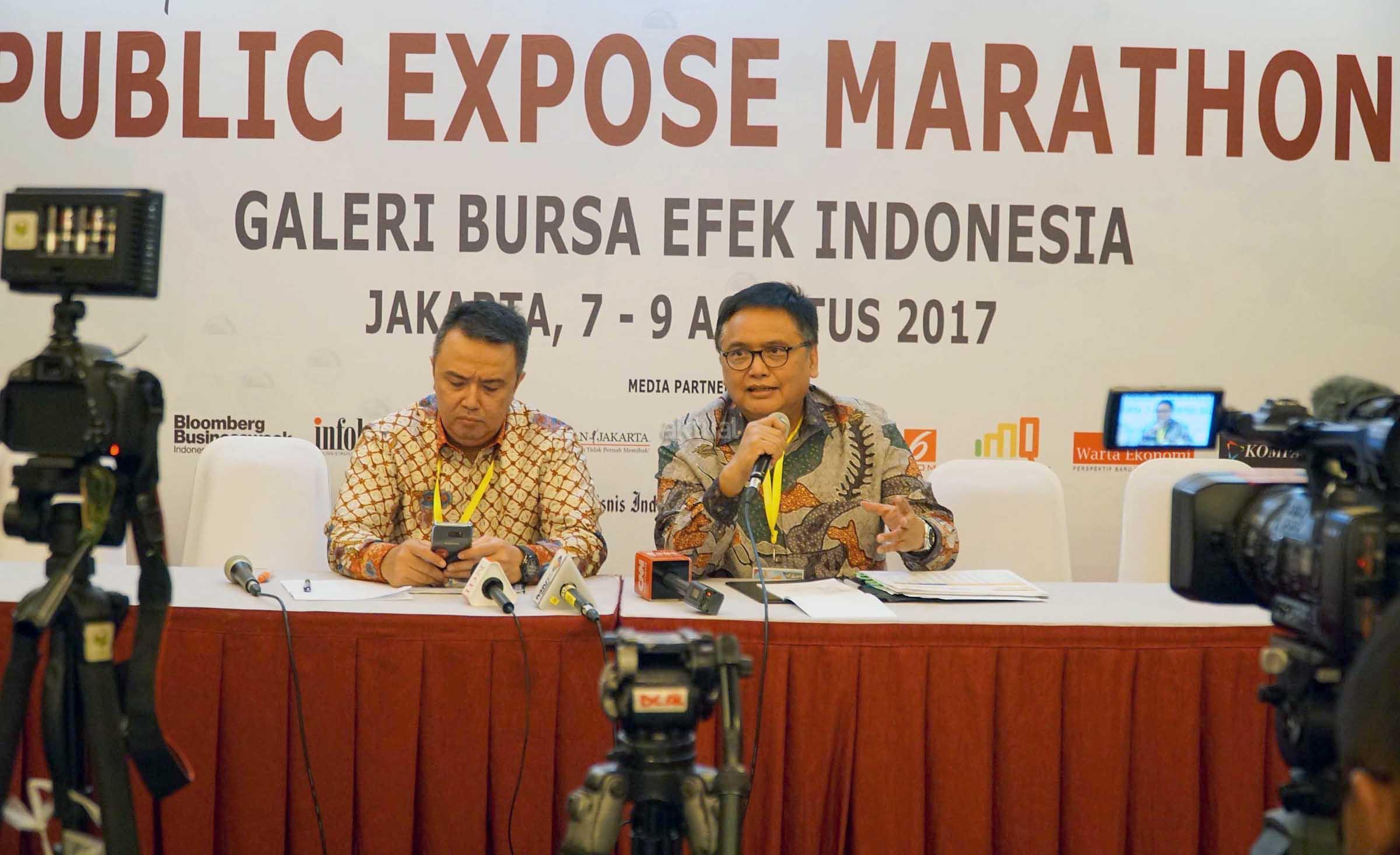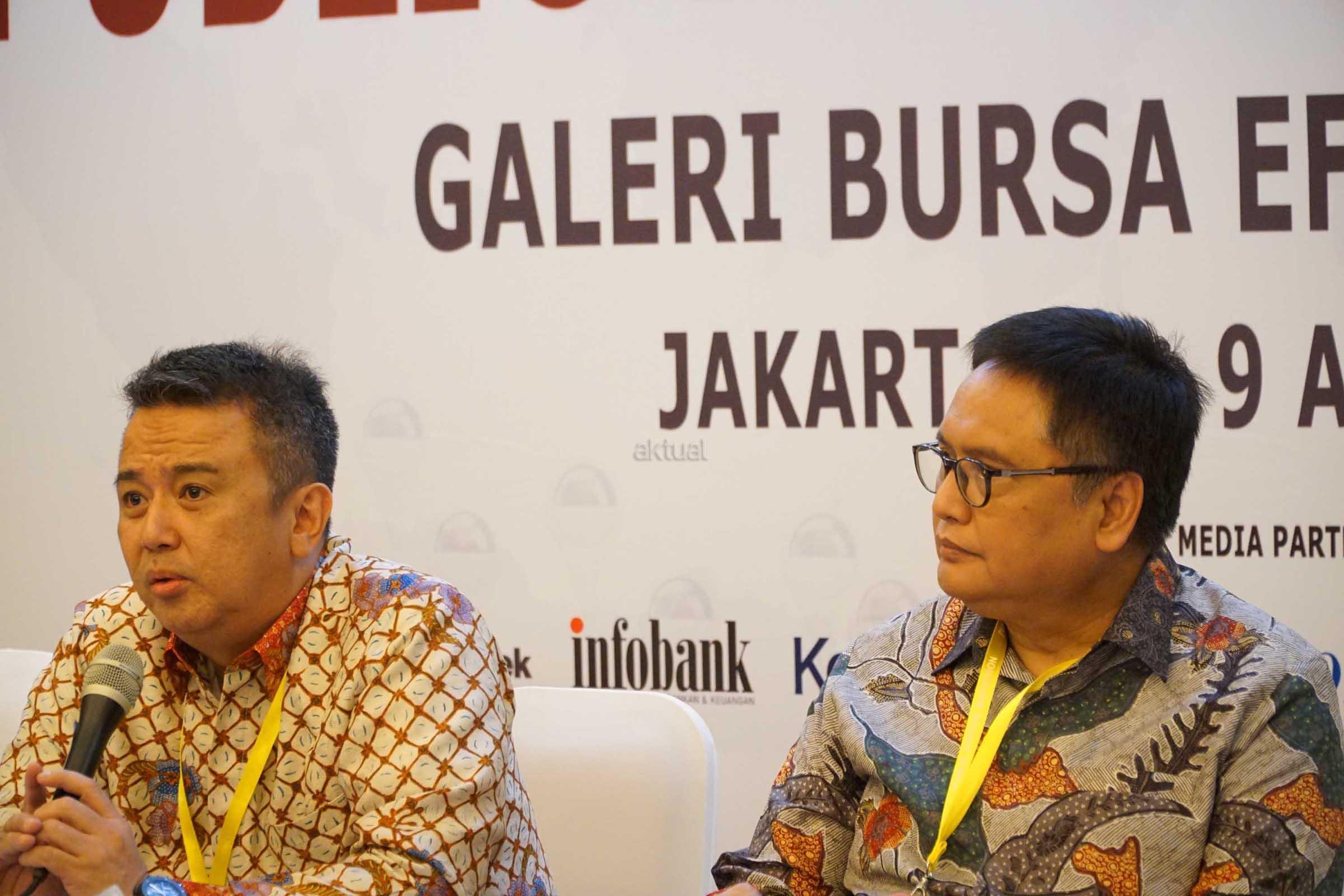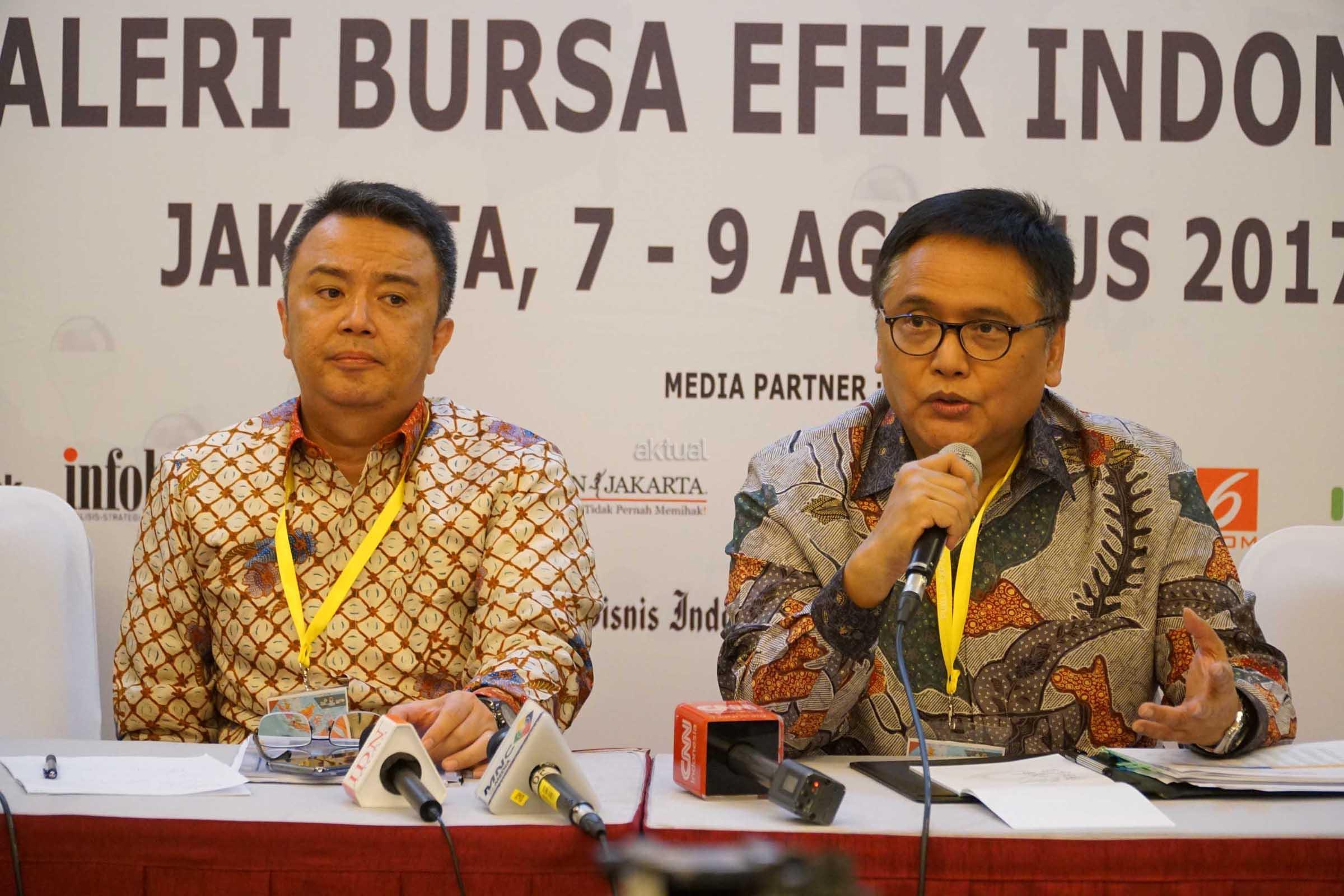Managing Director Commercial Lending PT Bank Tabungan Negara (Persero) Tbk. Oni Febriarto R. (kiri) dan Managing Director Finance & Treasury Iman Nugroho Soeko memberi keterangan pers usai Public Expose di Gedung Bursa Efek Indonesia, Jakarta, Selasa (8/8). Bank BTN terus mematangkan rencana ekspansi anorganik perseroan untuk menambah produk dan layanan, juga untuk mendukung pertumbuhan bisnis organik perseroan yang terus mencatatkan kinerja positif, untuk mengejar posisi 5 teratas sebagai bank dengan aset terbesar di Indonesia. AKTUAL/Eko S Hilman