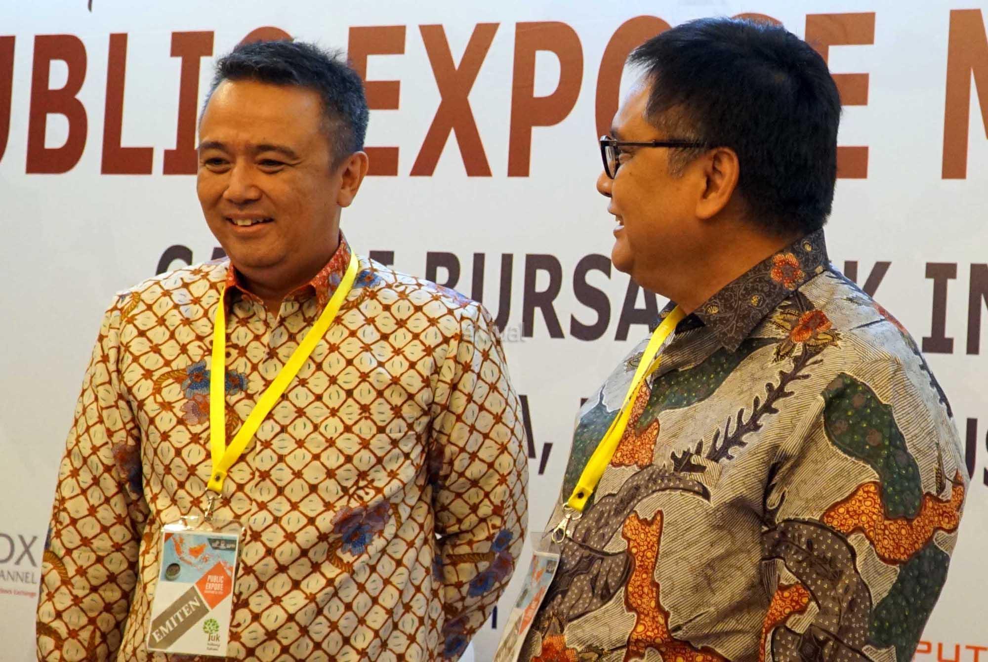 Managing Director Commercial Lending PT Bank Tabungan Negara (Persero) Tbk. Oni Febriarto R. (kiri) dan Managing Director Finance & Treasury Iman Nugroho Soeko berbincang sebelum memberi keterangan pers usai Public Expose di Gedung Bursa Efek Indonesia, Jakarta, Selasa (8/8). Bank BTN terus mematangkan rencana ekspansi anorganik perseroan untuk menambah produk dan layanan, juga untuk mendukung pertumbuhan bisnis organik perseroan yang terus mencatatkan kinerja positif, untuk mengejar posisi 5 teratas sebagai bank dengan aset terbesar di Indonesia. AKTUAL/Eko S Hilman
