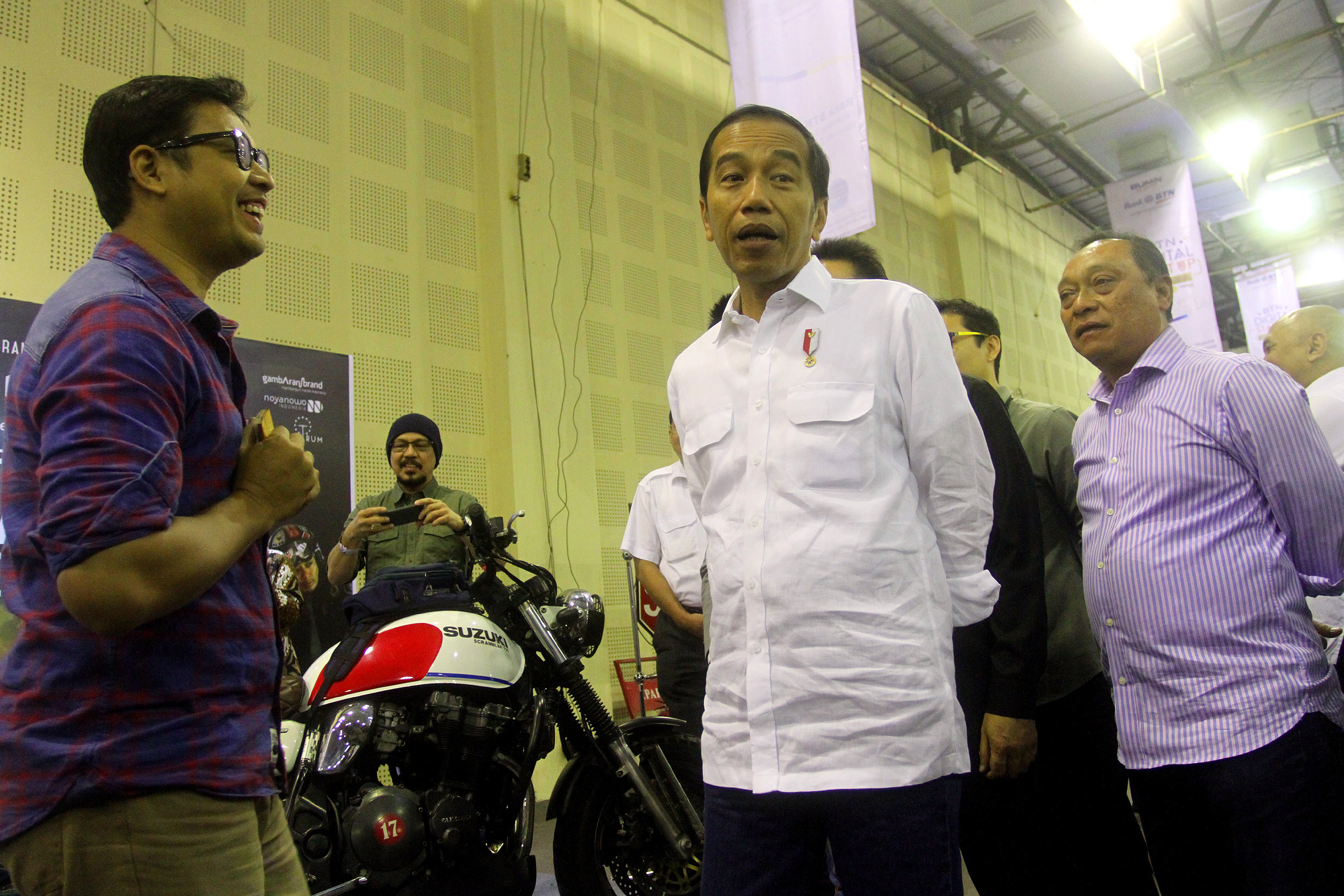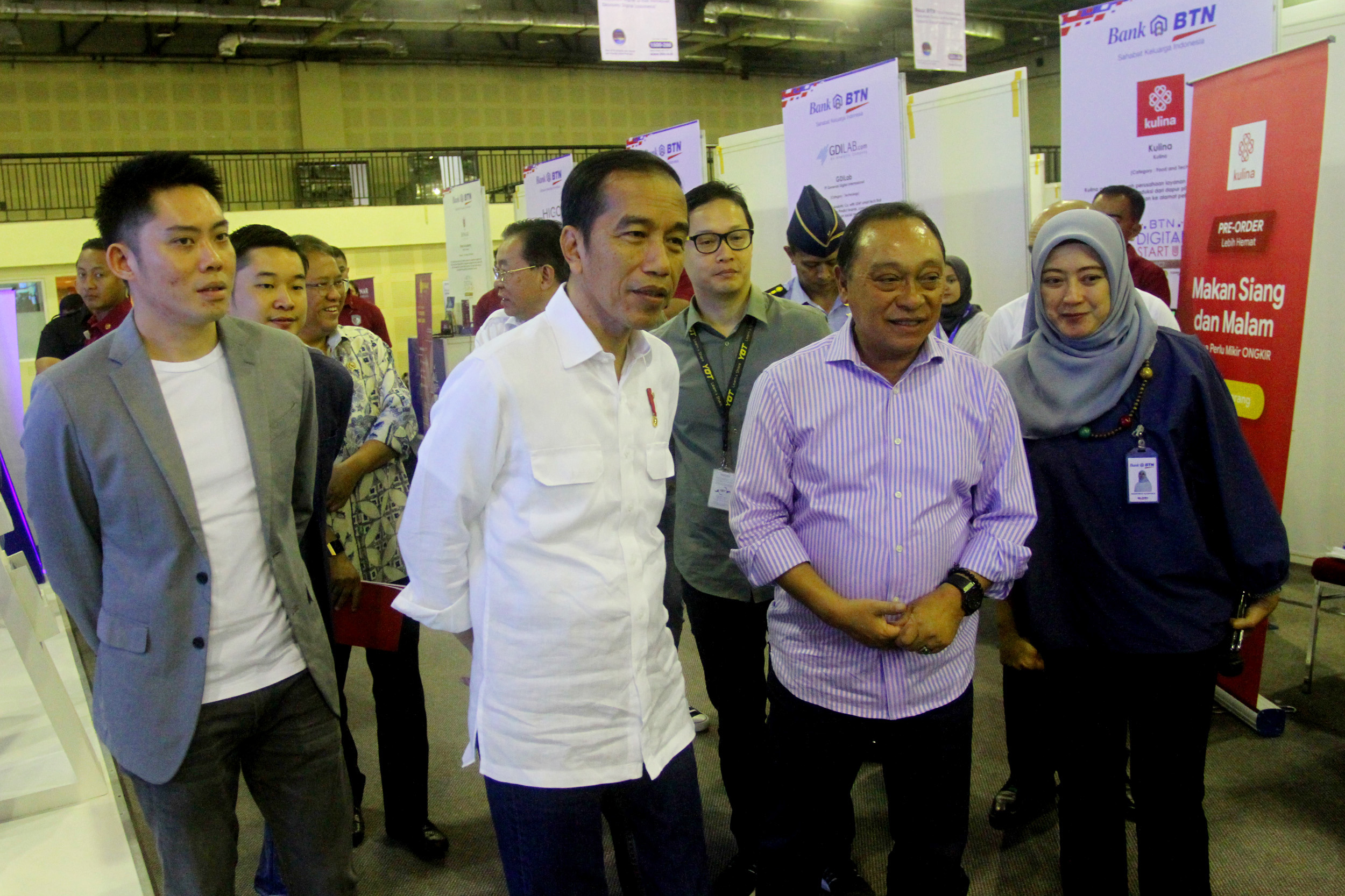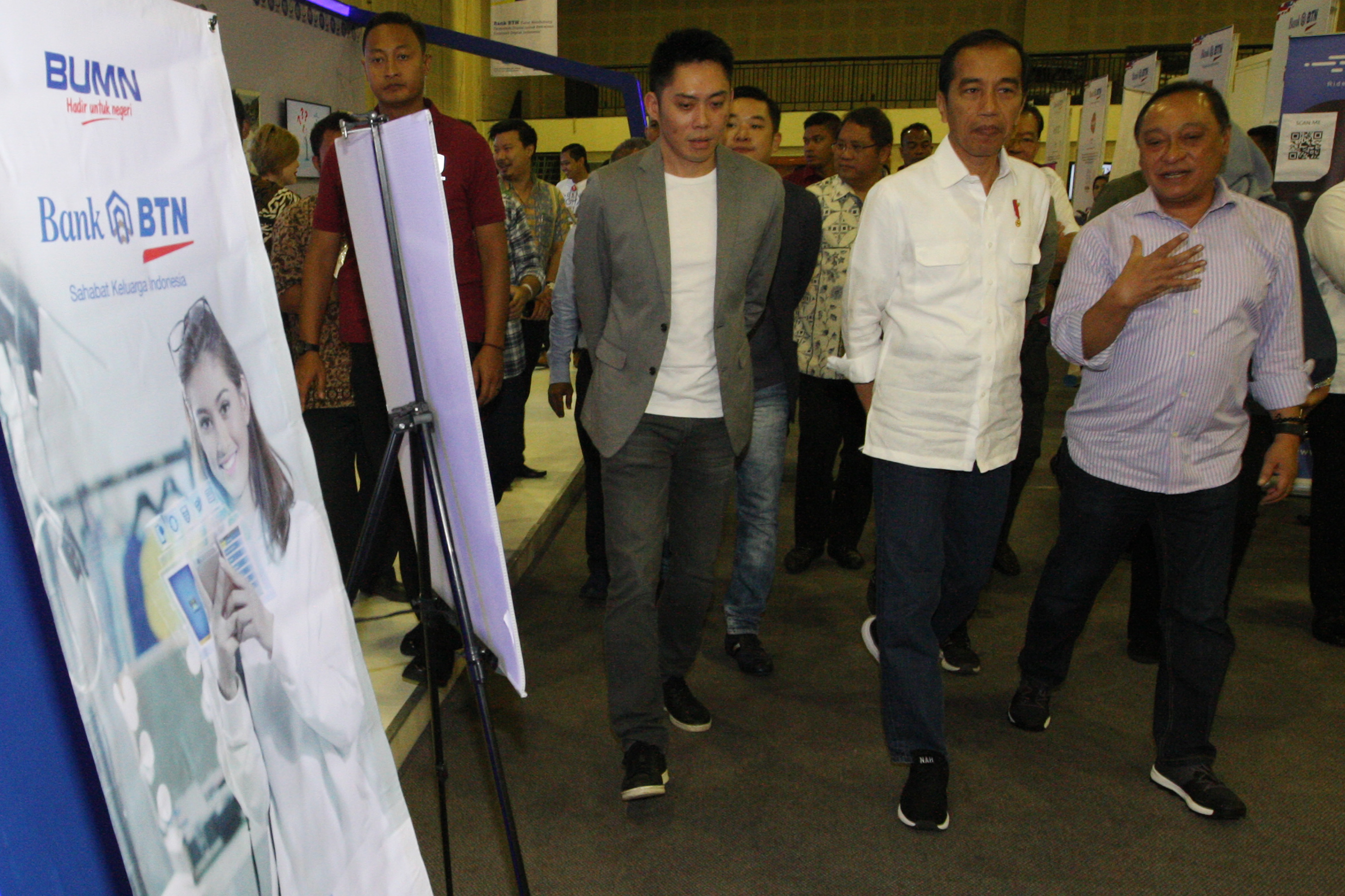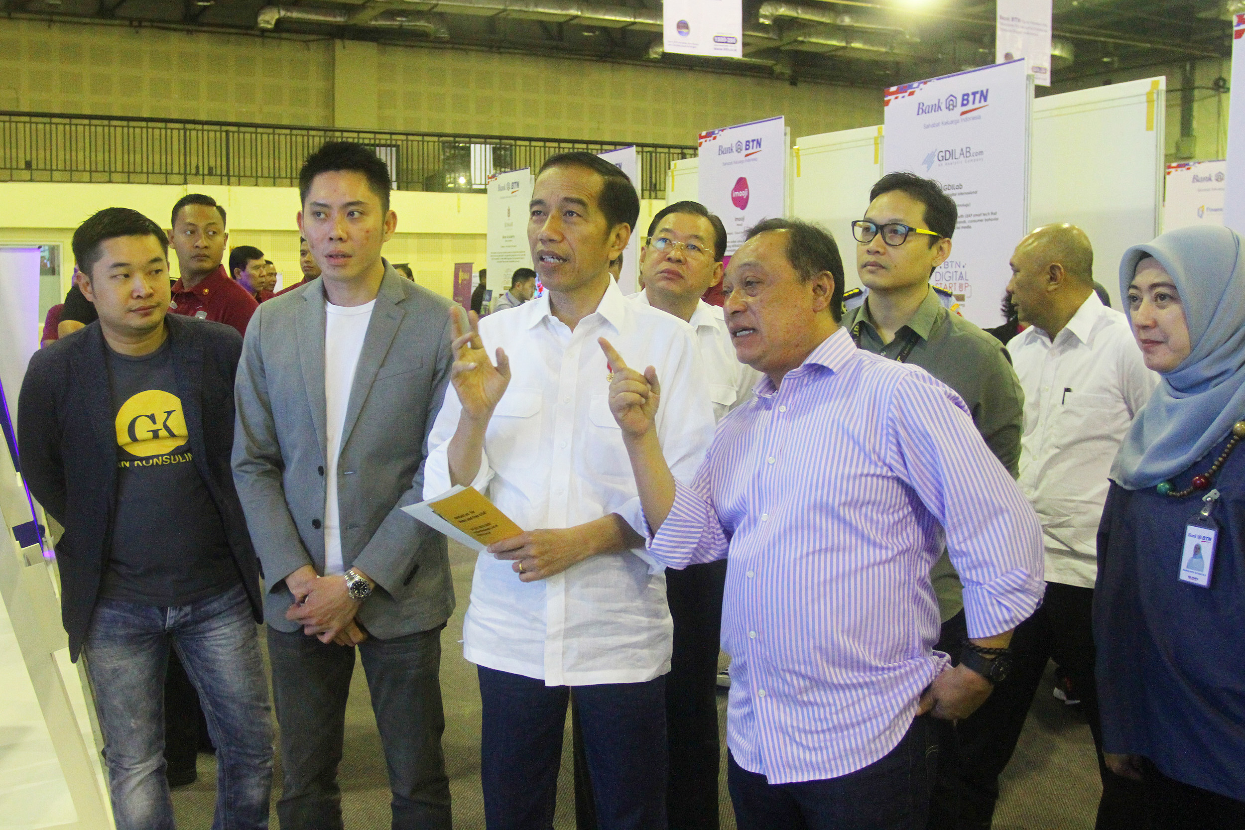 Presiden Republik Indonesia Joko Widodo bersama Direktur Utama PT Bank Tabungan Negara (Persero) Tbk, Maryono meninjau pameran start up dalam acara BTN Digital Start Up Connect 2018 di Balai Kartini, Jakarta, Jumat (7/12). Dukungan Bank BTN terhadap ekonomi digital diwujudkan dengan merangkul perusahaan perintis diantaranya Plug N Play Indonesia yang diajak untuk mencari perusahaan start up yang siap dijadikan strategic partner BTN untuk bertransformasi digital. Sejalan dengan transformasi bisnis digital banking yang sedang berjalan, Bank BTN optimis kolabarasi ini akan mendukung bisnis perseroan dalam pengembangan bisns perbankan berbasis e-commerce dan fintech. AKTUAL/Eko S Hilman