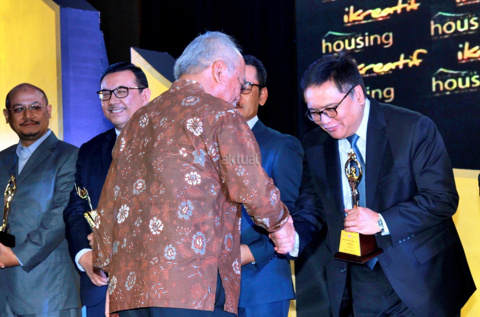 Managing Director Finance & Treasury PT Bank Tabungan Negara (Persero) Tbk. Iman Nugroho Soeko menerima penghargaan dari Menteri Pekerjaan Umum dan Perumahan Rakyat (PUPR) Basuki Hadimuljono dalam Realestate Creative Awards (RCA), di Jakarta, Jumat (11/8). Adapun, dalam ajang tersebut, Bank BTN menyabet penghargaan sebagai penyalur KPR terbanyak. Selain itu, dalam gelaran ini, Direktur Utama Bank BTN Maryono dinobatkan sebagai Best CEO atas sepak terjang dan dukungannya di sektor properti. Ajang RCA 2017 merupakan event tahunan yang digelar DPD REI DKI Jakarta, Majalah Indonesia Housing, dan Majalah Indonesia Kreatif sebagai bentuk kepedulian dan dukungan terhadap kiprah perusahaan maupun individu di sektor properti, building material, perbankan, asuransi, instansi pemerintah, organisasi, dan akademisi dalam menopang kemajuan ekonomi Indonesia. AKTUAL/Eko S Hilman