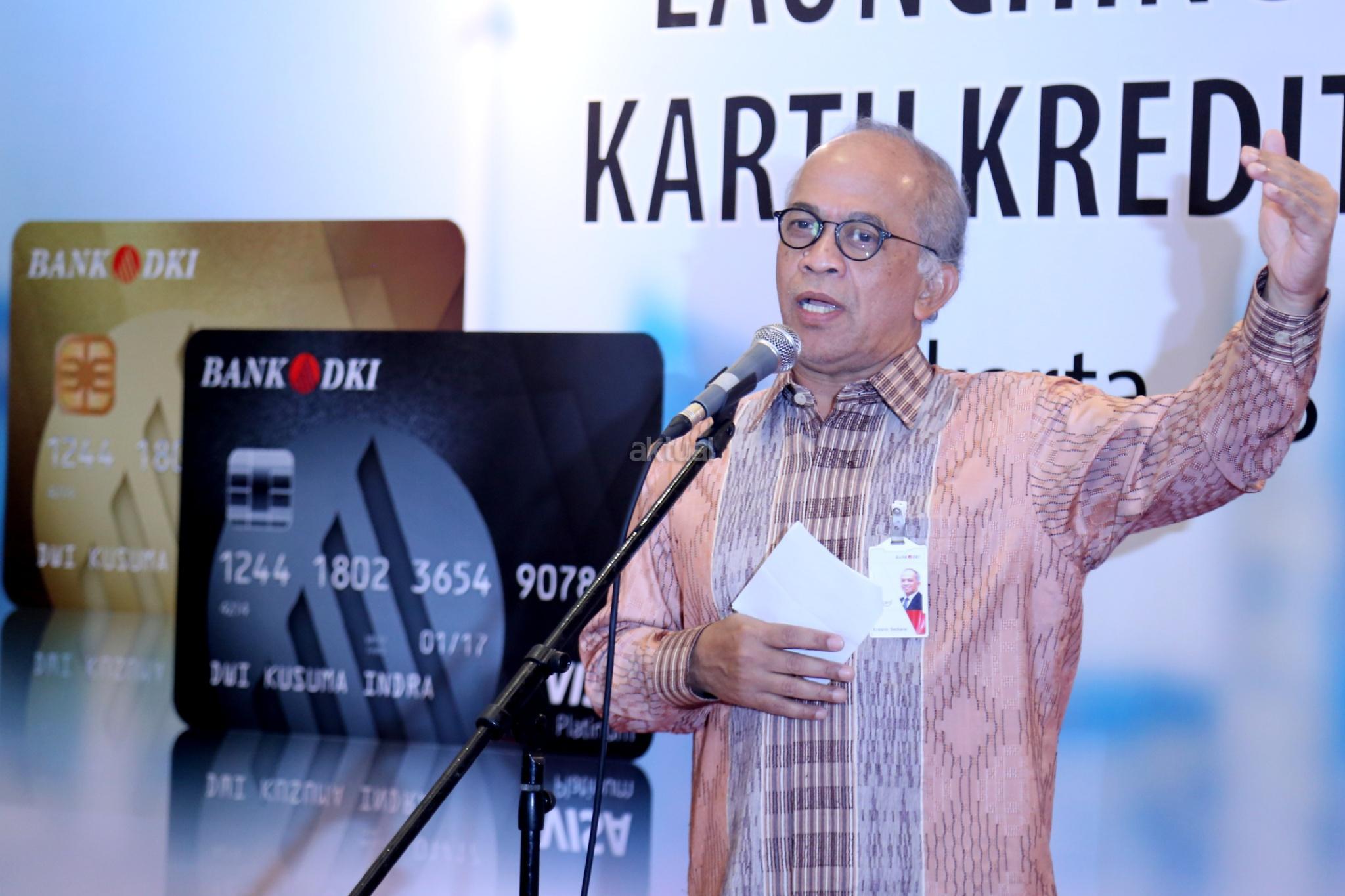 Direktur Utama Bank DKI Kresno Sediarsimenyampaikan sambutab saat peluncuran kartu Co-Branding Bank DKI dan Bank BNI di Jakarta, Rabu (23/8). AKTUAL/Tino Oktaviano