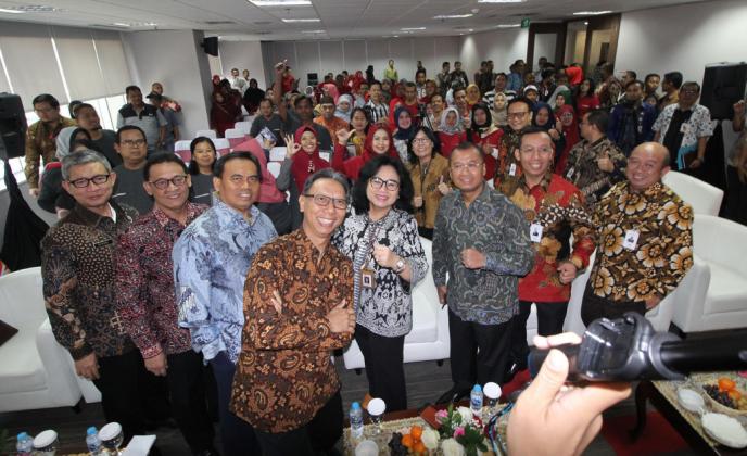 Plt Direktur Utama PT Bank DKI, Sigit Prastowo foto bersama Anggota Dewan Komisioner OJK, Tirta Segara dan Sekretaris Daerah Provinsi DKI Jakarta, Saefullah usai memberikan penyaluran kredit secara simbolis kepada perwakilan dari 250 peserta program Pengembangan Kewirausahaan Terpadu (PKT) pada acara Business Matching Penyaluran Kredit Kepada Usaha Mikro & Kecil di Provinsi DKI Jakarta bersama Pemprov DKI Jakarta dan OJK di Jakarta, Kamis (25/7). AKTUAL/Dok Bank DKI