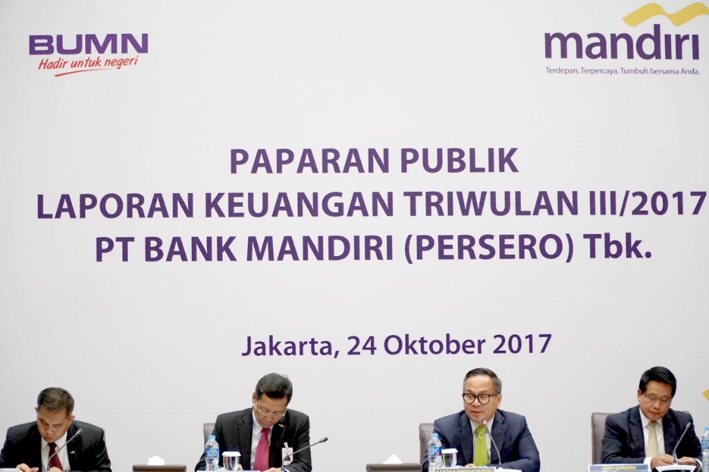 Atas implementasi peran perseroan sebagai agen pembangunan, Bank Mandiri berhasil mencatatkan pertumbuhan kredit 9,8% yoy pada akhir September 2017 menjadi Rp686,2 triliun, dimana penyaluran ke sektor produktif mencapai Rp510,7 triliun, atau hampir 75% dari portollio Bank Mandiri. Atas capaian tersebut, perseroan membukukan kenaikan laba bersih sebesar 25,4% menjadi Rp15,1 triliun pada akhir triwulan III-2017. AKTUAL/Eko S Hilman