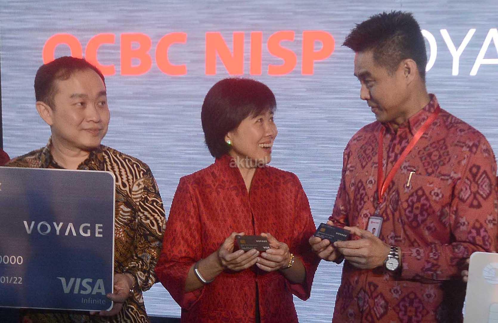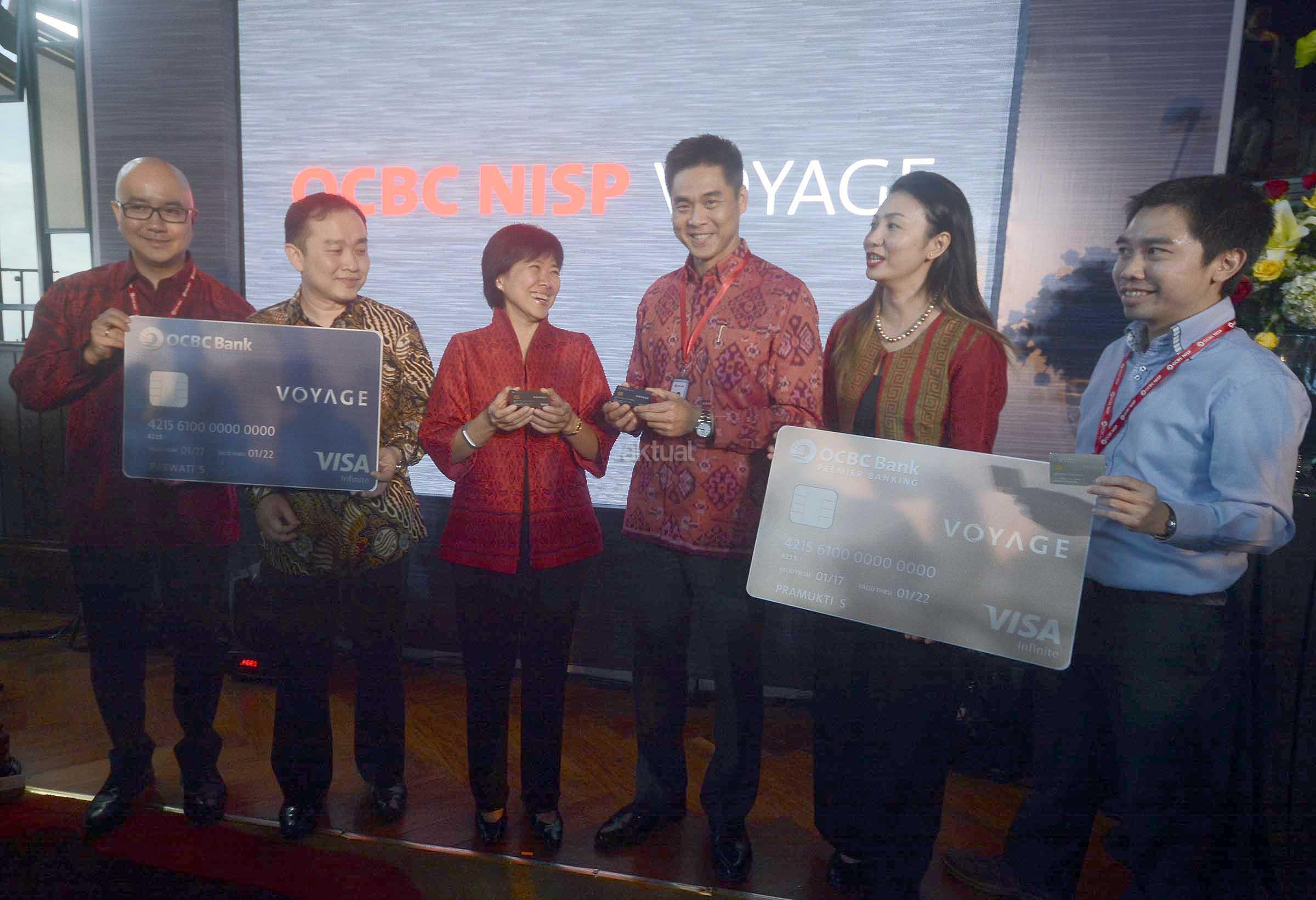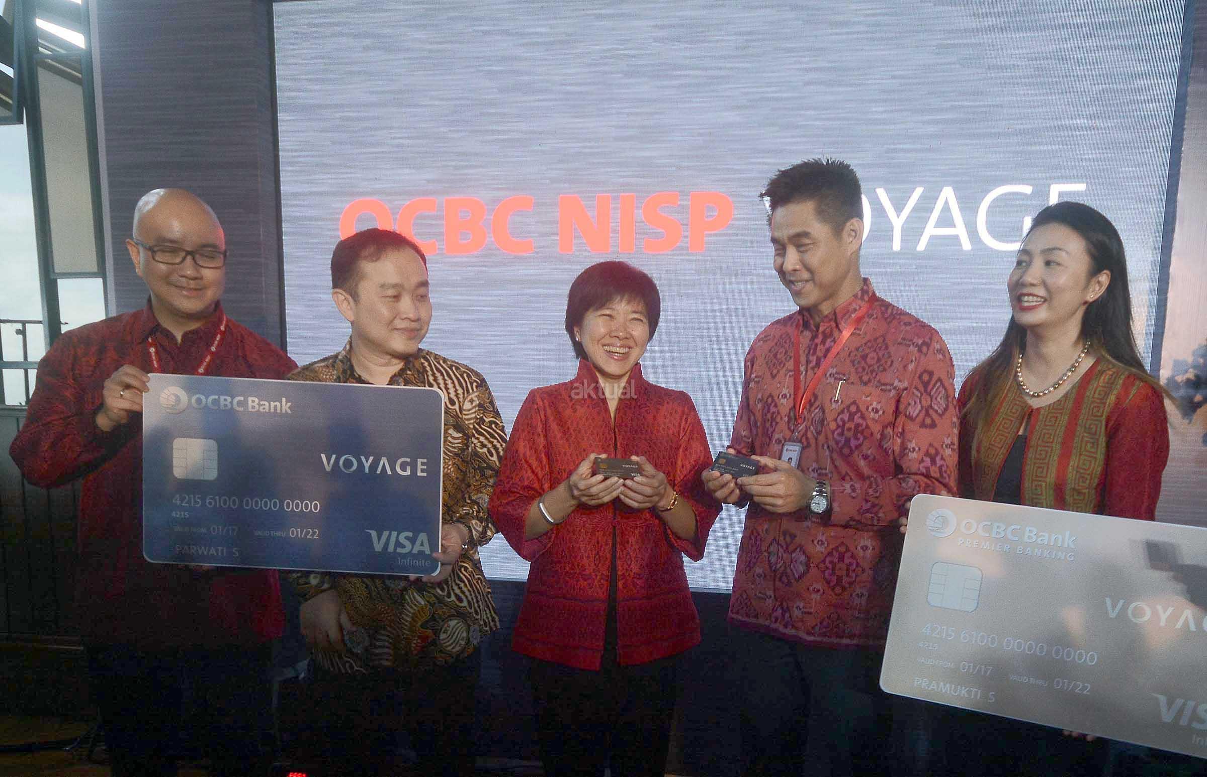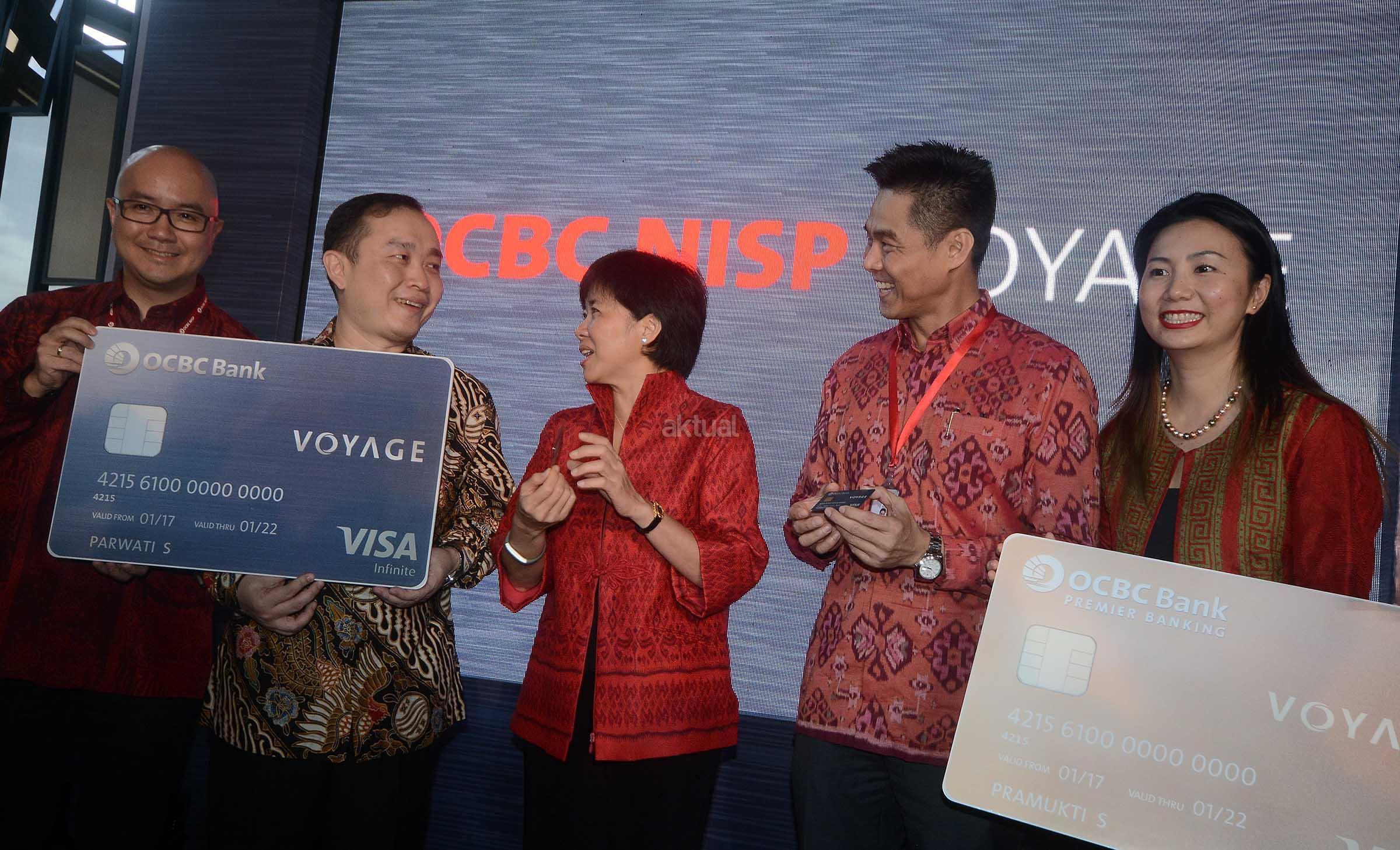 (Dari kiri ke kanan) Head of Individual Customer Solutions Bank OCBC NISP, Kajit, Presiden Direktur PT Visa Worldwide Indonesia,Harianto Gunawan, President Director & CEO OCBC NISP, Parwati Surjaudaja, Direktur Retail Banking Group OCBC NISP, Thomas Low serta SVP Unsecured Loan Division Head Bank OCBC NISP, Meri Ui berbincang disela peluncuran kartu kredit Voyage bagi kalangan high affluent di Jakarta, Kamis (19/1). Kartu kredit Voyage sebagai kartu kredit metal pertama di Indonesia yang terbuat dari bahan duralumin tersebut kartu unggulan yang dapat memberikan berbagai layanan concierge premium tanpa batas yang berkaitan dengan travel dan lifestyle. Kartu kredit Voyage terbagi atas dua pilihan kartu kredit yaitu kartu kredit Premier dan kartu kredit OCBC NISP Voyage. AKTUAL/Eko S Hilman