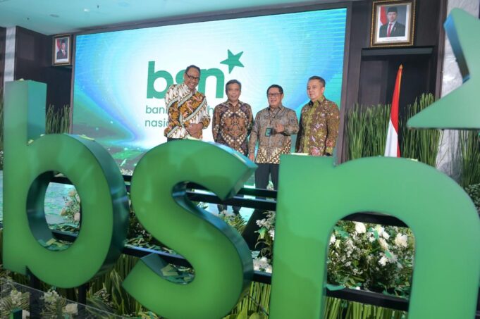 Direktur Utama Bank Syariah Nasional atau BSN Alex Sofjan Noor bersama Direktur Utama BTN Nixon LP Napitupulu, Wakil Direktur Utama BTN Oni Febriarto dan Komisaris Utama BSN Bahrullah Akbar melakukan ceremony peluncuran logo dan nama Bank Syariah Nasional di Jakarta, Kamis (2/10). Peluncuran logo dan nama BSN ini merupakan tindak lanjut dari persetujuan yang diberikan oleh Otoritas Jasa Keuangan melalui surat ketetapan tanggal 24 September 2025 yang mengijinkan operasional penggunaan nama bank yang sebelumnya bernama Bank Victoria Syariah menjadi Bank Syariah Nasional sebagai bank dengan status Bank Umum Syariah. BSN masih tetap harus menunggu RUPSLB yang akan diselenggarakan pada November 2025 mendatang untuk menerima pelimpahan hak dan kewajiban UUS dari BTN untuk beroperasi secara normal melayani masyarakat dengan produk dan jasa berlabel BSN. Dengan visi BSN menjadi mitra utama keuangan keluarga yang berkah dan amanah, perseroan berkomitmen tetap mendukung program pembiayaan rumah rakyat melalui pembiayaan syariah dengan dukungan dital financial yang komprehensif memudahkan masyarakat dengan layanan cepat, mudah dan akurat. Aktual/DOK BTN