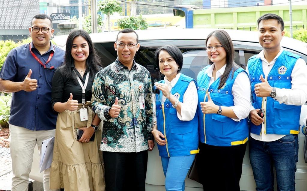 Direktur Keuangan Bank DKI, Sigit Prastowo (kiri) menyerahkan 1 unit mobil operasional kepada Sekretaris Pengurus Yayasan Gerakan Nasional Orang Tua Asuh (GNOTA), Yasinta Widowati (kanan) di Jakarta, Kamis (1/3/18). Pemberian bantuan ini merupakan wujud kepedulian Bank DKI bagi anak-anak yang memerlukan bantuan pendidikan. AKTUAL/Eko S Hilman