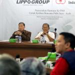 Founder Lippo Group Mochtar Riady (kiri) didampingi Pelaksana Harian Ketua Umum PMI Ginandjar Kartasasmita (kanan) berbincang disela - sela penyerahan bantuan kemanusiaan di kantor pusat PMI, Jakarta, Kamis (8/12). Lippo Group memberikan bantuan kemanusiaan berupa dana sebesar Rp250 juta dan barang senilai Rp 250 juta yang akan diberikan kepada korban gempa bumi di Kabupaten Pidie Jaya, Aceh. AKTUAL/Munzir
