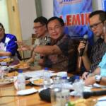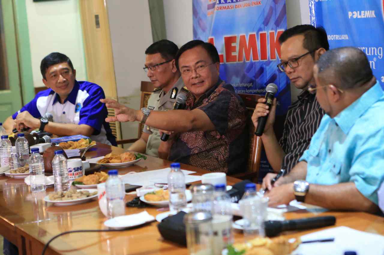 Dari kiri ke kanan, Kabag Humas Badan Narkotika Nasional (BNN) Kombes Pol Slamet Pribadi, Kabag Penum Mabes Polri Kombes Pol Martinus Sitompul, Mantan Deputi Bidang Pemberantasan BNN Kombes Pol (Purn) Benny Mamoto, Moderator Hardi Hermawan, Anggota Komisi III DPR RI Aboe Bakar Alhabsyi, Koalisi Anti Mafia Narkoba Usman Hamid, Koordinator Nasional Persaudaraan Korban Napza Indonesia Andreas Pundung menjadi pembicara pada diskusi Polemik SindoTrijaya dengan tema “Hitam Putih Pemberantasan Narkotika” di Jakarta, Sabtu (6/8). Mantan Deputi Pemberantasan dari Badan Narkotika Nasional (BNN), Irjen (Purn) Benny Mamoto, menyebut salah satu faktor maraknya peredaran narkoba di Indonesia karena terlibatnya oknum aparat dalam bisnis haram tersebut. AKTUAL/TINO OKTAVIANO