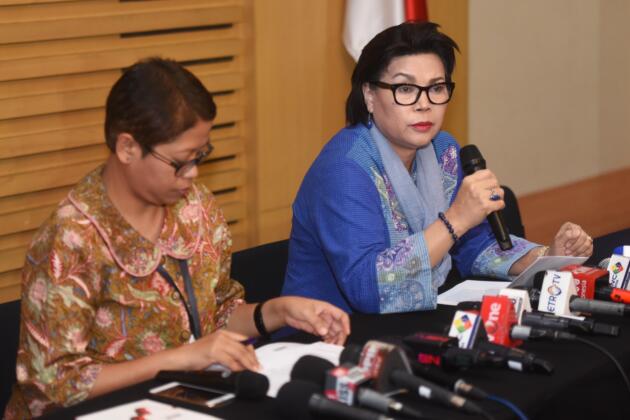 Wakil Ketua KPK Basaria Panjaitan (kedua kiri) didampingi Plh Kabiro Humas Yuyuk Andriati (kiri) memberikan keterangan mengenai operasi tangkap tangan kasus suap panitera PN Jakarta Utara di Jakarta, Kamis (16/6). Dalam OTT tersebut KPK menetapkan empat tersangka yaitu Panitera PN Jakarta Utara, dua pengacara dan seorang penyuap beserta uang Rp250 Juta yang diduga sebagai suap untuk mengurangi masa hukuman artis Saiful Jamil dalam kasus pencabulan terhadap anak. ANTARA FOTO/Akbar Nugroho Gumay/ama/16
