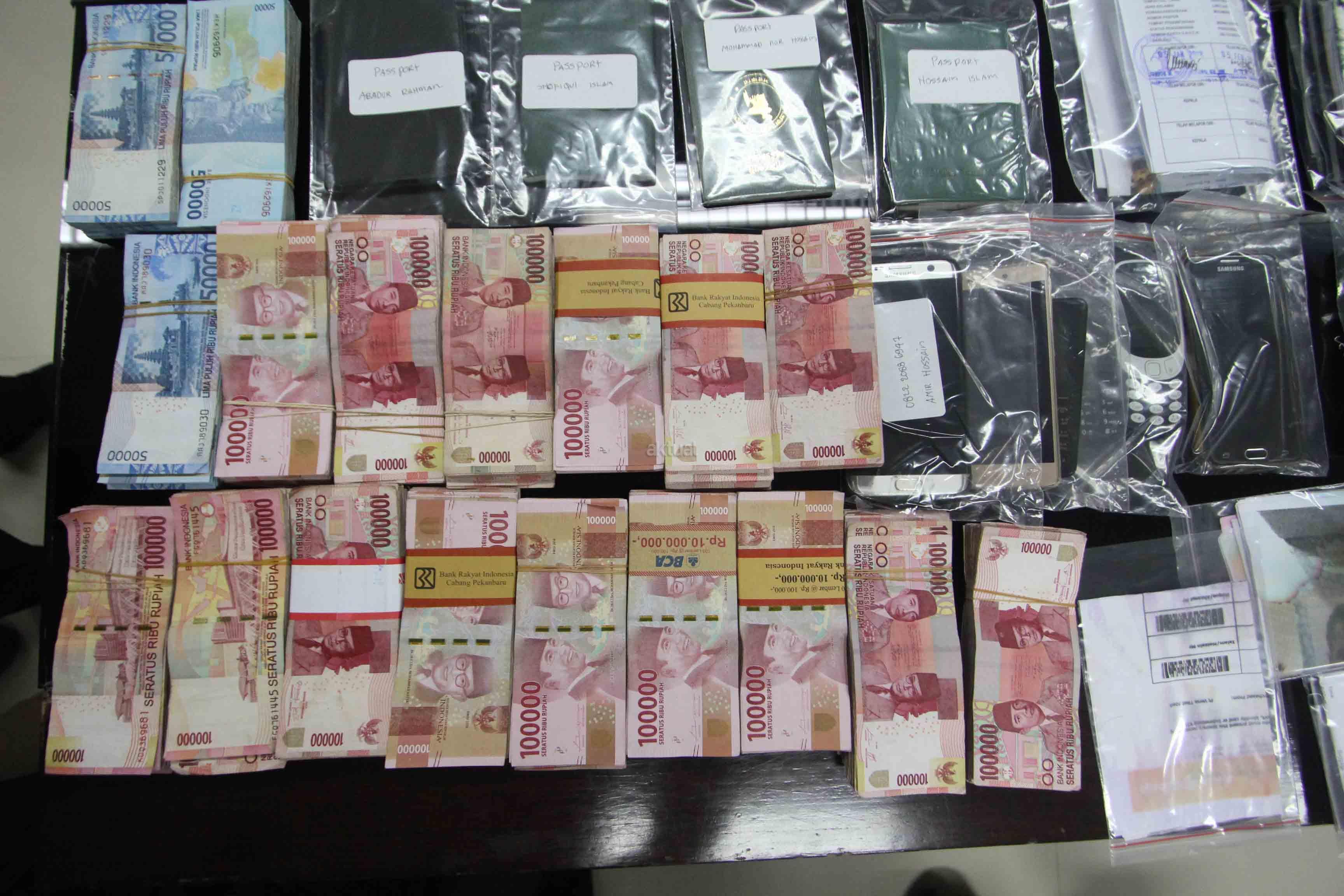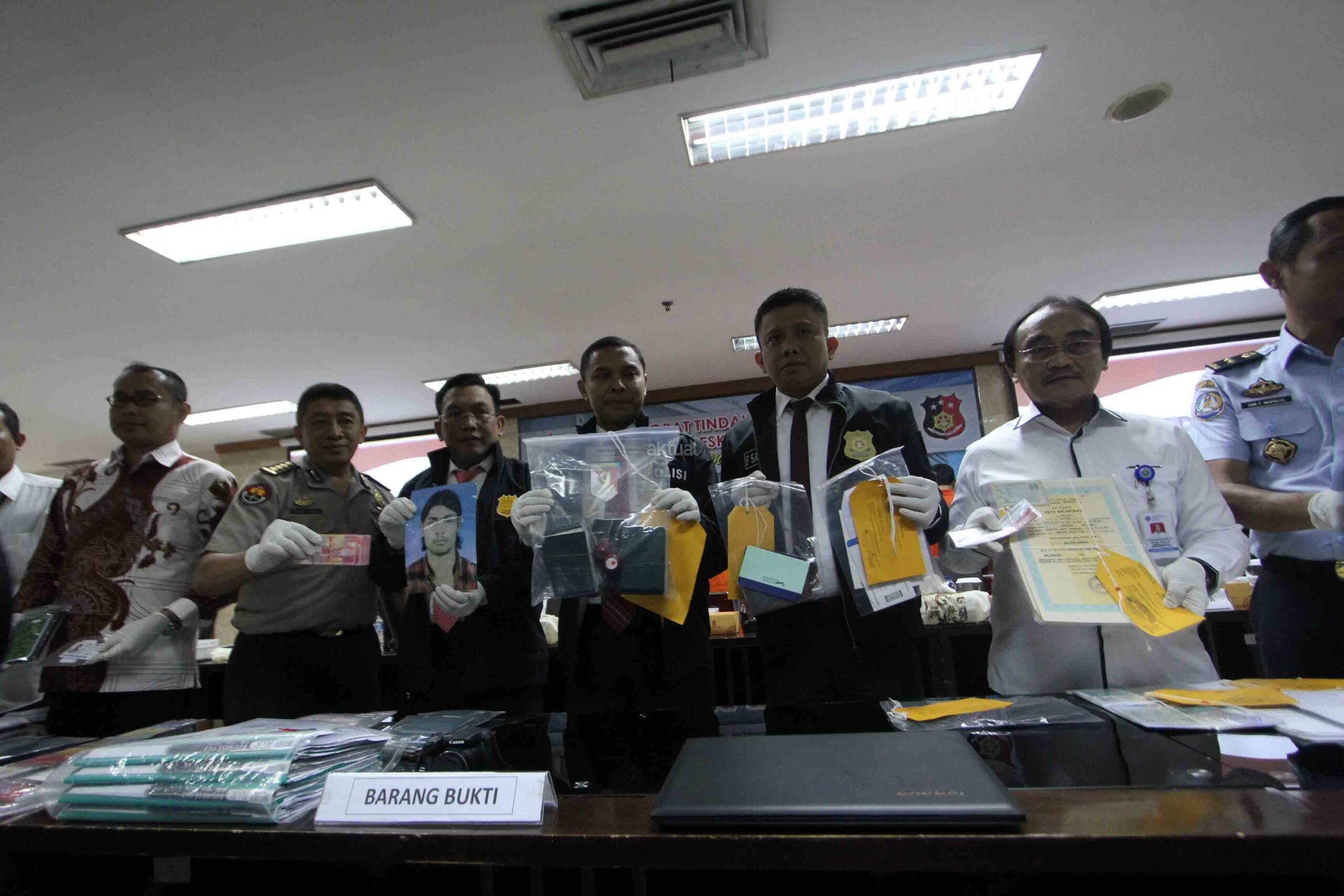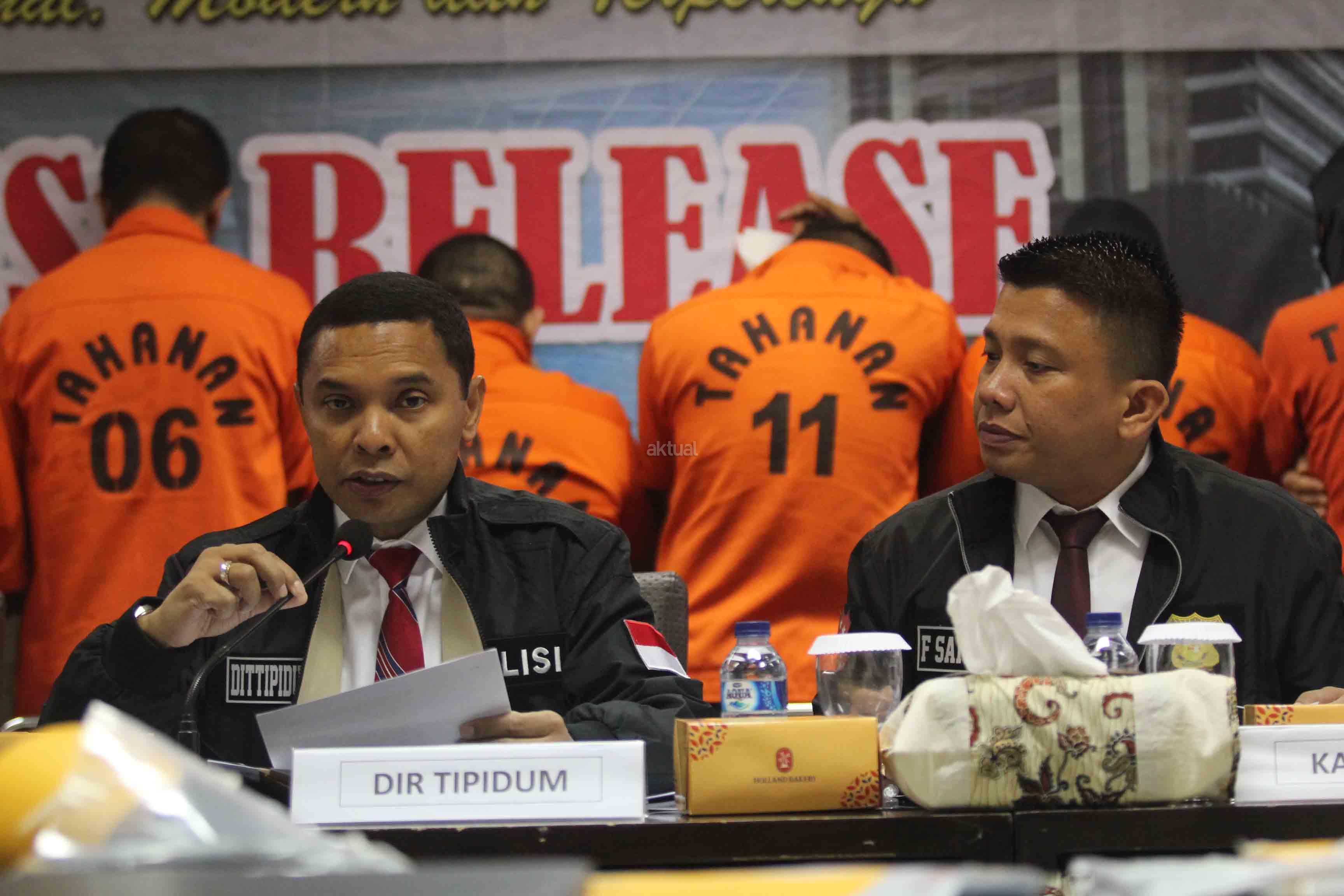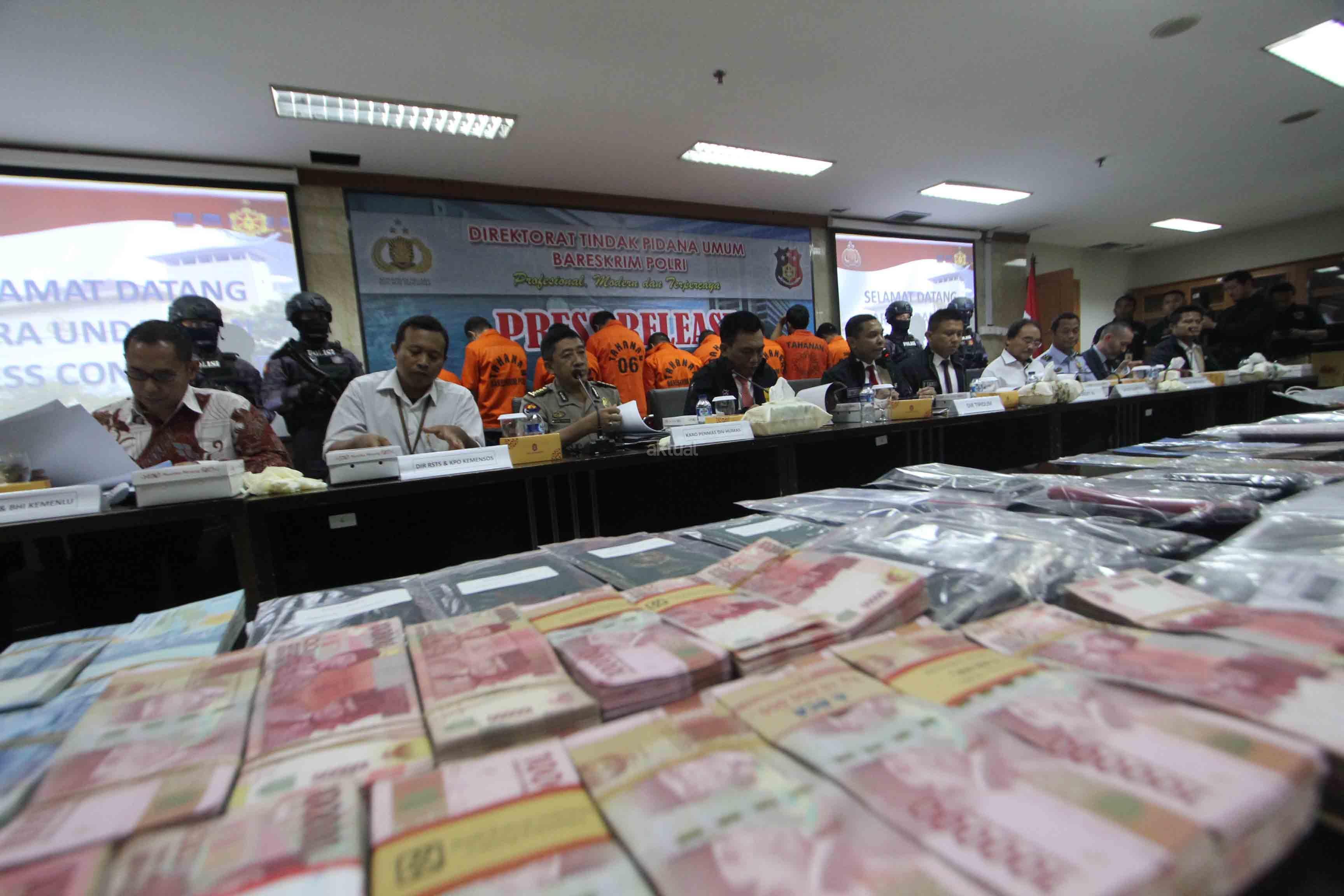 Bareskrim Mabes Polri berhasil melakukan pengungkapan tindak pidana perdagangan orang jaringan Arab Saudi, Sudan, Malaysia dan penyelundupan orang jalur Papua dengan mengamankan 9 orang tersangka dan sejumlah barang bukti. AKTUAL/Tino Oktaviano