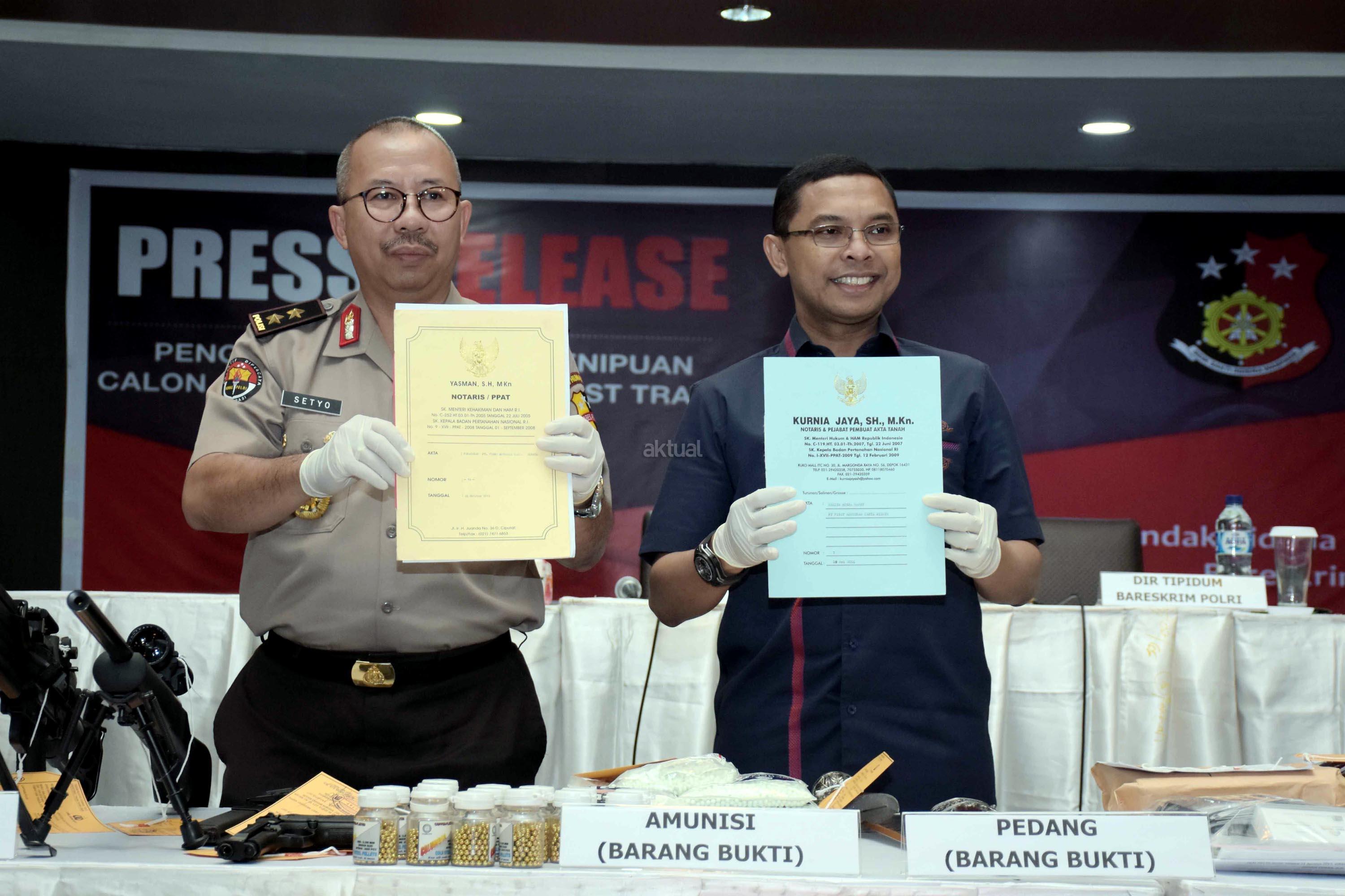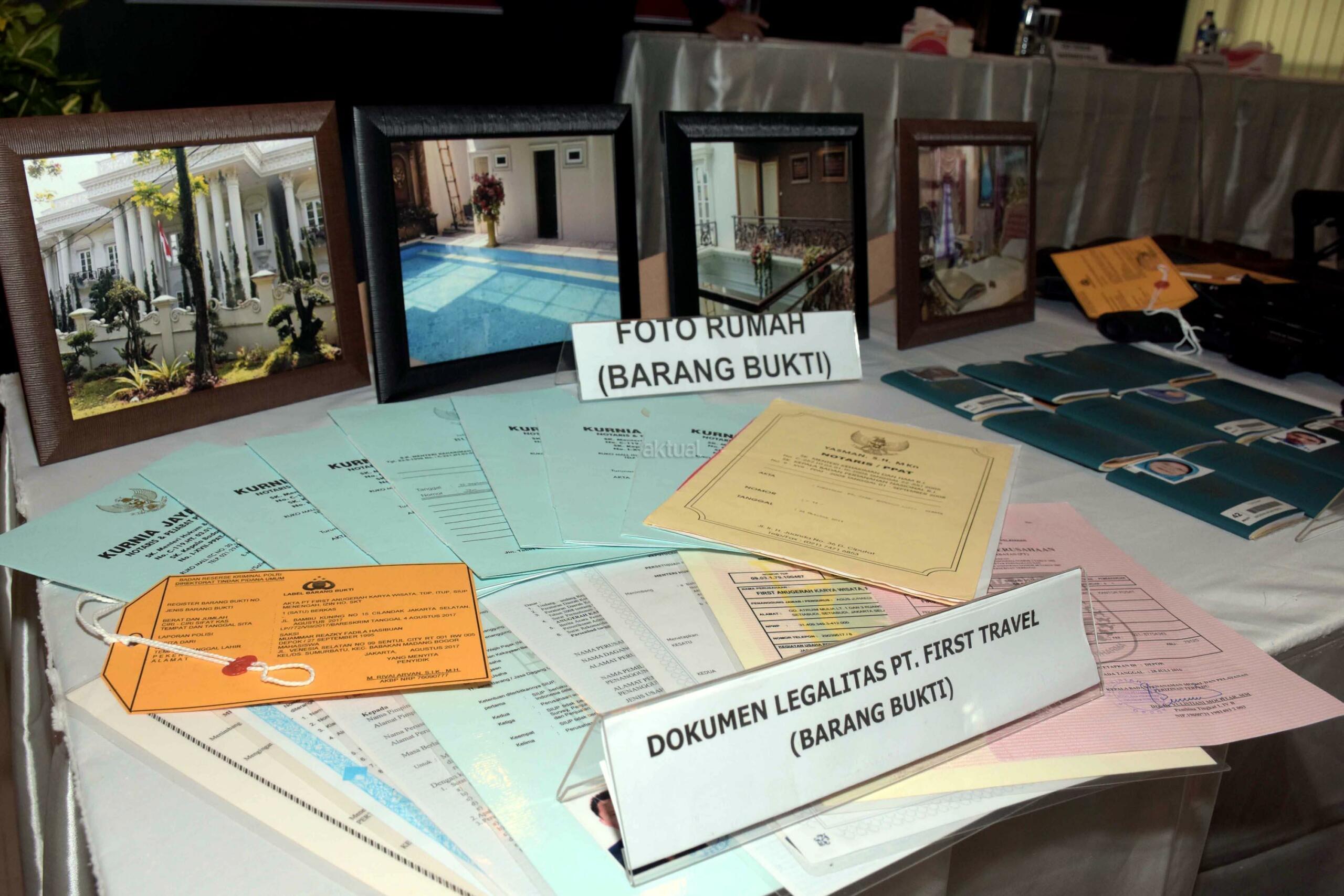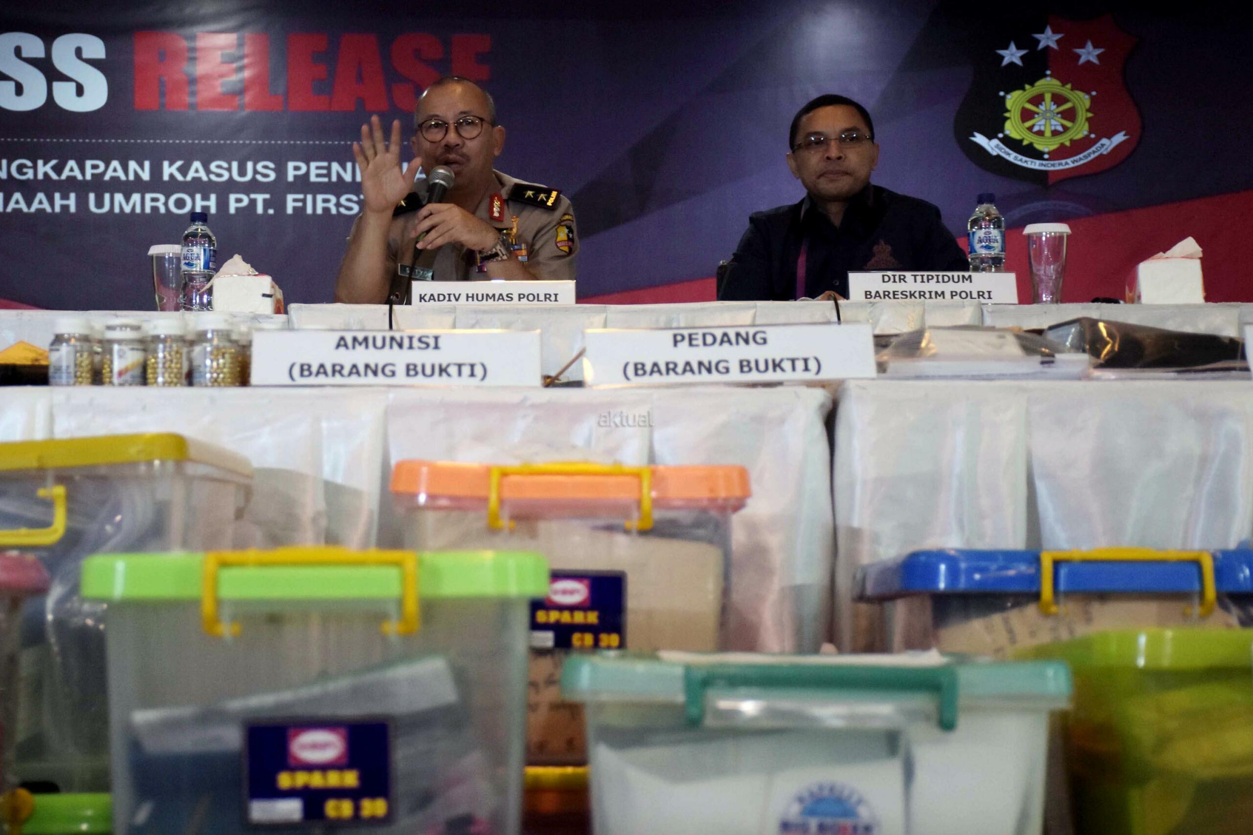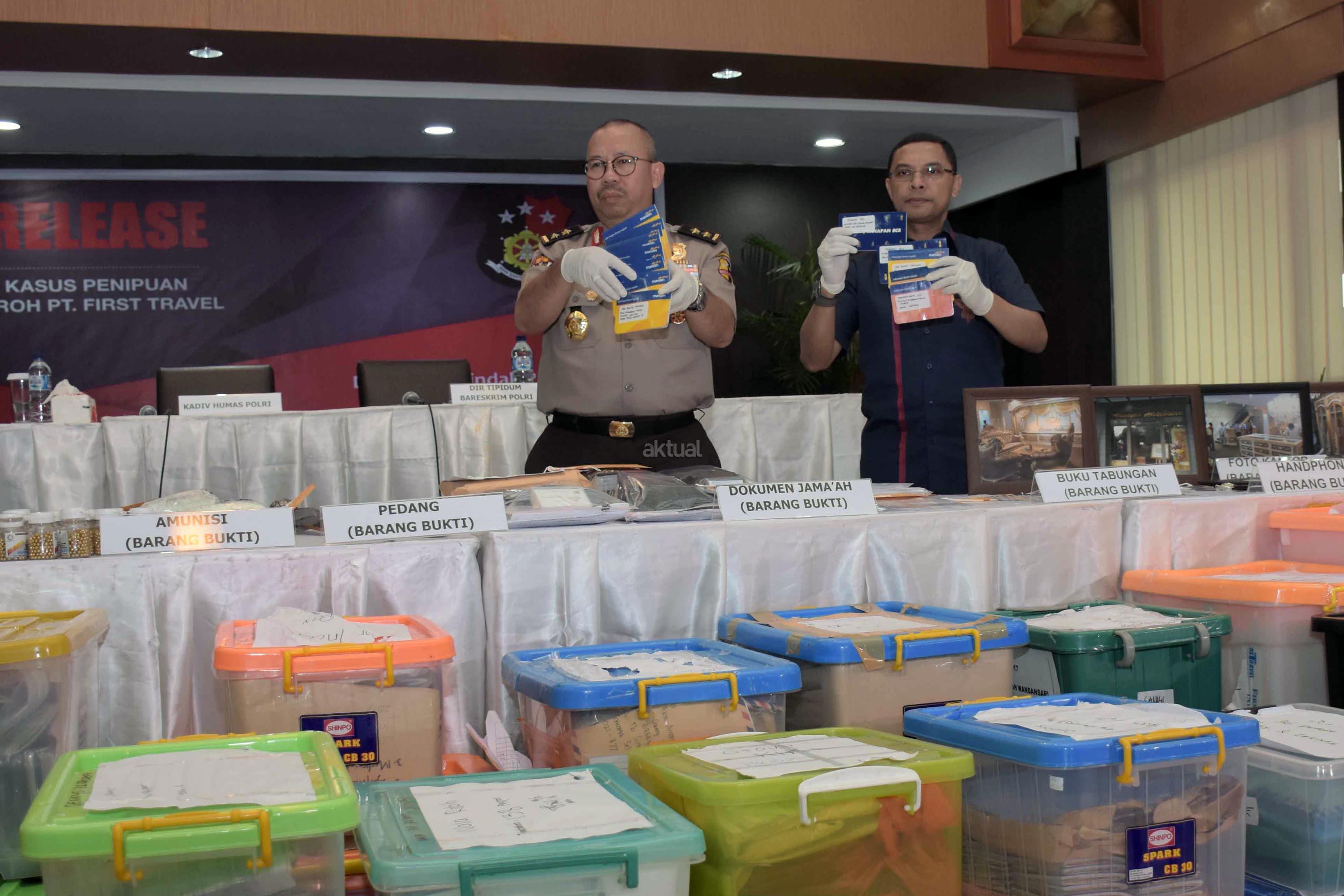 Bareskrim Rilis Dua Tersangka Frist Travel dan Barang Bukti