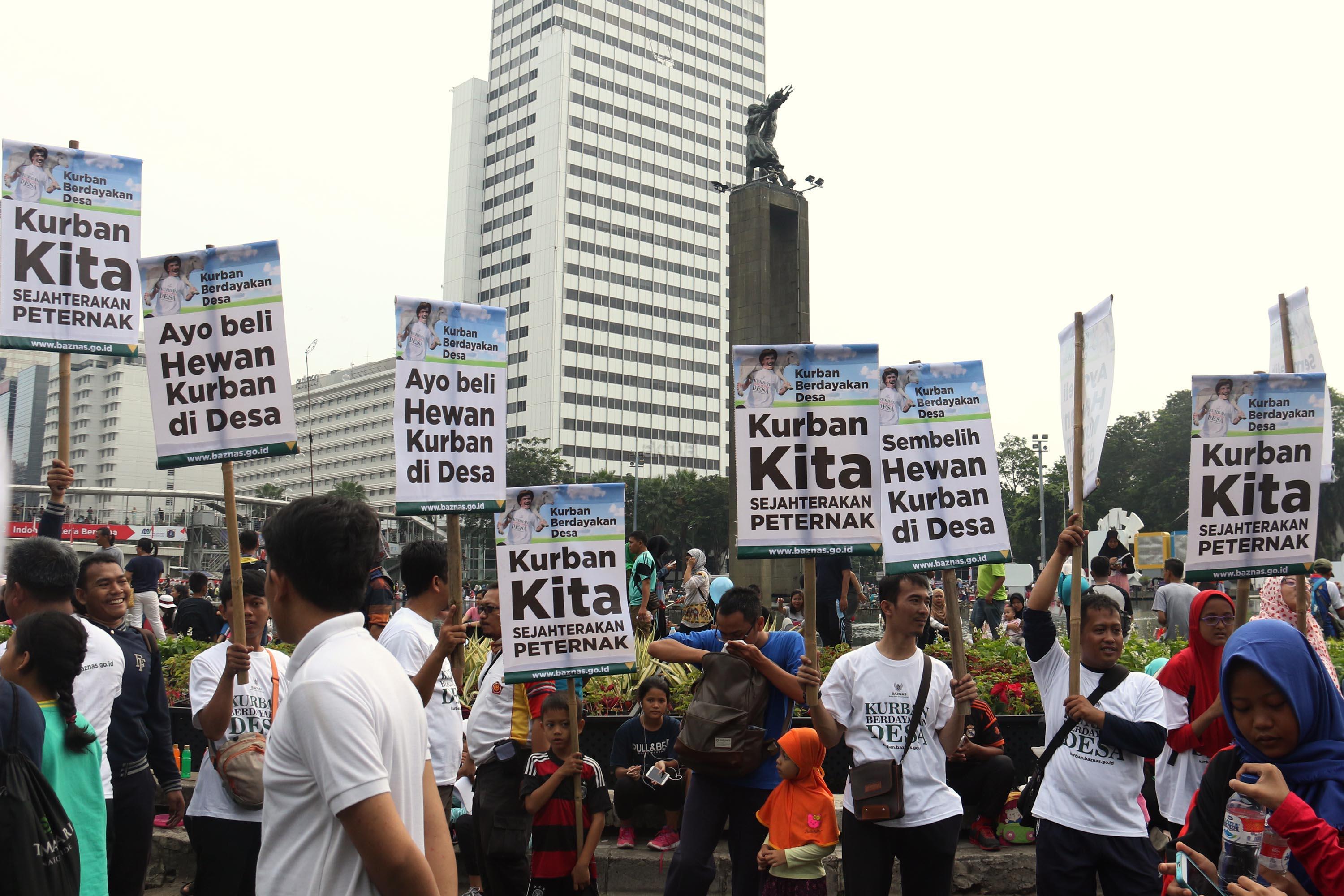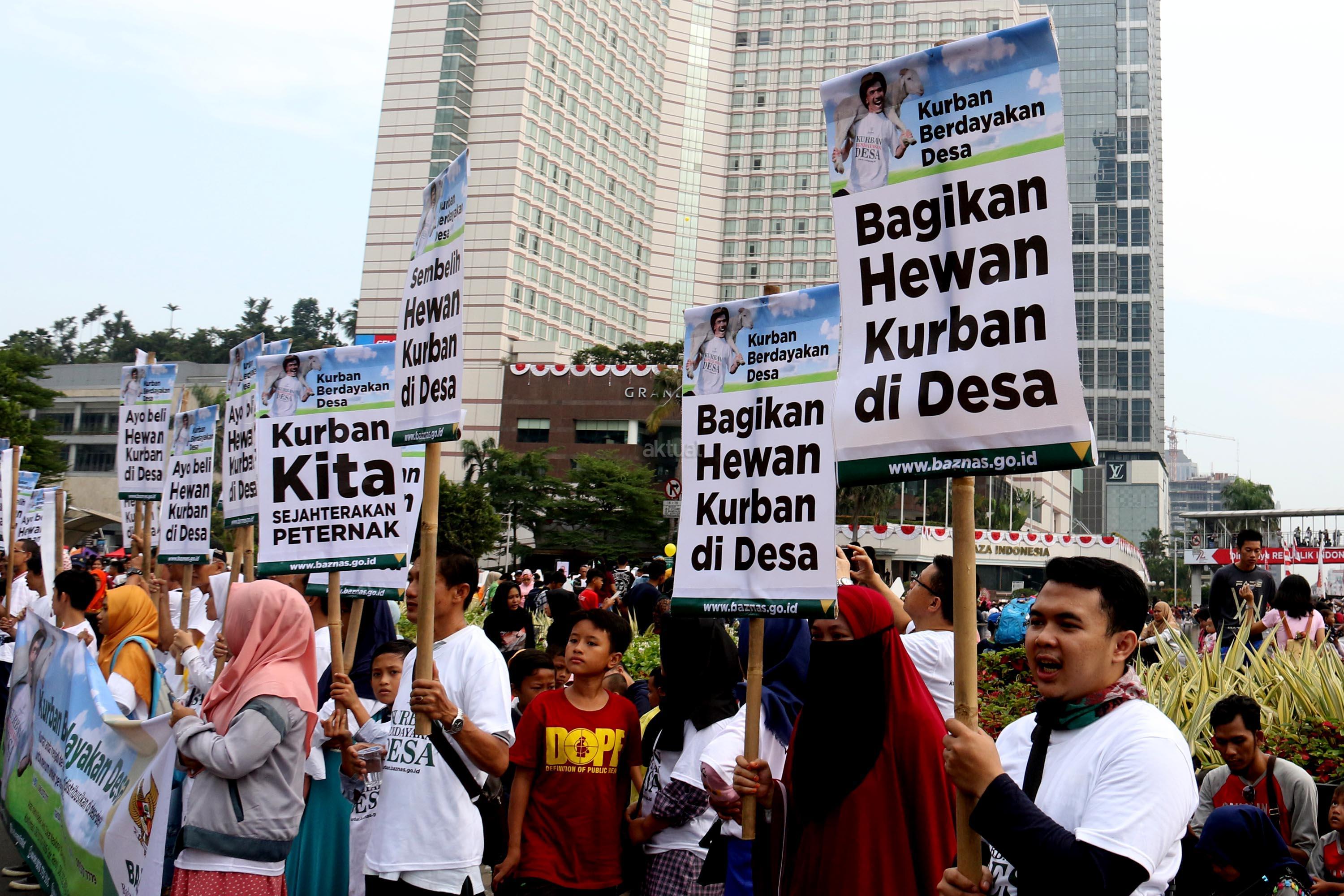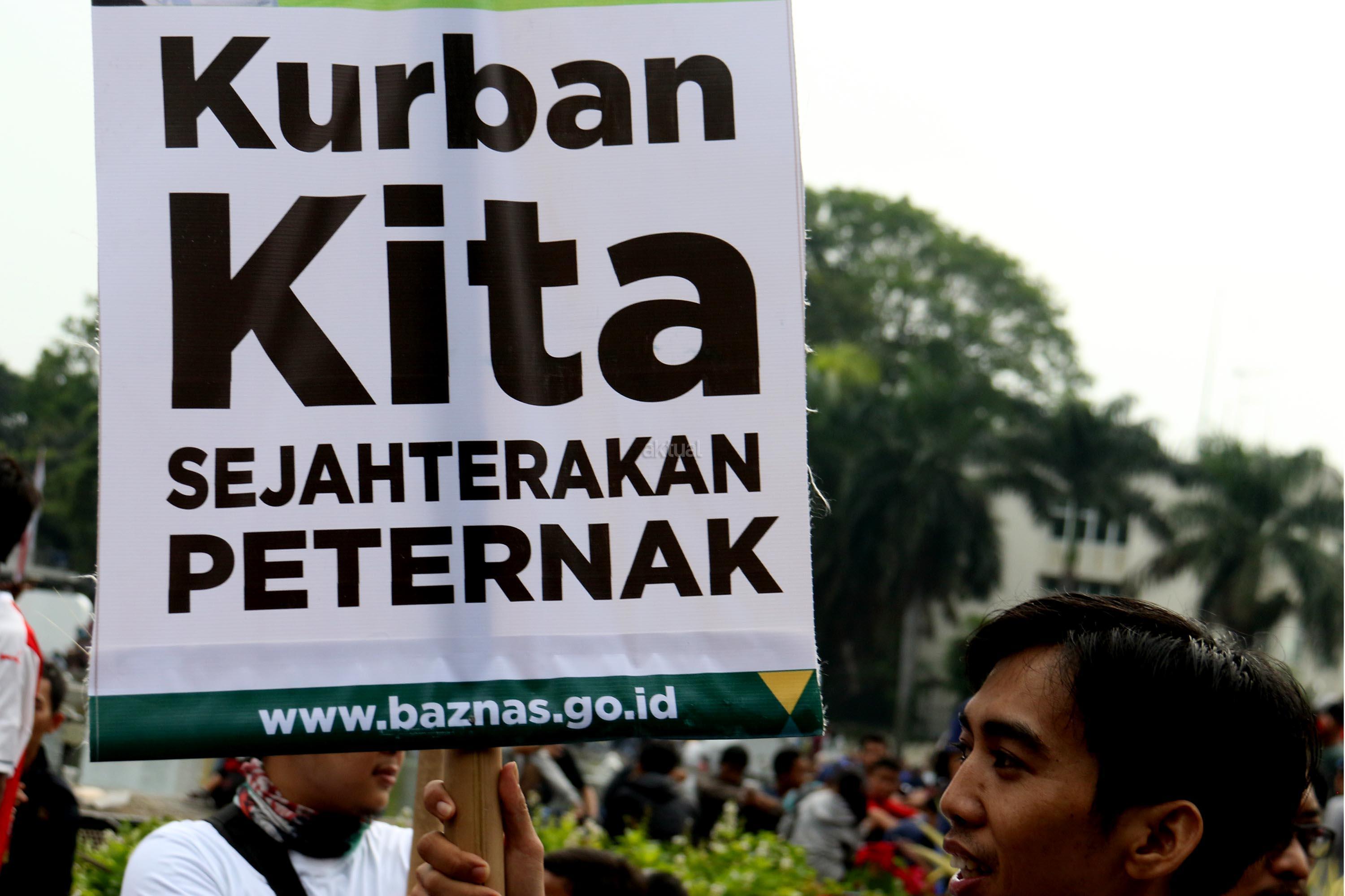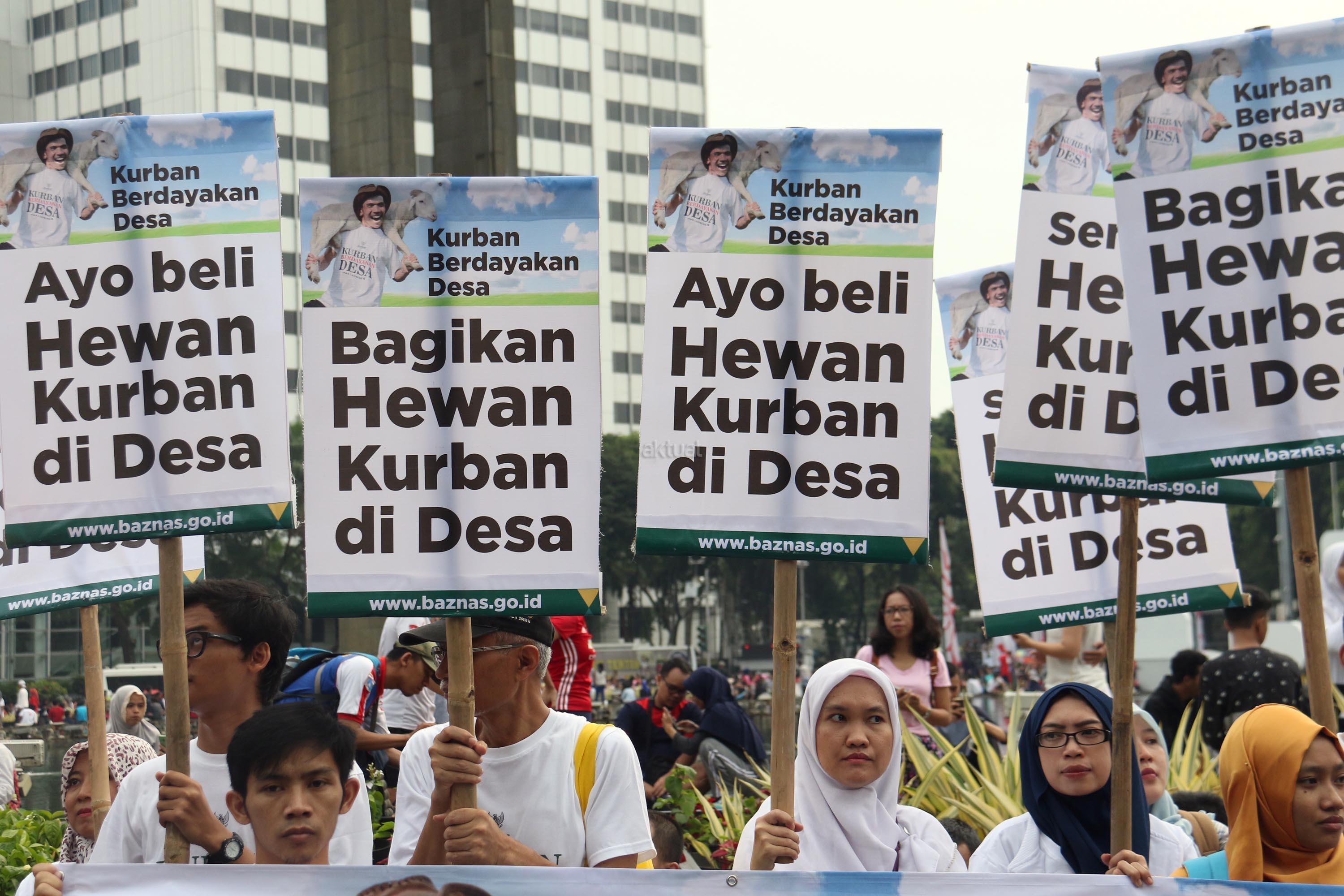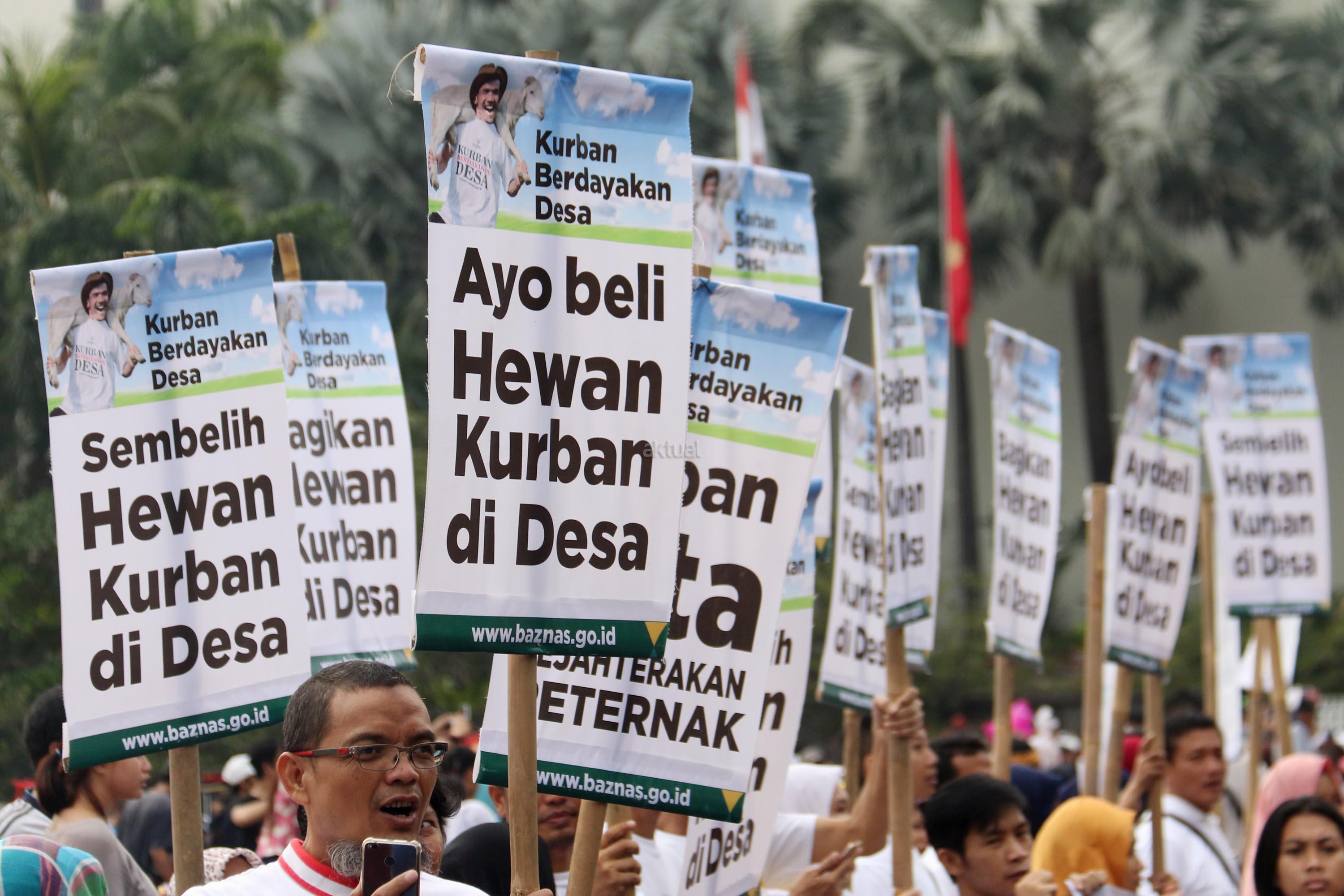 Dalam aksi simaptiknya Baznas mengajak masyarakat melaksanakan , " Kurban Berdayakan Desa", caranya dengan membeli, menyembelih dan mendistribusikan daging kurban didesa. AKTUAL/Munzir