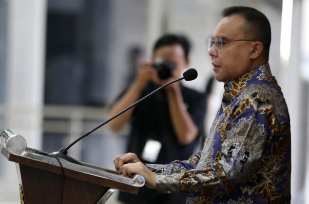 Wakil Ketua Dewan Perwakilan Rakyat Republik Indonesia (DPR RI), Sufmi Dasco Ahmad menyampaikan informasi mengapresiasi langkah pemerintah yang tidak menaikkan harga bahan bakar minyak (BBM) saat konferensi pers di Kompleks Parlemen Senayan, Jakarta, Selasa (31/3/2026). Menurut Dasco, keputusan tersebut diambil setelah pemerintah berkomunikasi dengan berbagai pihak, termasuk DPR RI. Dasco menyebut Menteri Sekretaris Negara telah memastikan bahwa belum ada rencana penyesuaian harga BBM dalam waktu dekat, baik yang subsidi maupun non subsidi. Aktual/TINO OKTAVIANO