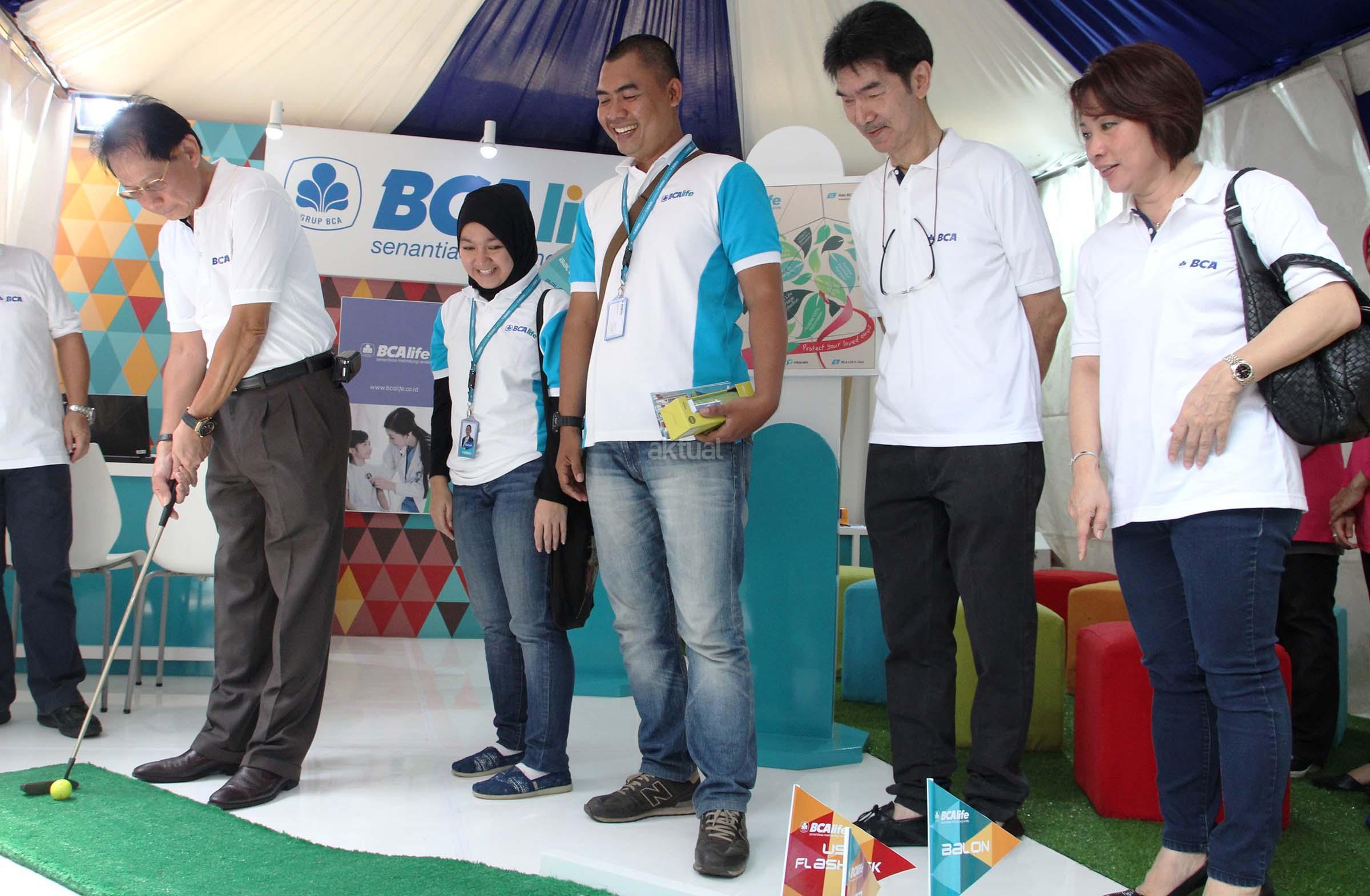 Presiden Direktur PT Bank Central Asia Tbk, Jahja Setiaatmadja (kiri) bersama Direktur Utama KBP, Sanusi Tanawi ( kedua dari kanan) bermain games golf booth seusai membuka resmi BCA Expo dan Autoshow 2016 di Bale Pare,Kota Baru Parahyangan (KBP),Bandung, Sabtu (22/10) Hadir dalam kesempatan tersebut Manajemen BCA dan perusahaan anak serta manajemen KBP. BCA Expo dan Autoshow yang digelar selama dua hari ,yakni tanggal 22 dan 23 Oktober 2016 ini bertujuan untuk memberikan kemudahan bagi nasabah memiliki kendaraan dan hunian idaman masa kini.