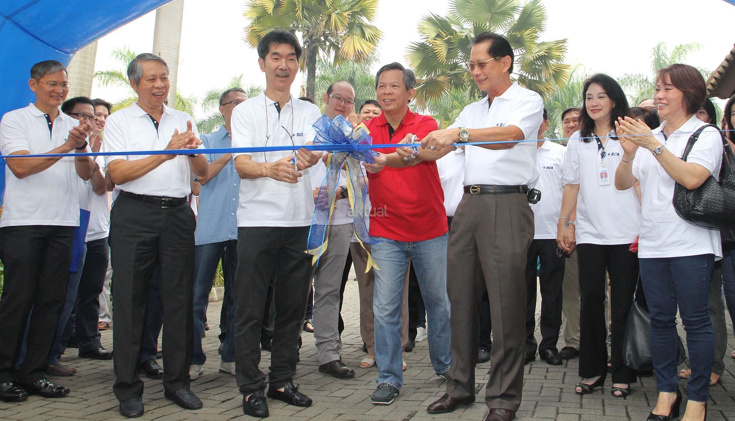 Presiden Direktur PT Bank Central Asia Tbk, Jahja Setiaatmadja (ketiga dari kanan) dan Direktur Utama KBP, Sanusi Tanawi (ketiga dari kiri) melakukan penguntingan pita sebagai simbolis dibukanya BCA Expo dan Autoshow 2016 di Bale Pare,Kota Baru Parahyangan (KBP),Bandung , Sabtu (22/10) disaksikan oleh Direktur BCA, Suwignyo Budiman (kedua kiri) ,Manajemen BCA dan perusahaan anak serta manajemen KBP. BCA Expo dan Autoshow yang digelar selama dua hari ,yakni tanggal 22 dan 23 Oktober 2016 ini bertujuan untuk memberikan kemudahan bagi nasabah memiliki kendaraan dan hunian idaman masa kini.