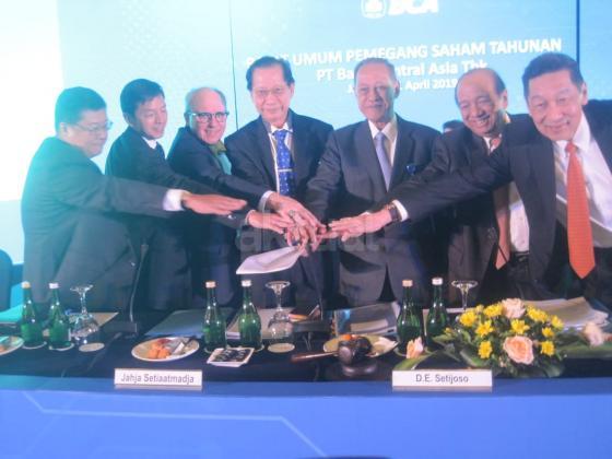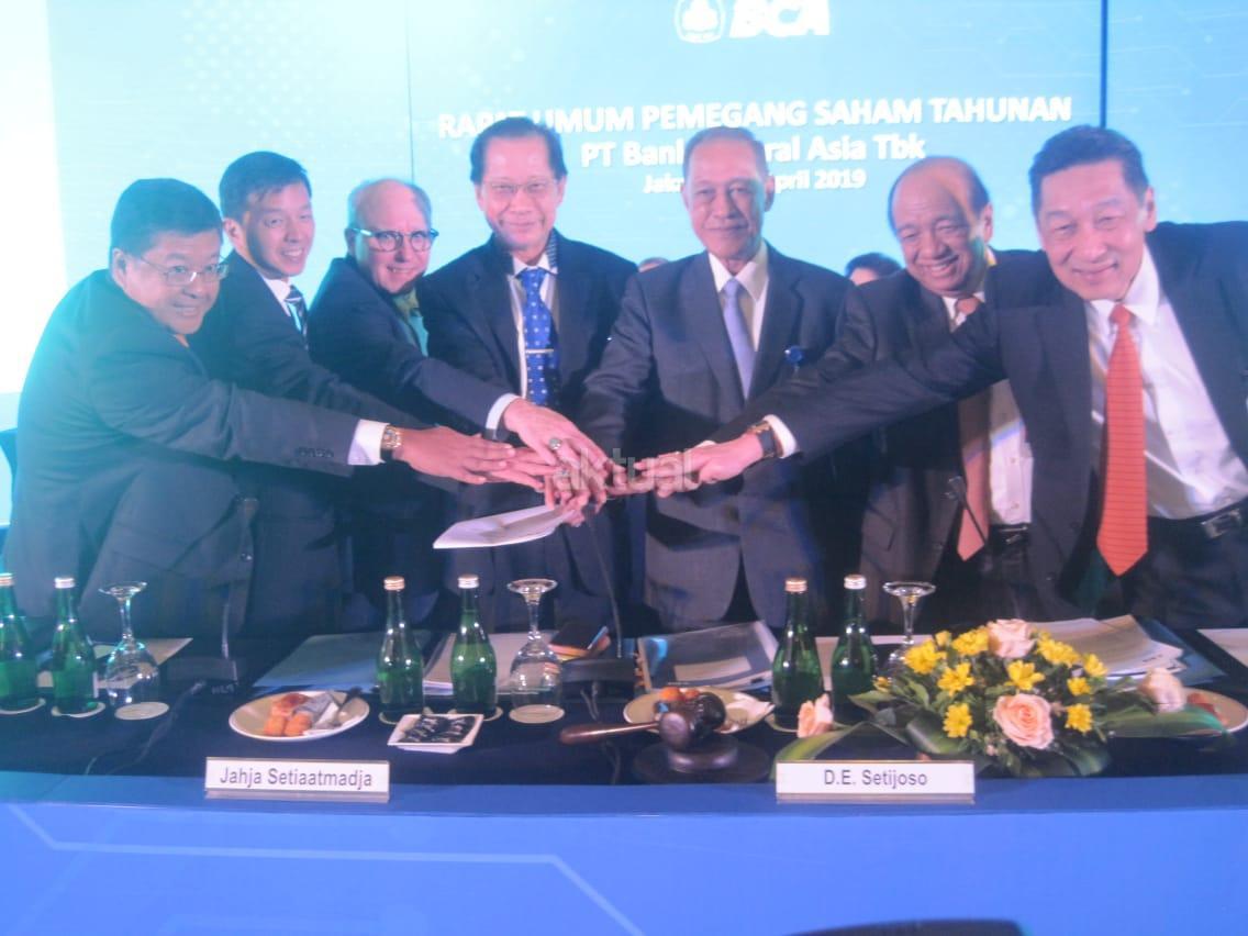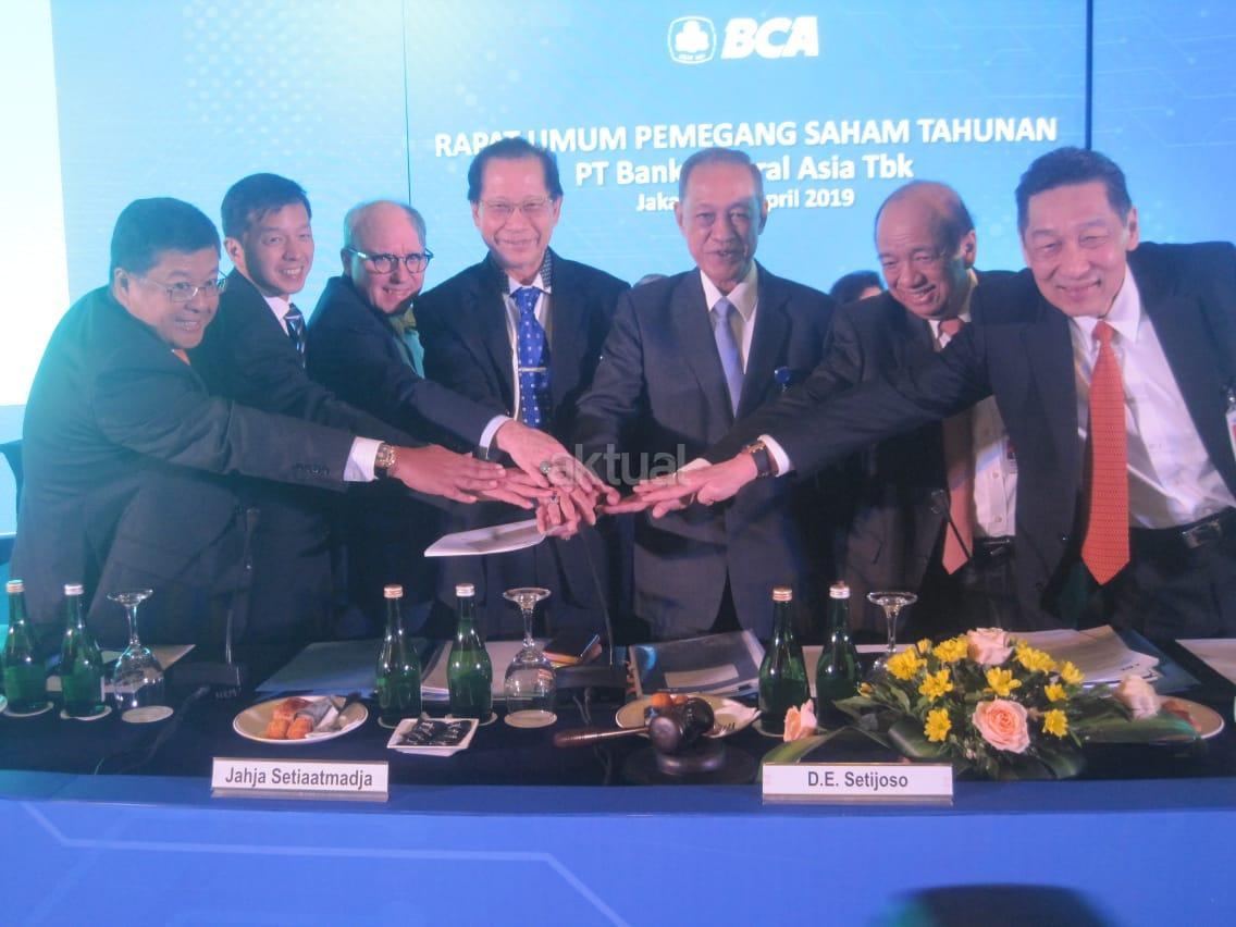 Dari kiri ke kanan, Direktur BCA Subur Tan, Wakil Presiden Direktur BCA Armand W. Hartono, Wakil Presiden Direktur BCA Eugene Keith Galbraith, Presiden Direktur BCA Jahja Setiaatmadja, Presiden Komisaris BCA Djohan Emir Setijoso, Komisaris Independen BCA Cyrillus Harinowo dan Komisaris BCA Tonny Kusnadi sebelum acara Rapat Umum Pemegang Saham Tahunan (RUPST) di Jakarta, Kamis (11/4). AKTUAL/STR-Eko S Hilman