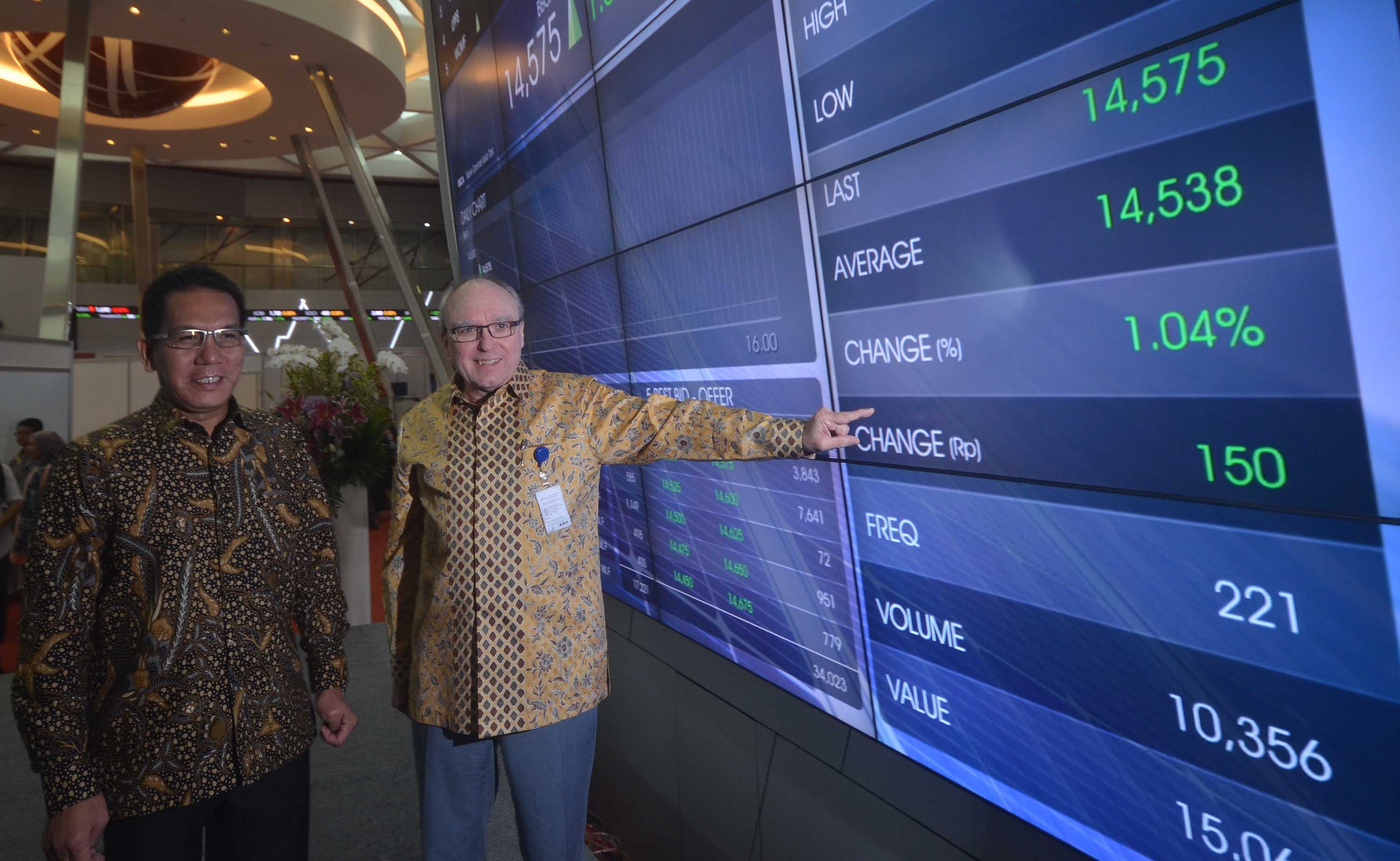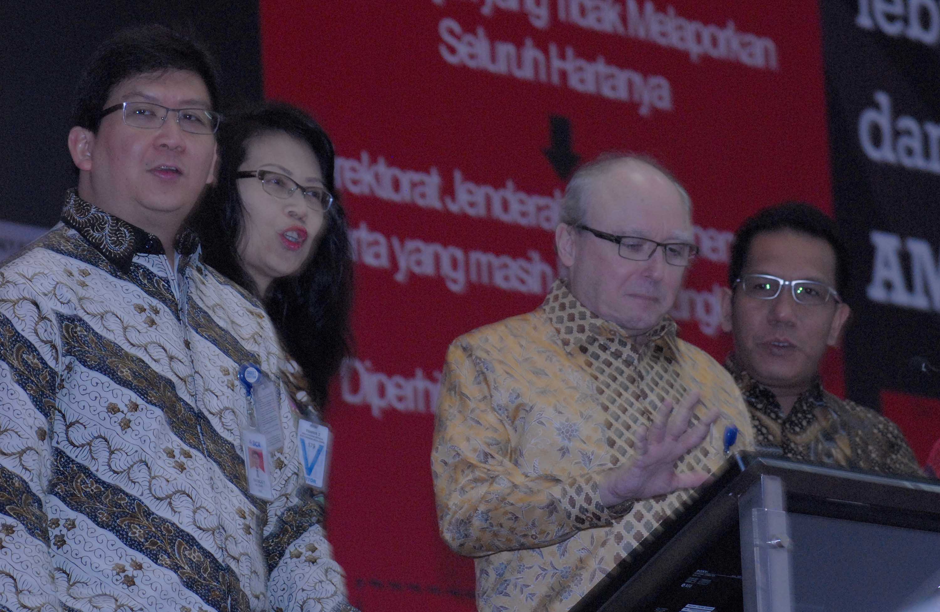 Wakil Presiden Direktur BCA ,Eugene Keith Galbraith (kedua dari kanan) didampingi (dari kiri ke kanan) Sekretaris Perusahaan BCA, Inge Setiawati, Kepala Divisi Keuangan dan Perencanaan BCA, Raymon Yonarto serta Kepala Subdiv Perencanaan Perusahaan BCA, Rudy Budiardjo saat paparan publik perseroan di Main Hall, Gedung Bursa Efek Indonesia, Jakarta, Jumat (29/7). Ditengah perlambatan ekonomi Indonesia ,BCA berhasil mempertahankan kinerja positif,rasio kredit bermasalah (NPL) meningkat menjadi 1,4% pada akhir Juni 2016, dibandingkan 0,7% pada akhir Juni 2015.Sementara Outstanding kredit tercatat sebesar Rp 387,0 triliun pada akhir Juni 2016 naik 11,5% YoY, sedangkan kredit konsumer naik 9,1% menjadi Rp 105,2 triliun