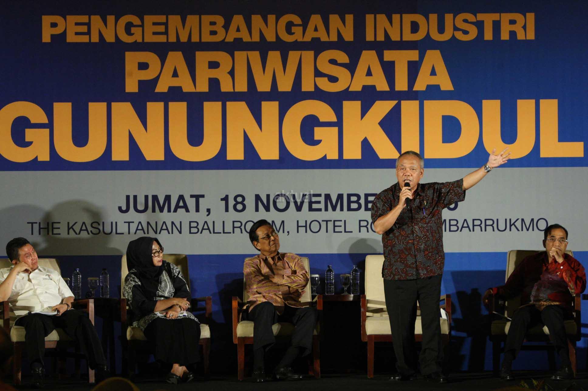 Menteri Pekerjaan Umum dan Perumahan Rakyat RI Basoeki Hadimoeljono pada Seminar Pengembangan Industri Pariwisata Gunung Kidul di Yogjakarta, Jumat (18/11).Bank Central Asia melalui program Bakti BCA mendukung upaya pengembangan industri pariwisata di berbagai daerah, termasuk wilayah Gunungkidul. Mengambil tema Pengembangan Industri Pariwisata Gunungkidul, seminar setengah hari kerjasama antara BCA dan Paguyuban Alumni SMA Kolase de Brito tersebut hadir sebagai pembicara Menteri Pekerjaan Umum dan Perumahan Rakyat RI Basoeki Hadimoeljono, Menteri Perhubungan RI Budi Karya, Gubernur DI Yogjakarta Sri Sultan Hamengku Buwono X, Bupati Gunungkidul Badingah, dan Asisten Deputi Industri Pariwisata Kementerian Pariwisata RI Agus Priyono. Saat ini Jogja telah menjadi salah satu destinasi terbesar pariwisata di Indonesia. Karena itu pemerintah dan seluruh pihak, termasuk swasta di dalamnya, ingin bekerjasama mengembangkan atraksi atau objek wisata yang dapat menahan wisatawan lebih lama menghabiskan liburan di Jogja, dan salah satunya adalah pengembangan wisata di Kabupaten Gunungkidul. AKTUAL/HO