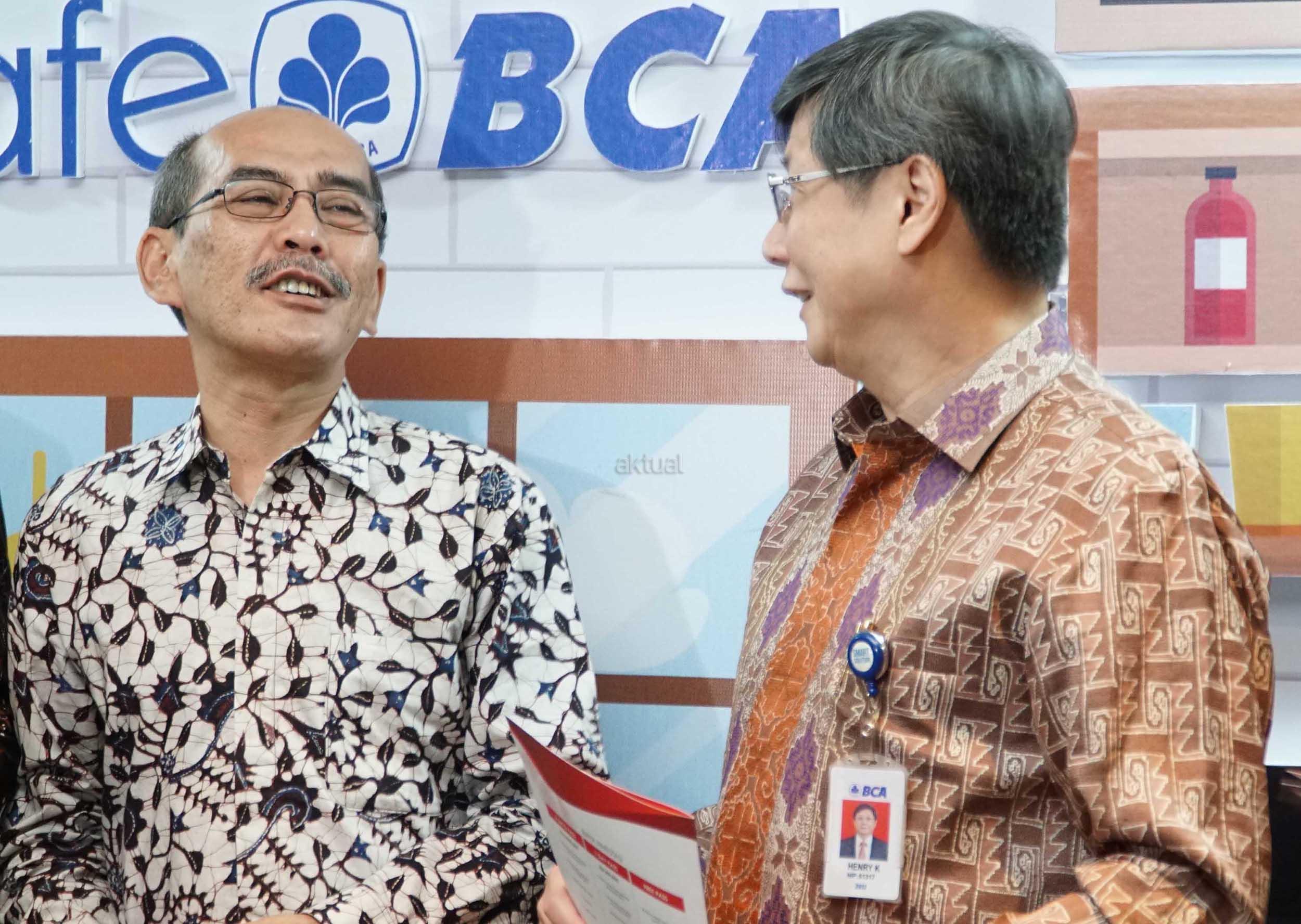Direktur PT Bank Central Asia Tbk, Henry Koenaifi (kanan), berbincang dengan Pengamat Ekonomi, Faisal Basri (kiri) disela Forum Kafe BCA 7 di Jakarta, Rabu (13/9). BCA menggelar diskusi bertema inovasi dan kreativitas berbasis teknologi informasi. Perkembangan usaha berbasis digital saat ini terus mengalami peningkatan, untuk menyikapinya BCA terus memberikan dukungan salah satunya dengan mengadakan Indonesia Knowledge Forum (IKF) yang dijadwalkan pada awal Oktober 2017 mendatang.Gelaran event IKF VI akan mengambil tema utama “Elevating Creativity & Innovation Throught Digital Collaboration” . AKTUAL/Eko S Hilman
