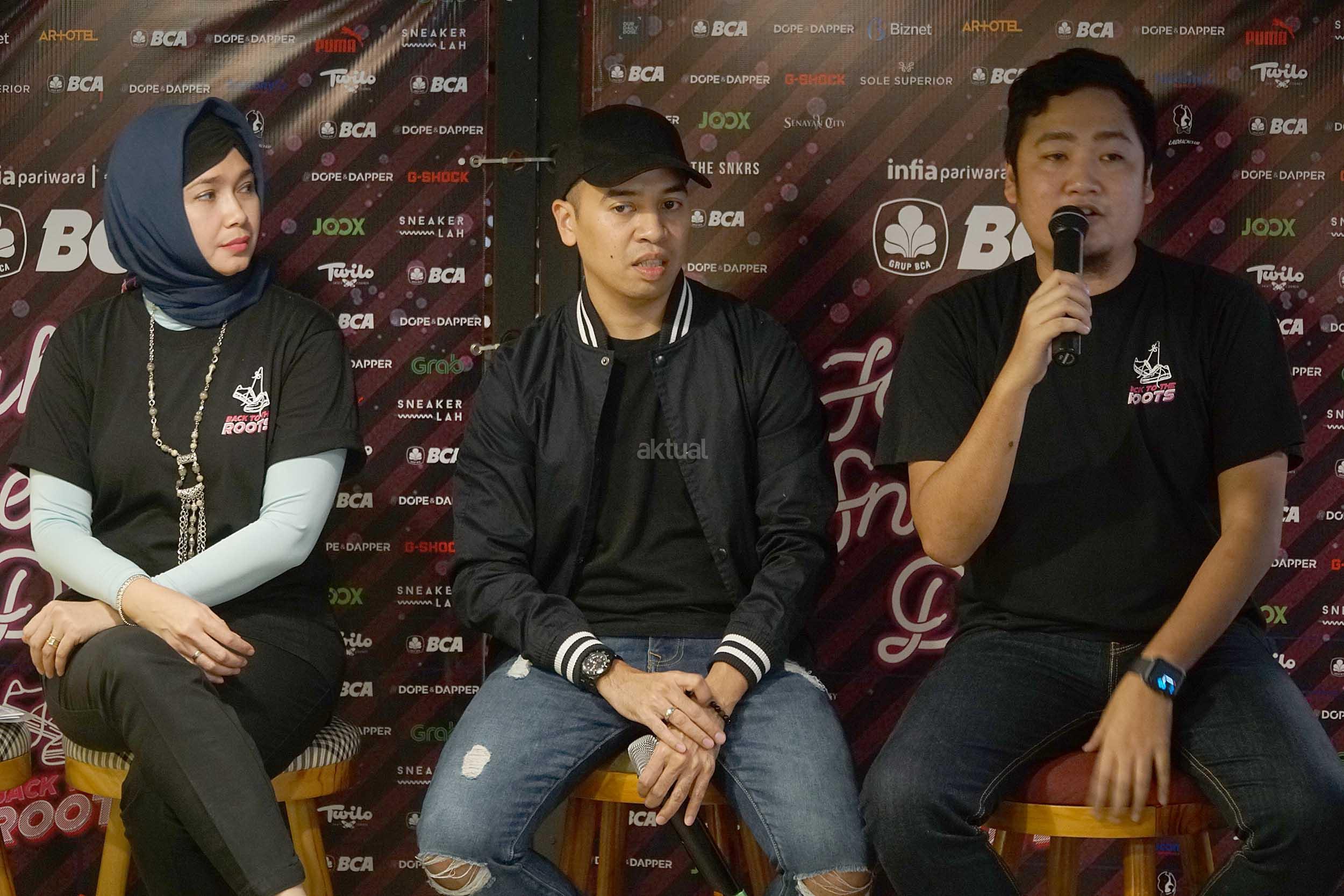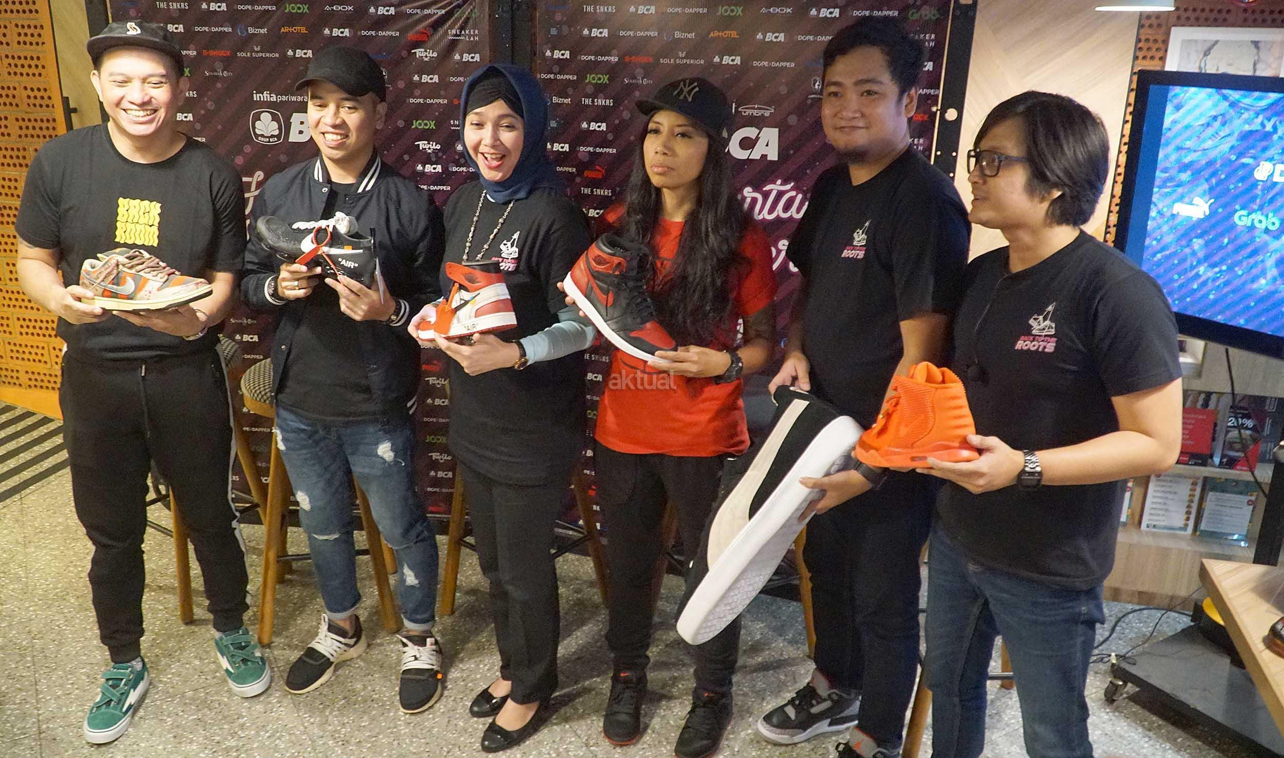 Event Director BCA Jakarta Sneaker Day 2018 – Andrey Noeflry ,Program Director BCA Jakarta Sneaker Day 2018 – Reno Ramadhan serta penguna dan Ammbassador sneaker seusai jumpa pers